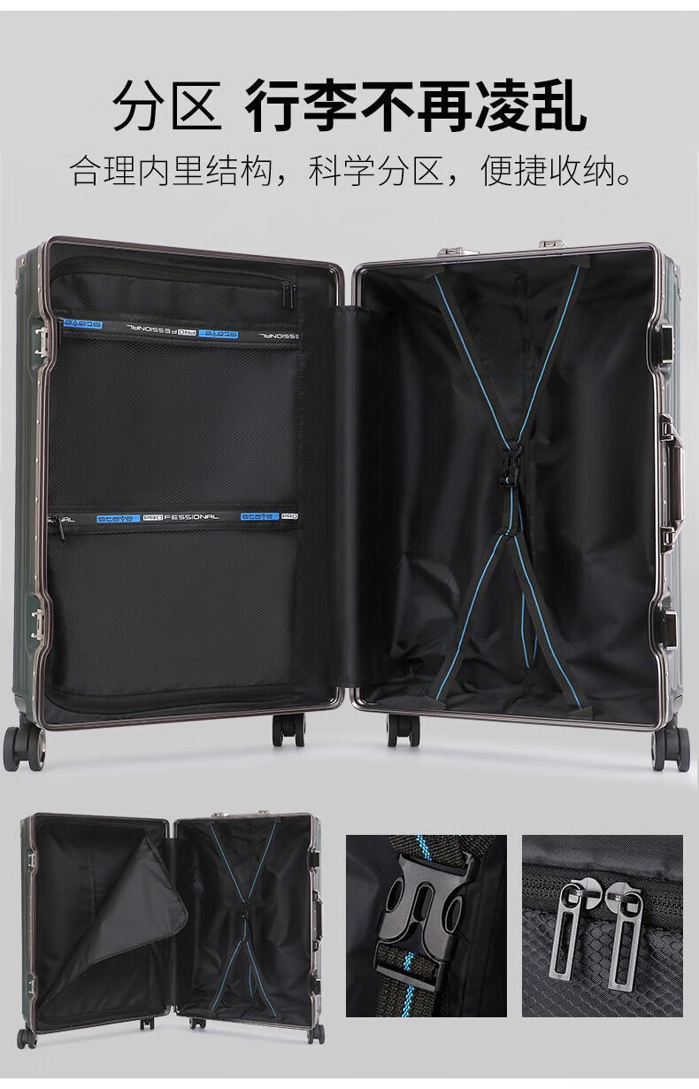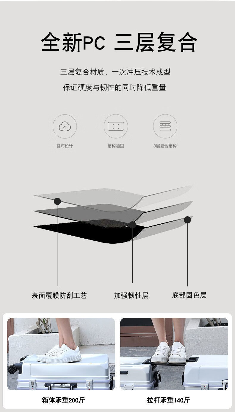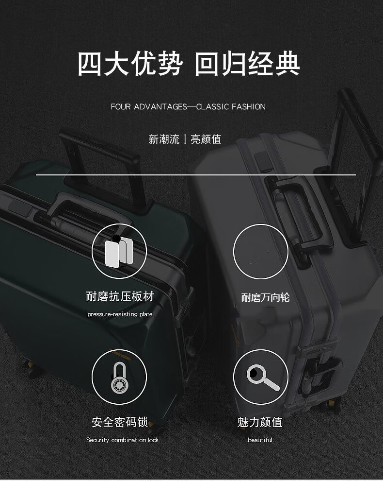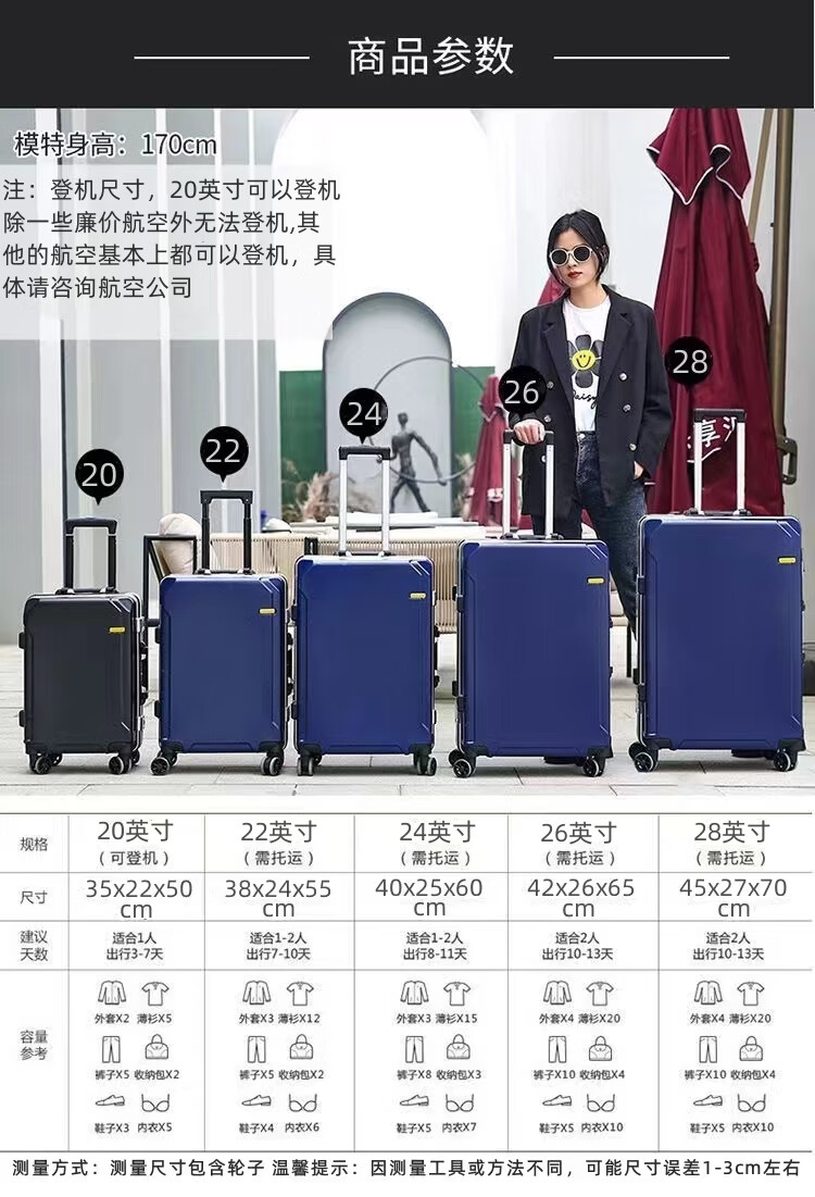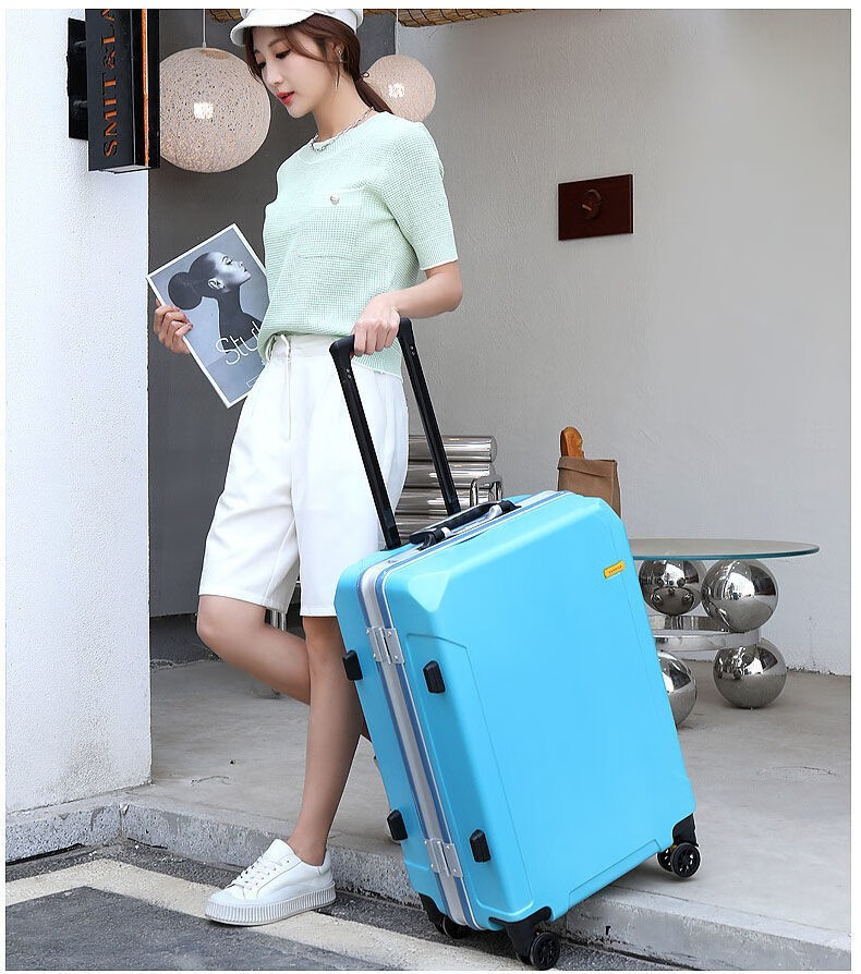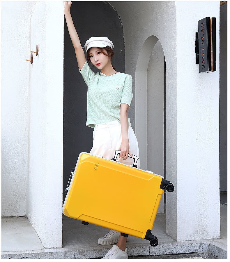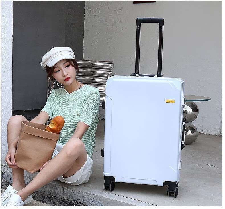 Diston Paul (DISIDUNBAOLUO) luggage thickened aluminum frame trolley case, strong and durable password box, student large-capacity suitcase, boarding suitcase, gray, scratch-resistant aluminum frame - with charging port, 20 inches, can be boarded, suitable for short-distance business trips