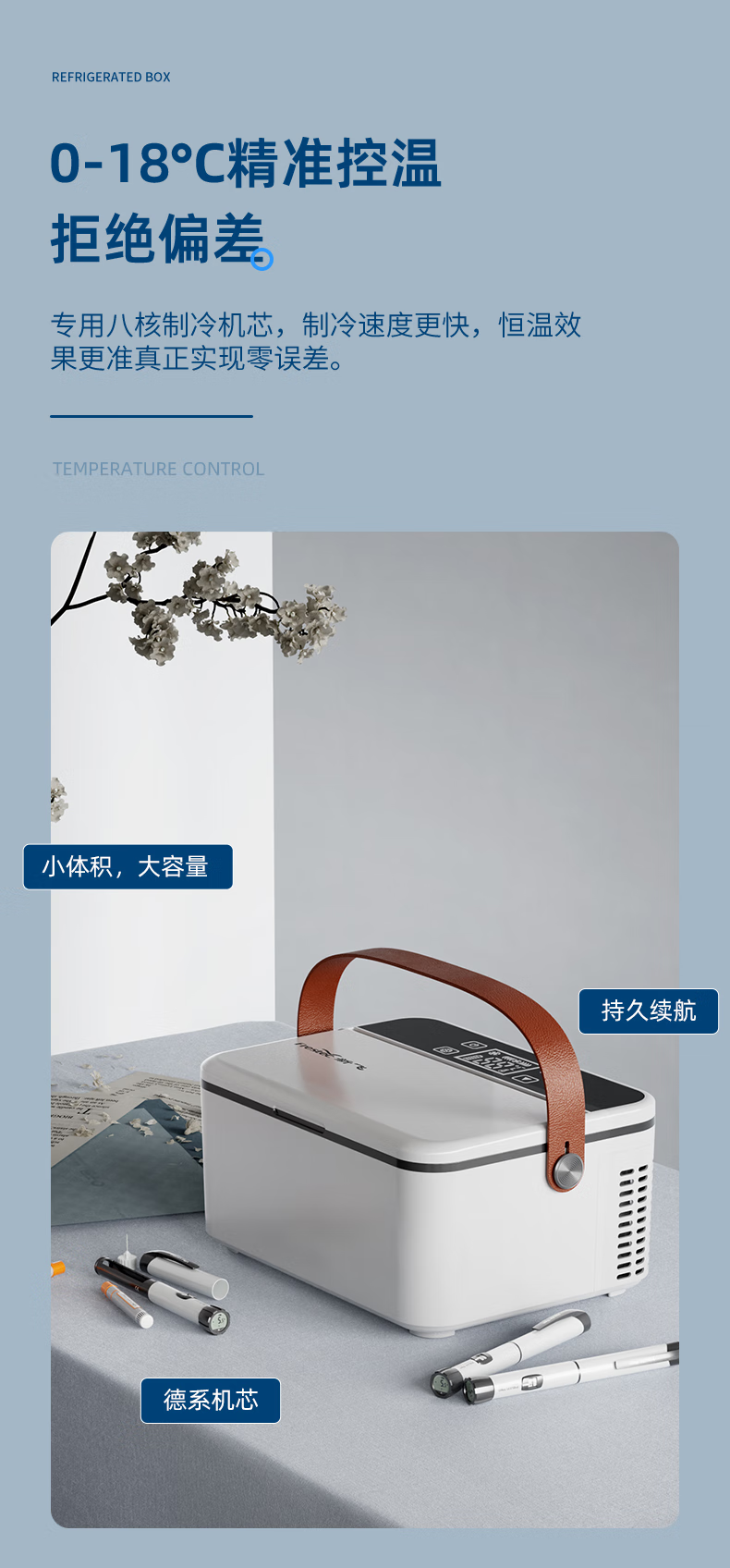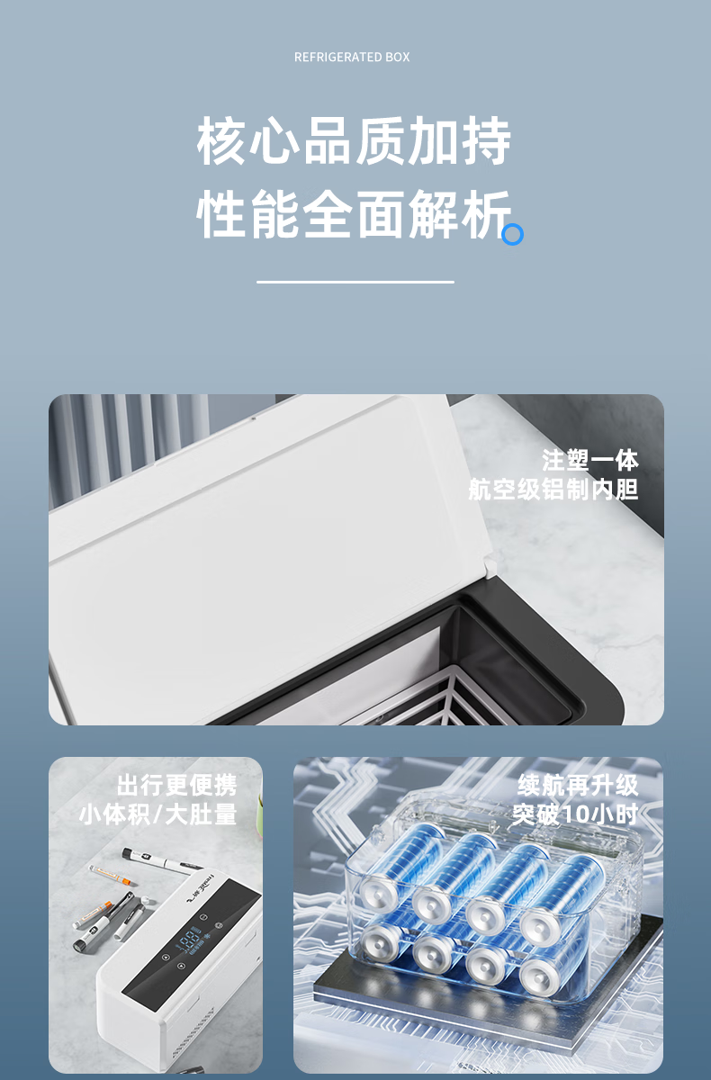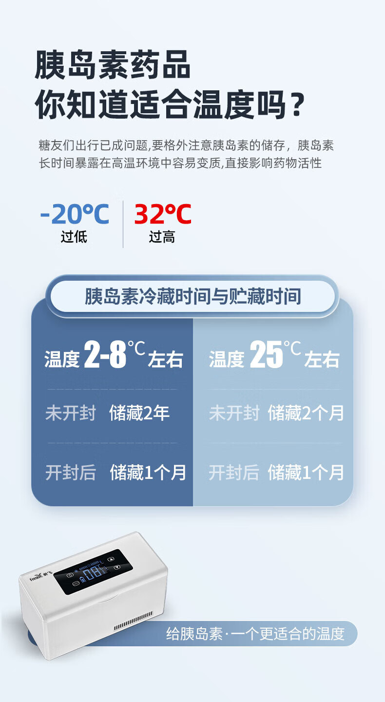 Xinfei Insulin Refrigerator Box Portable Carry-On Refrigerator Box Rechargeable Insulin Special Small Refrigerator 2 Sets of Batteries ~ Car and Home Dual-Purpose Insulin Box 0L