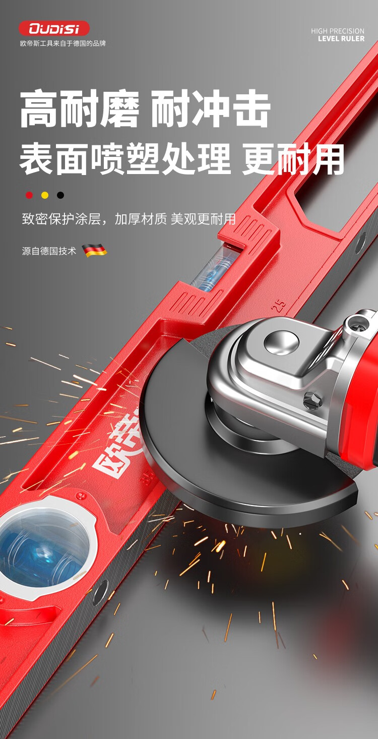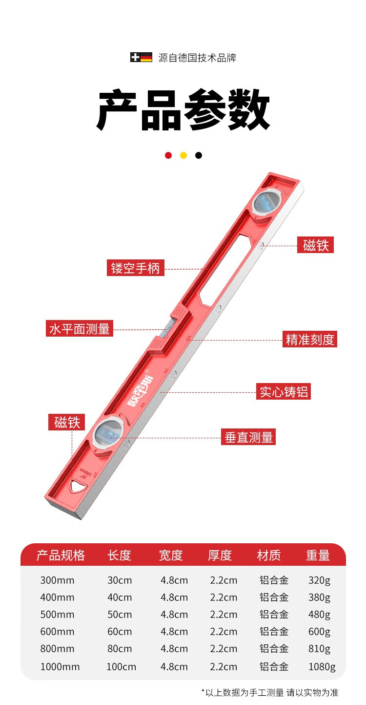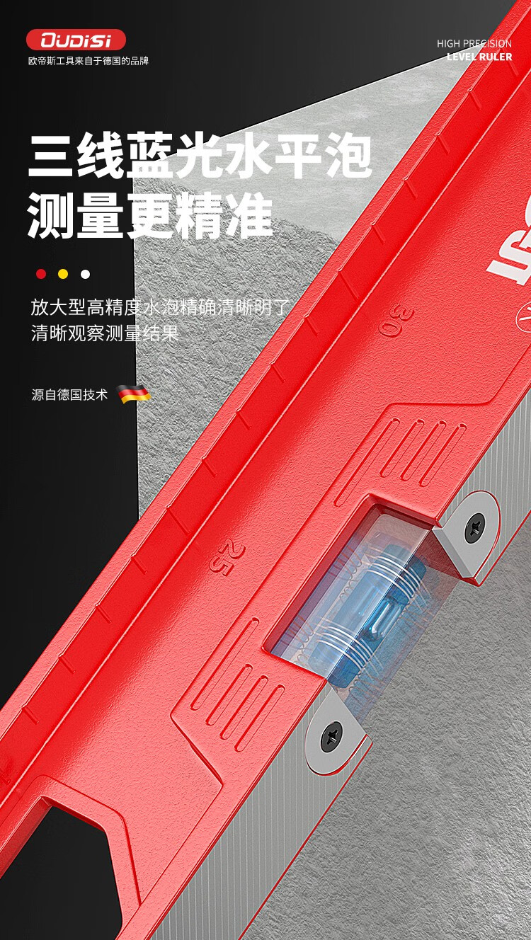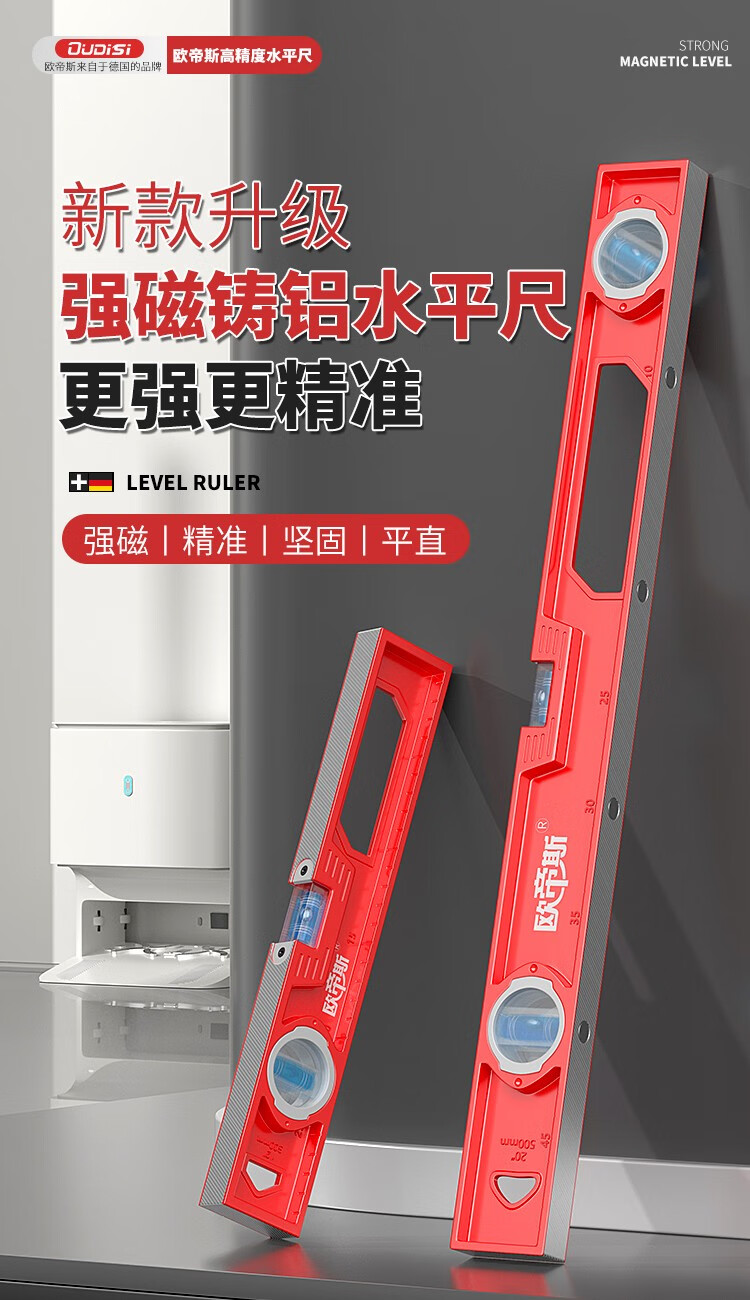Otis spirit level, strong magnetic, high-precision aluminum alloy balancer, small mini measuring ruler with magnetic level, industrial grade solid cast aluminum 60cm (strong magnetic)