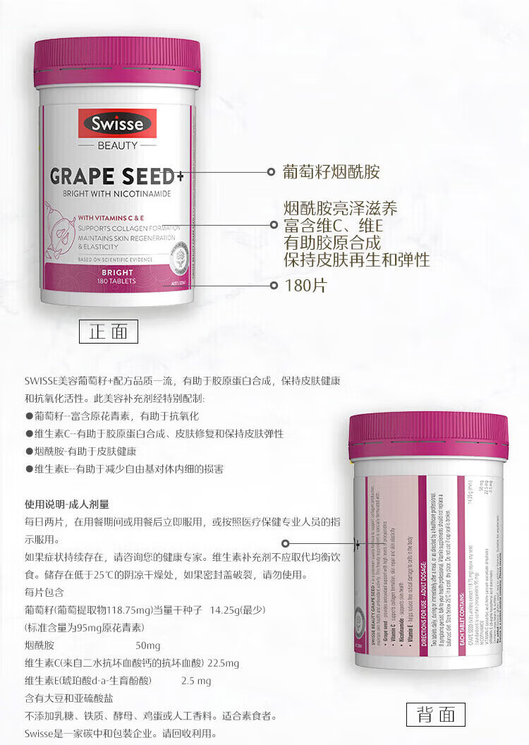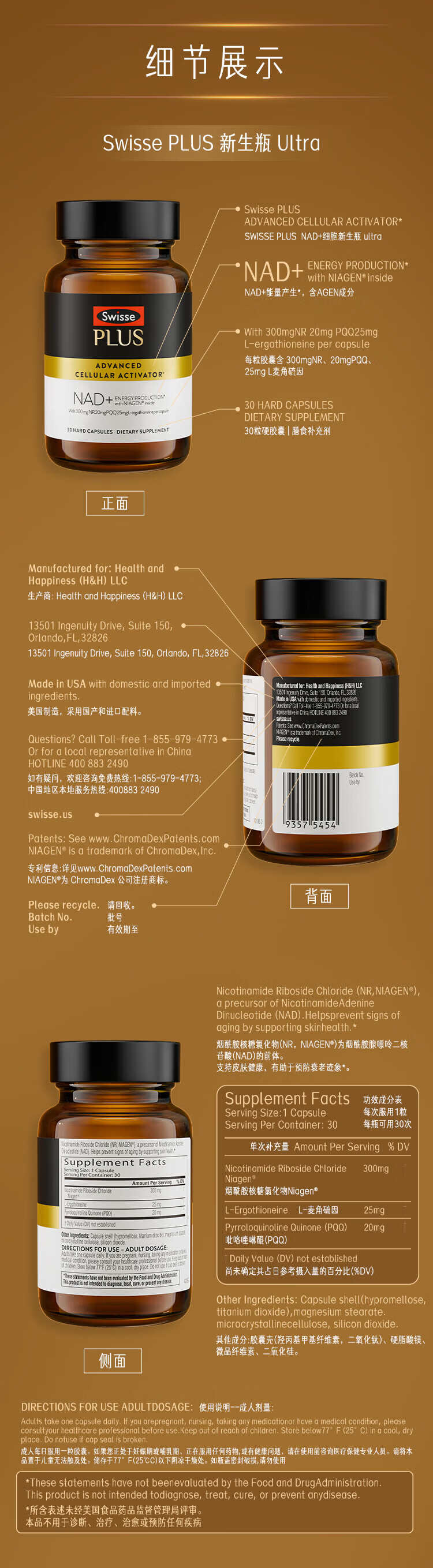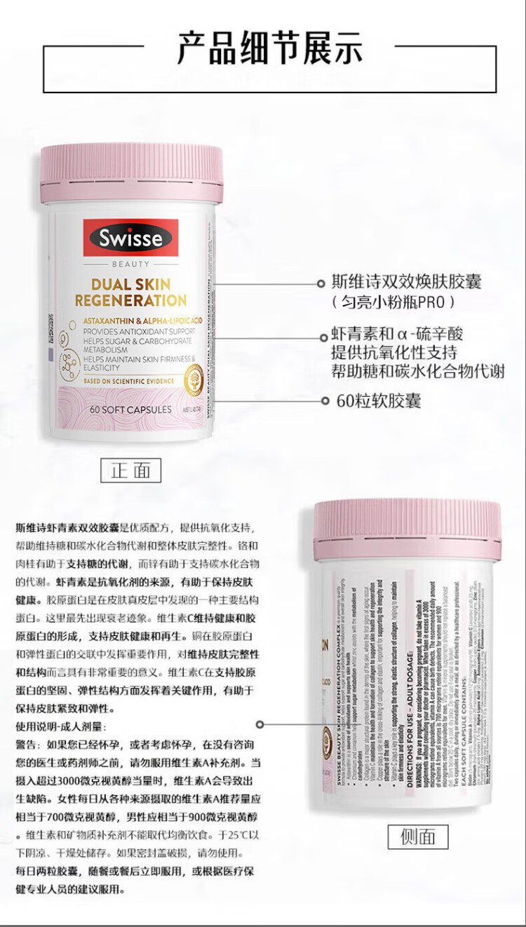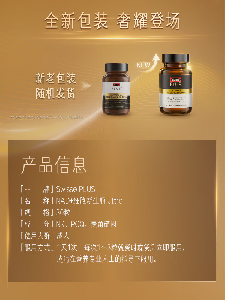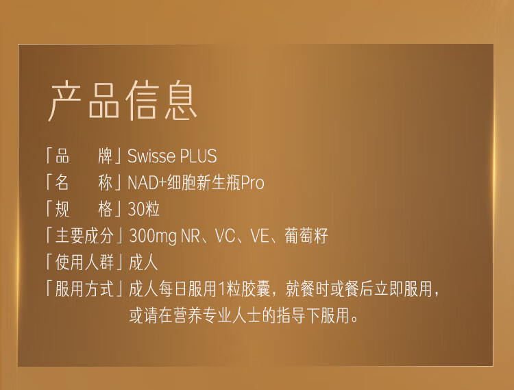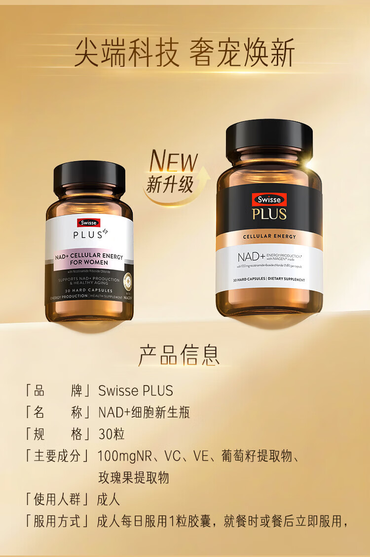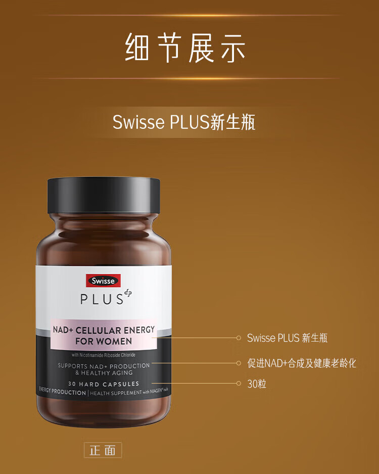 Swisse PLUS NAD+ cell regeneration bottle Patented NR anti-aging skin rejuvenation and repair 30 capsules NAD+ regeneration bottle 30 capsules*1 bottle