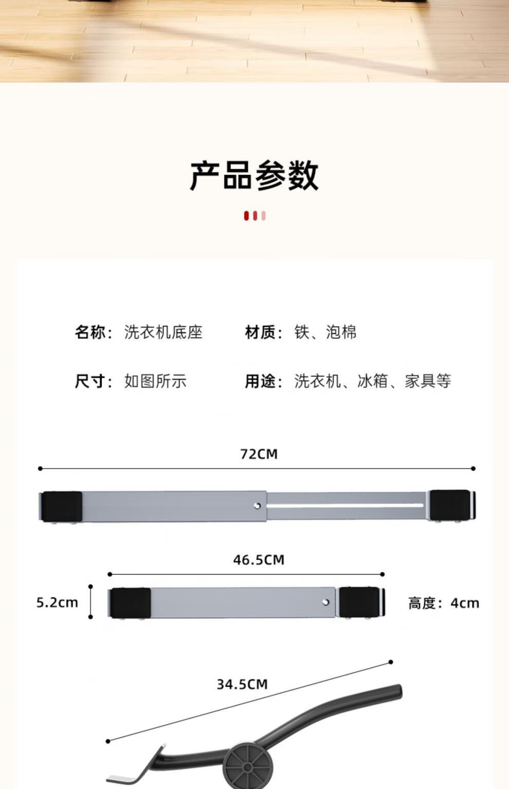 KASU washing machine base rack refrigerator removable pulley bracket artifact rack universal storage rack roller padding bracket universal wheel Yahei 24 wheel pair retractable 46.5-72cm