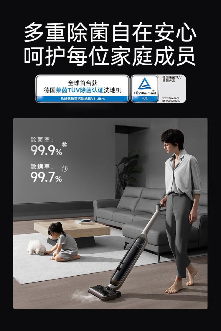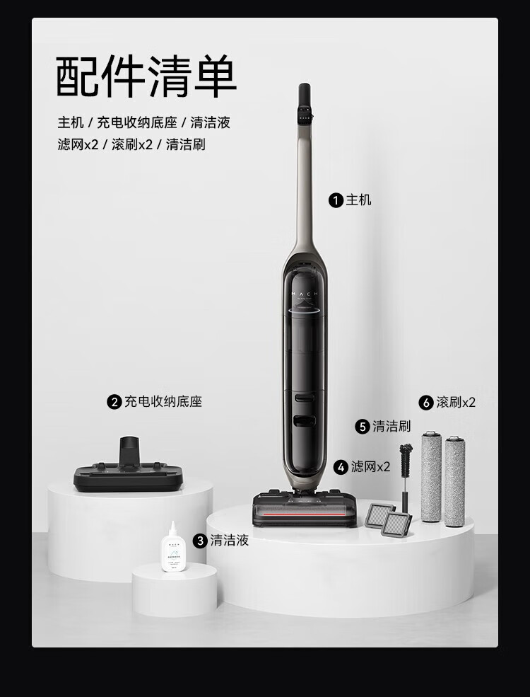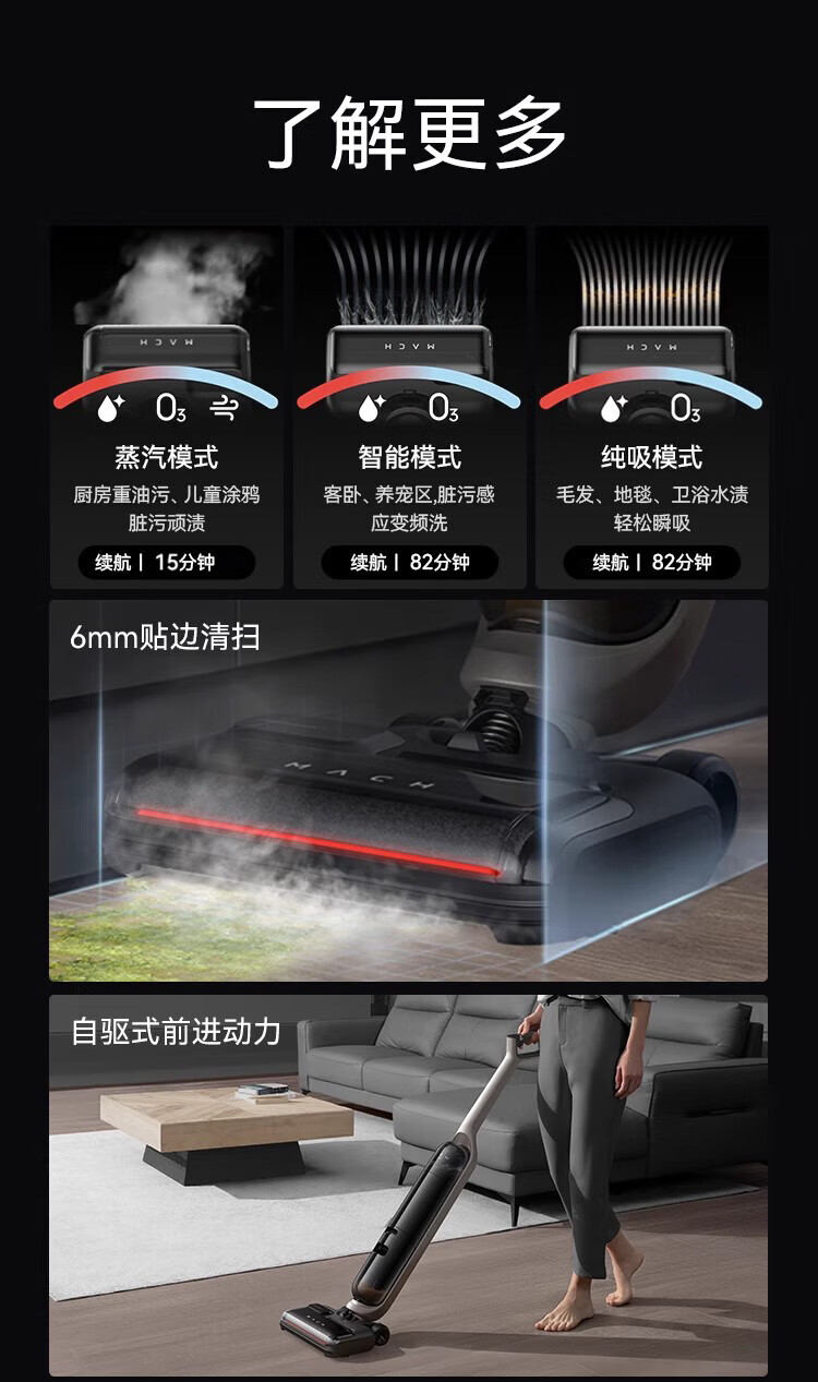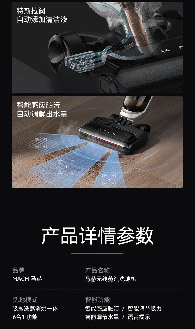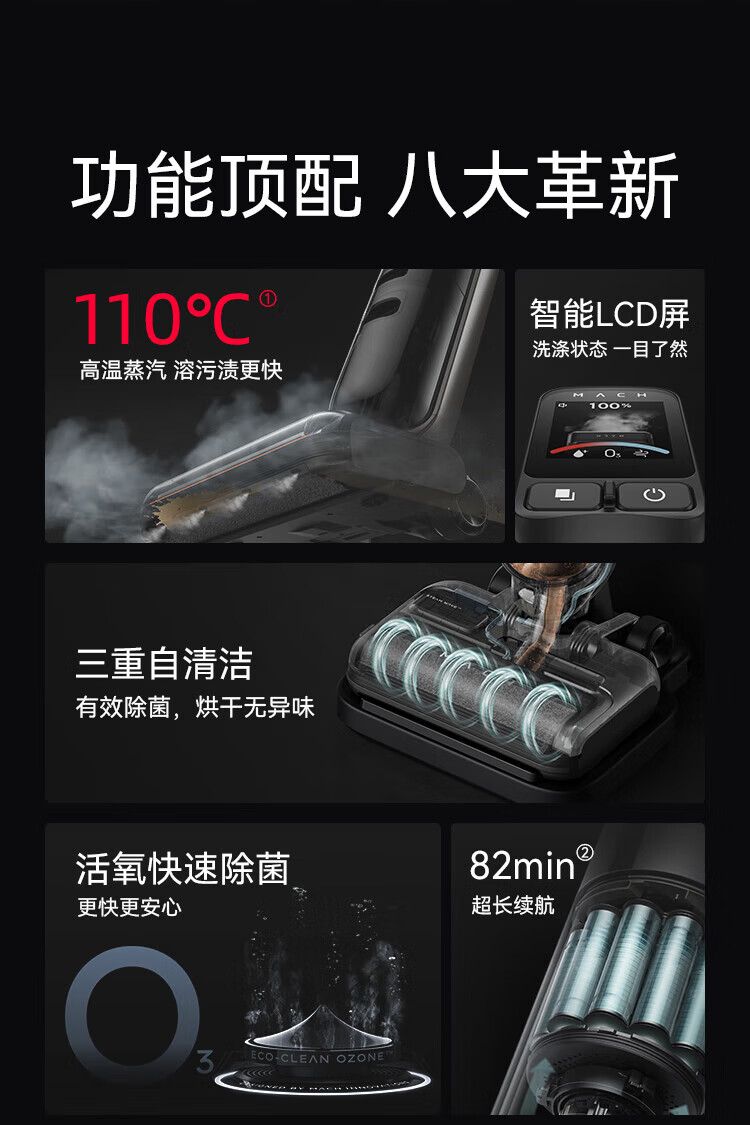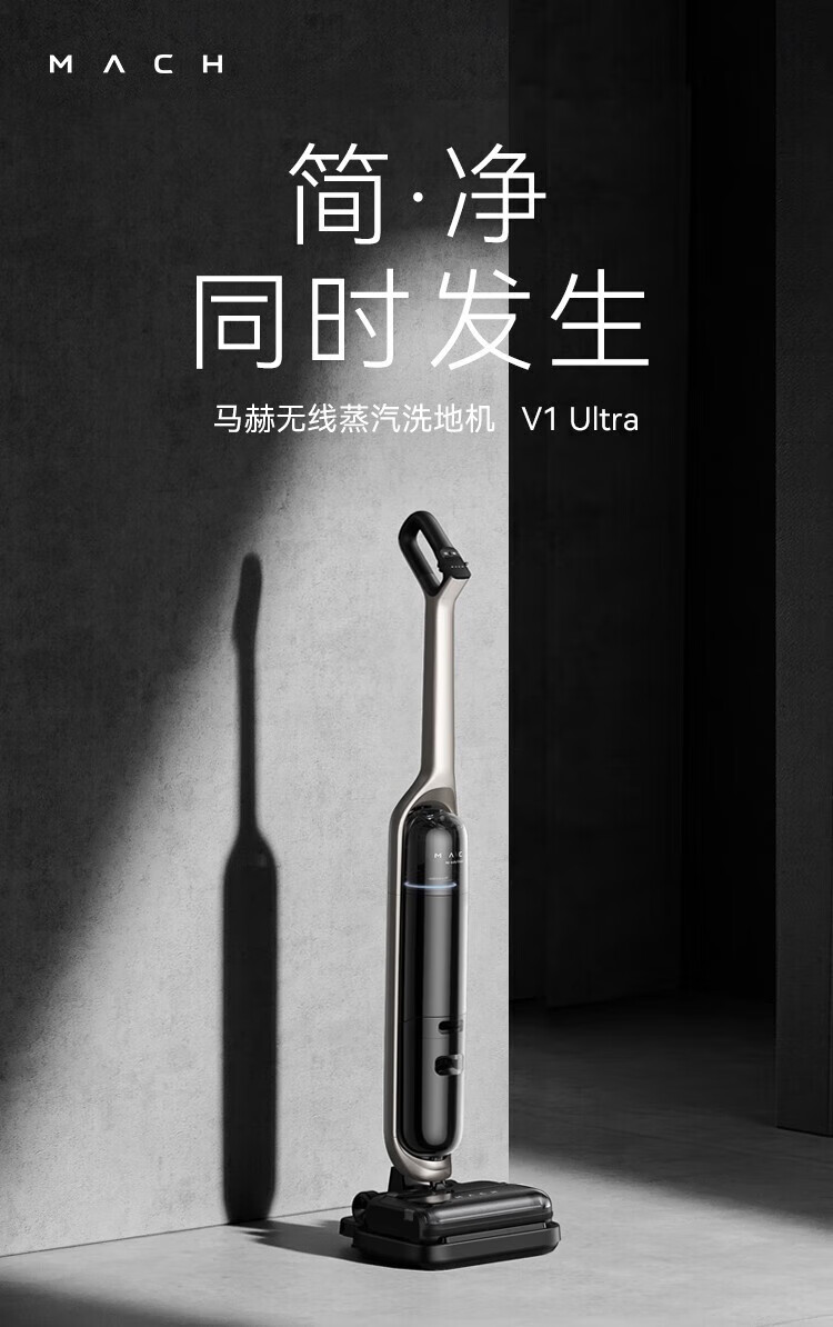 Mach (MACH) high-temperature steam for easy descaling Mach wireless steam floor scrubber 110-degree high-temperature steam washing Household sweeper suction and mopping integrated handheld vacuum cleaner 110-degree high-temperature steam washing Mach V1 Ultra