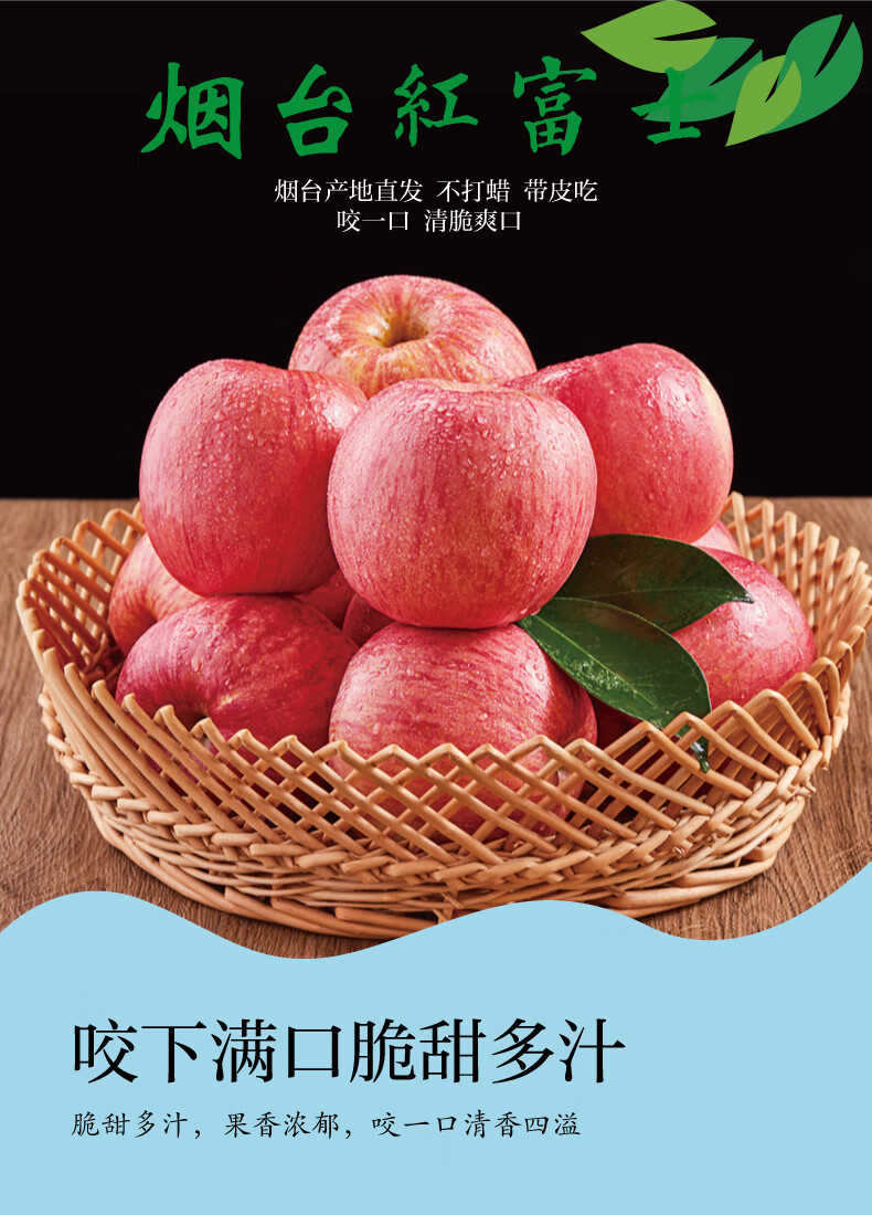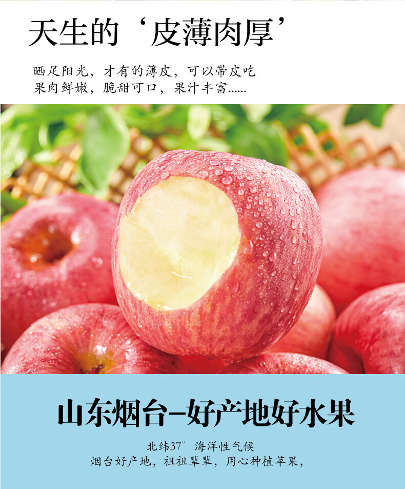 Apple City Yantai Apple Fruit Red Fuji Apple Fresh Crisp Sweet Whole Box Seasonal Fresh Fruit Shandong Specialty Flat Fruit Net Weight 8.5 Jin 85mm
