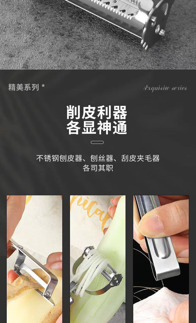 Hong Zhengying three-in-one peeling knife grater stainless steel household multi-functional three-piece set peeler potato artifact three-piece peeling knife set