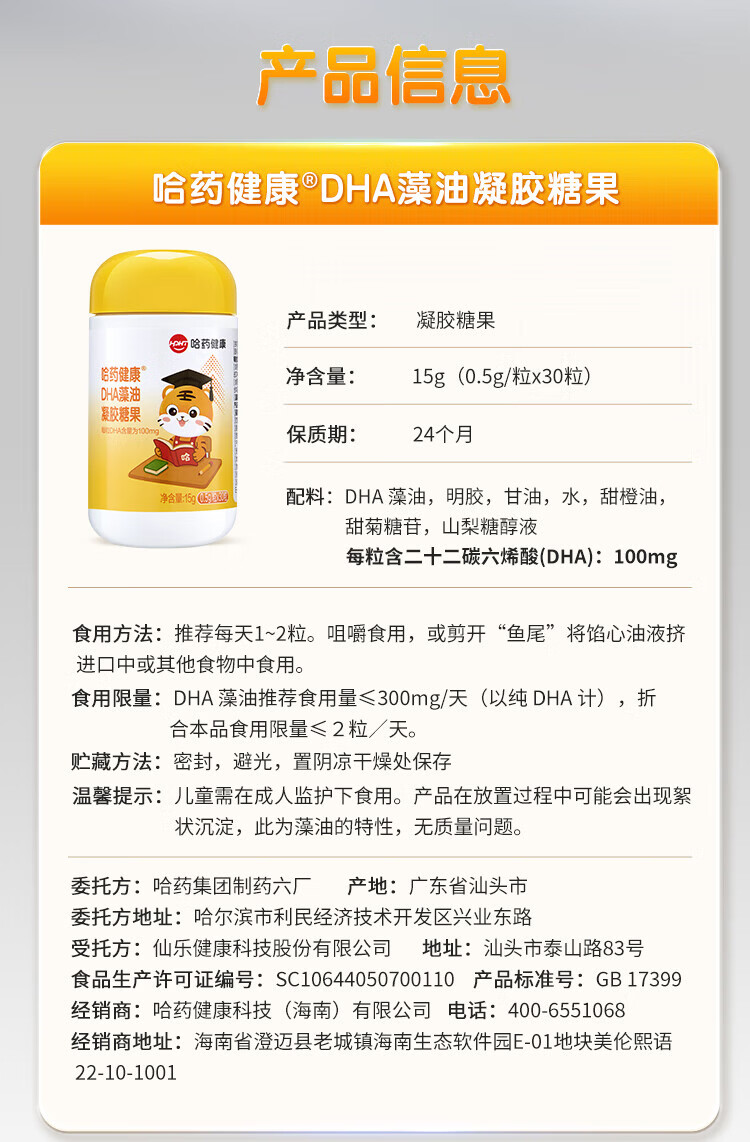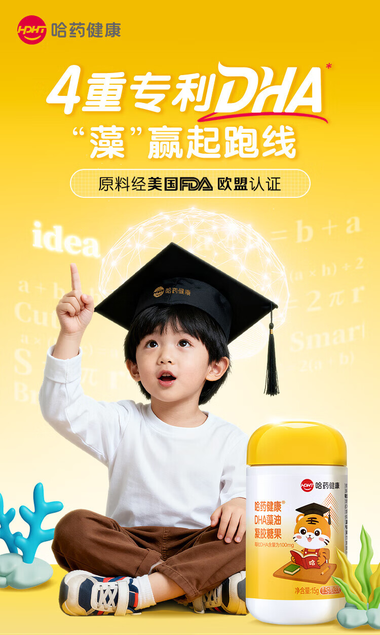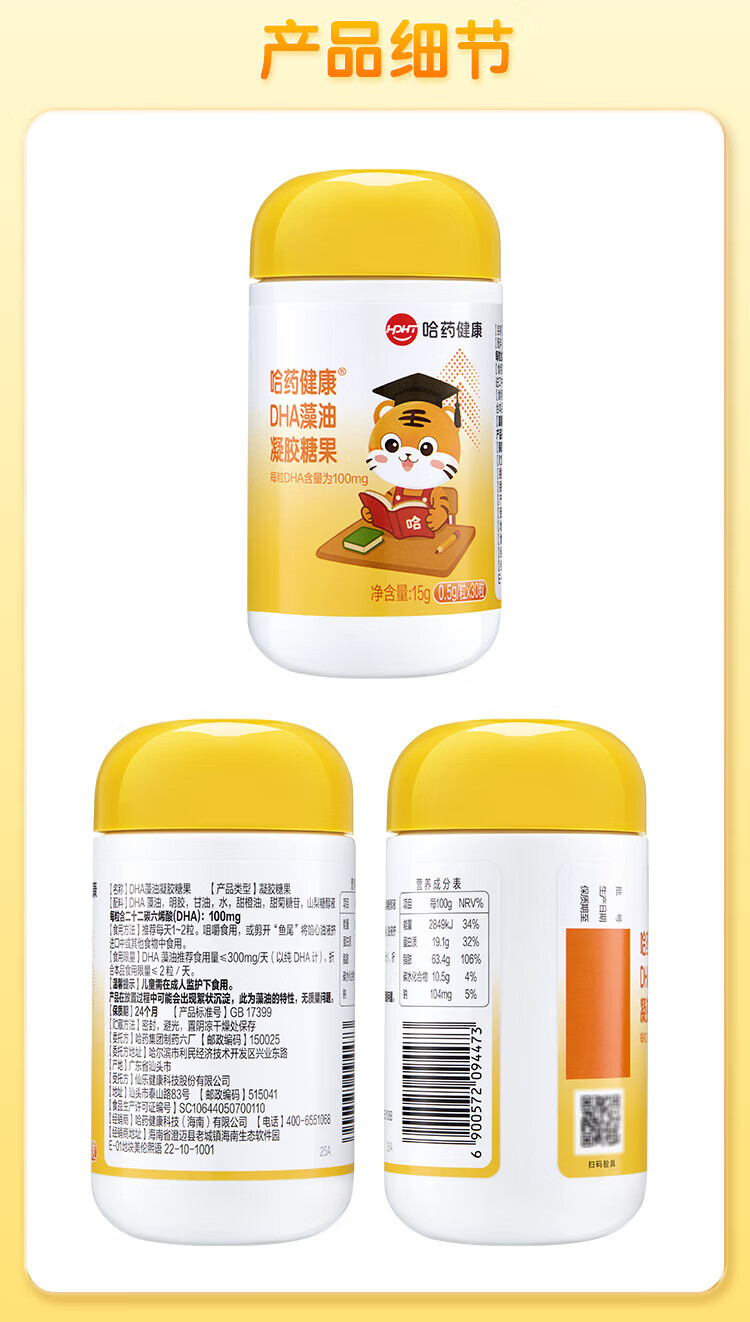 Harbin Pharmaceutical DHA algae oil for children, infants and young children to supplement DHA algae oil for pregnant women 30 capsules*3 bottles