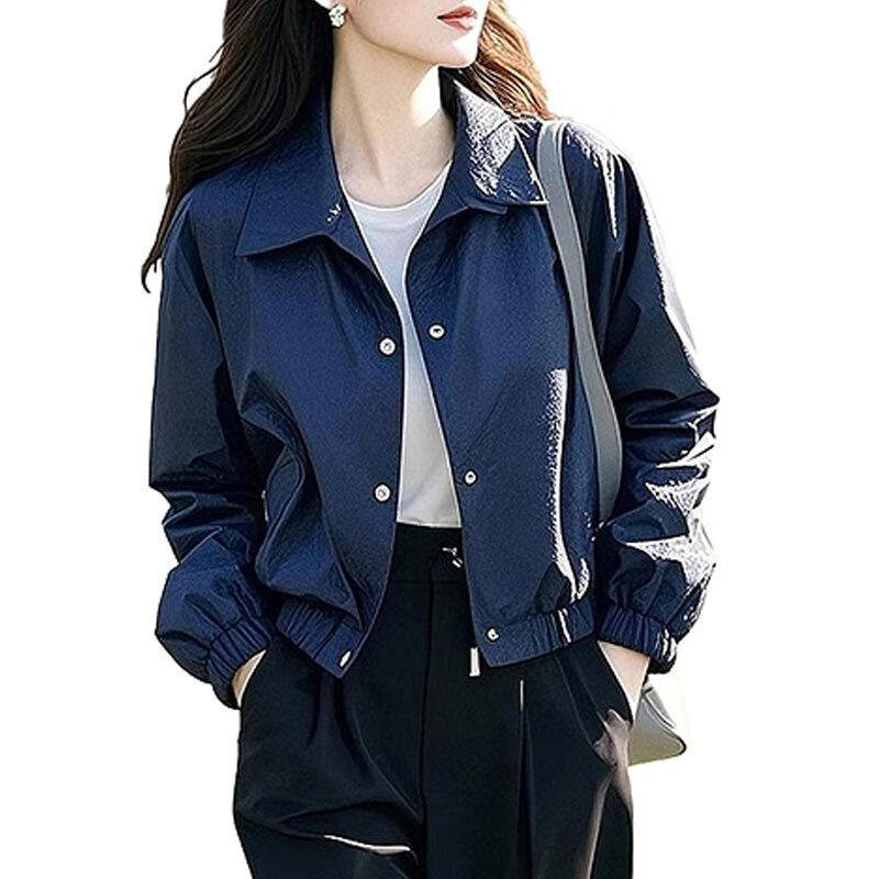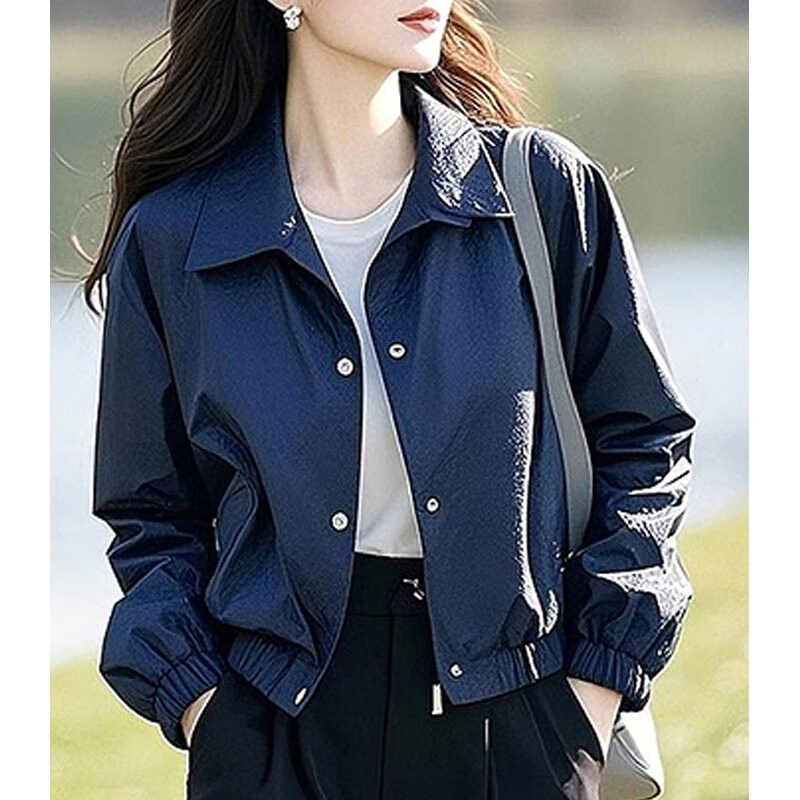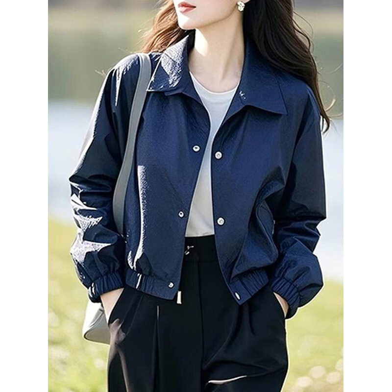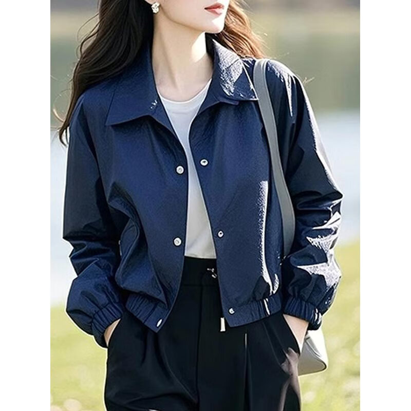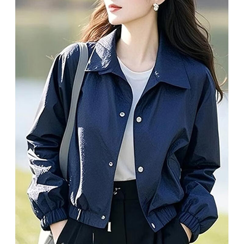 AEMAPE Fashion Short Women's Jacket Jacket for Women Spring and Autumn 2025 New Spring Loose Casual Thin Small Top Dark Blue L_Recommended 105-120 catties