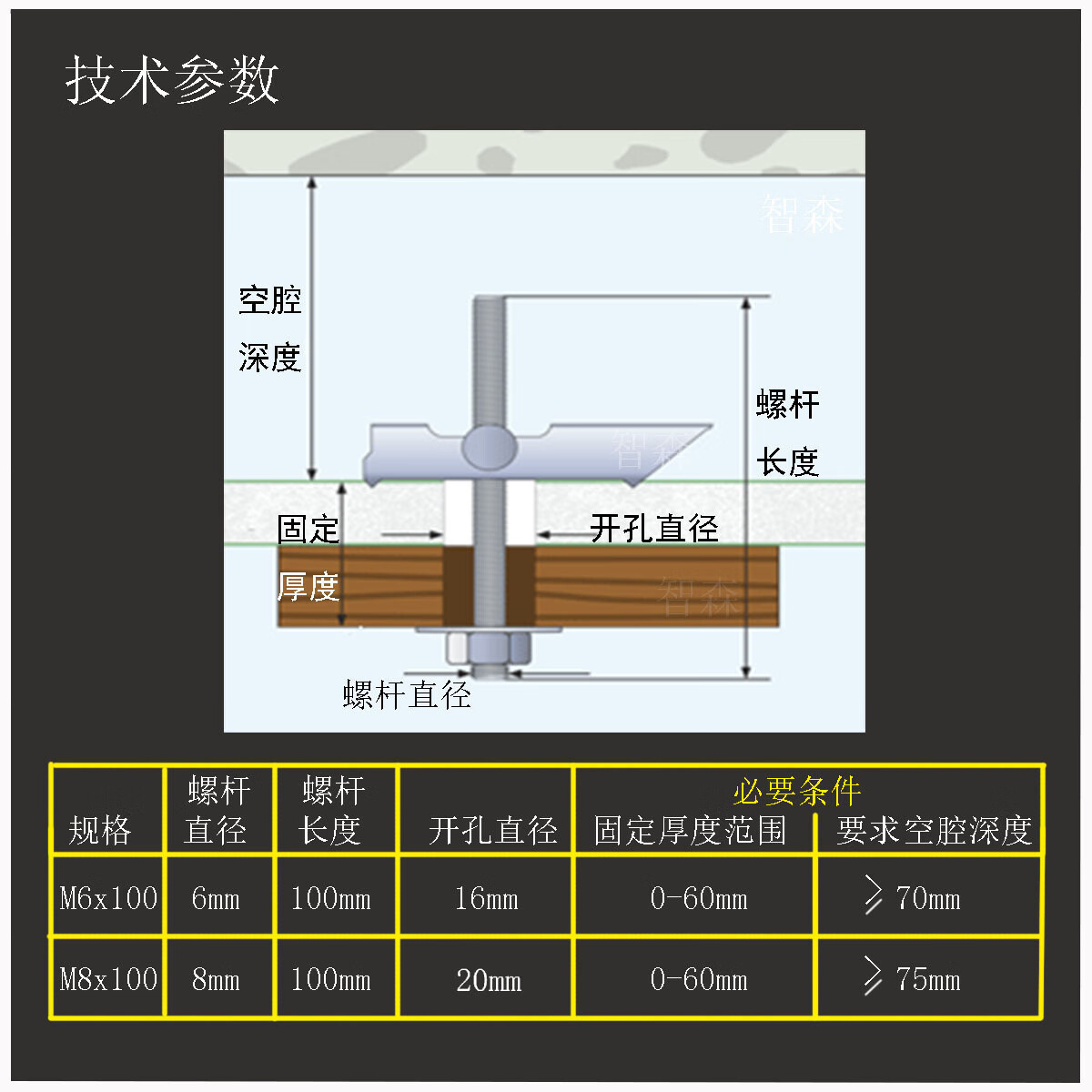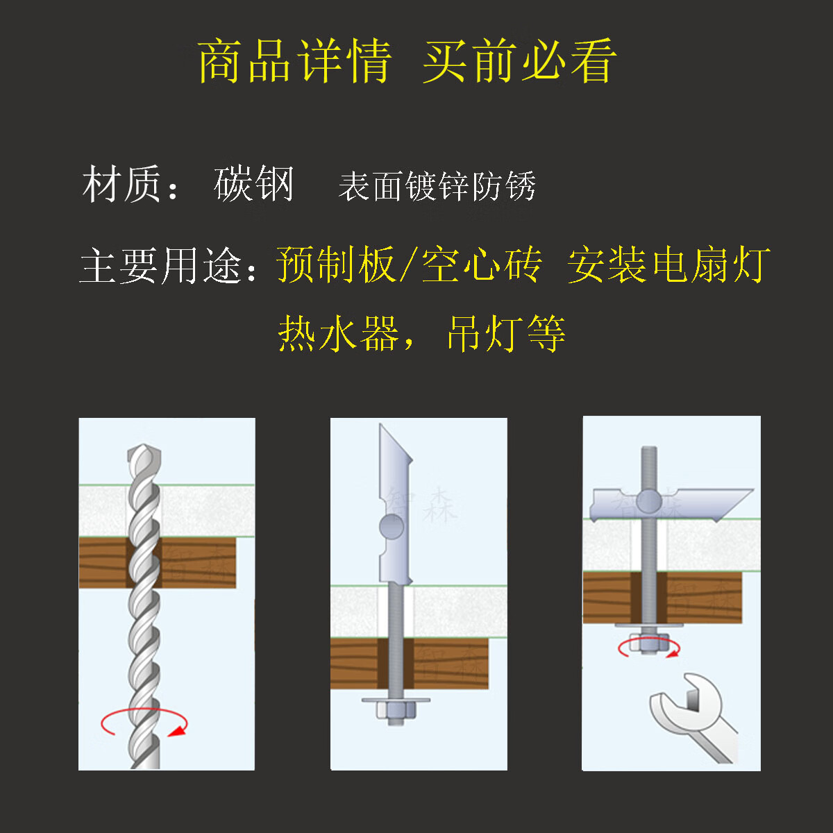 Zhuochen heavy-duty orchid iron aircraft hollow brick cement prefabricated floor ceiling fan lamp water heater installation expansion screw M6x100 (opening 16mm)_5 pieces