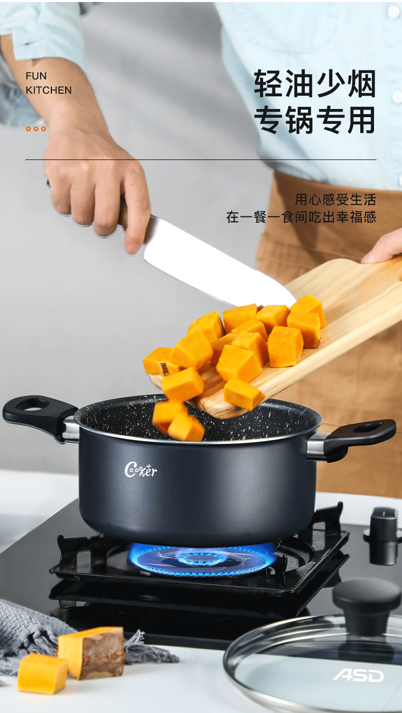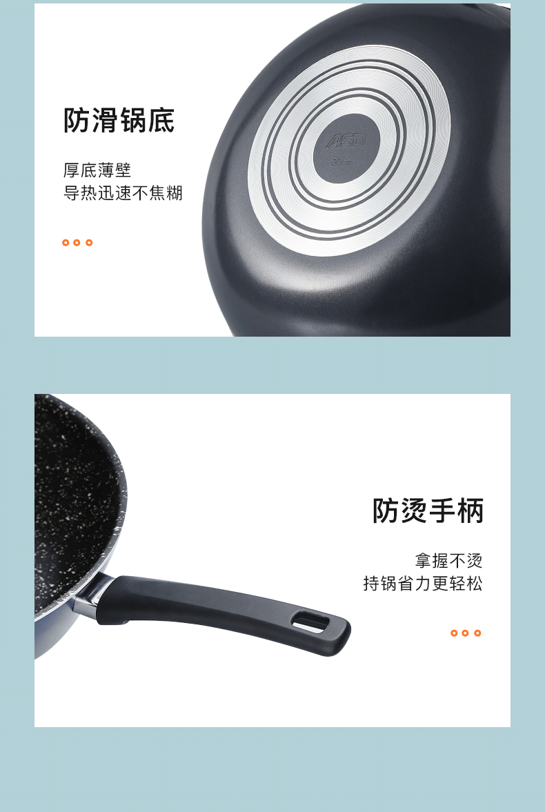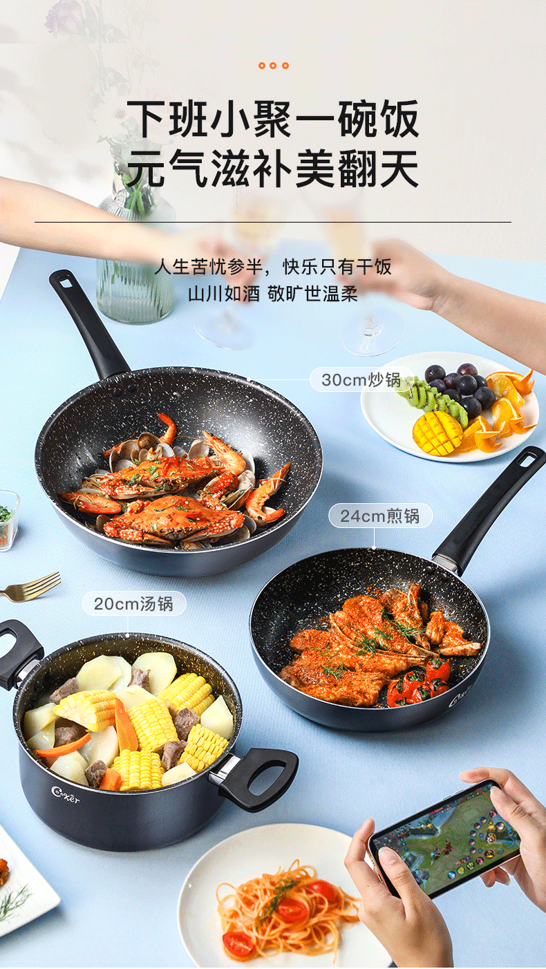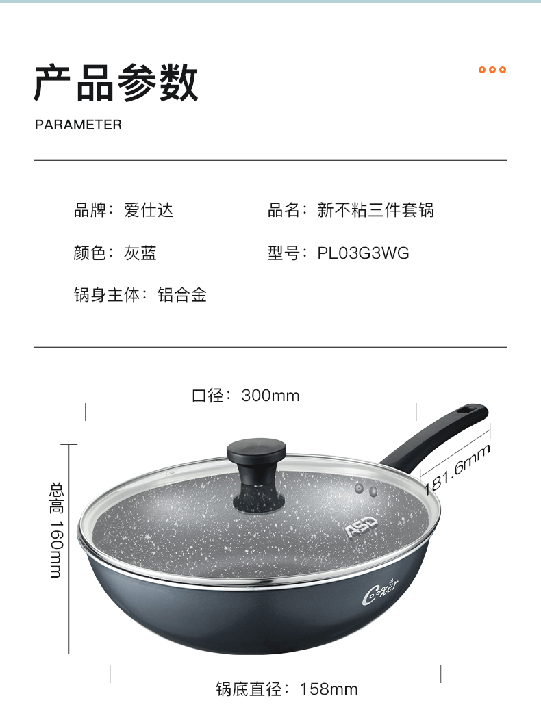 ASD (ASD) three-piece pot set, wok, frying pan, soup pot, milk pot combination pot, gas and natural gas open flame, gray blue non-stick 3-piece set