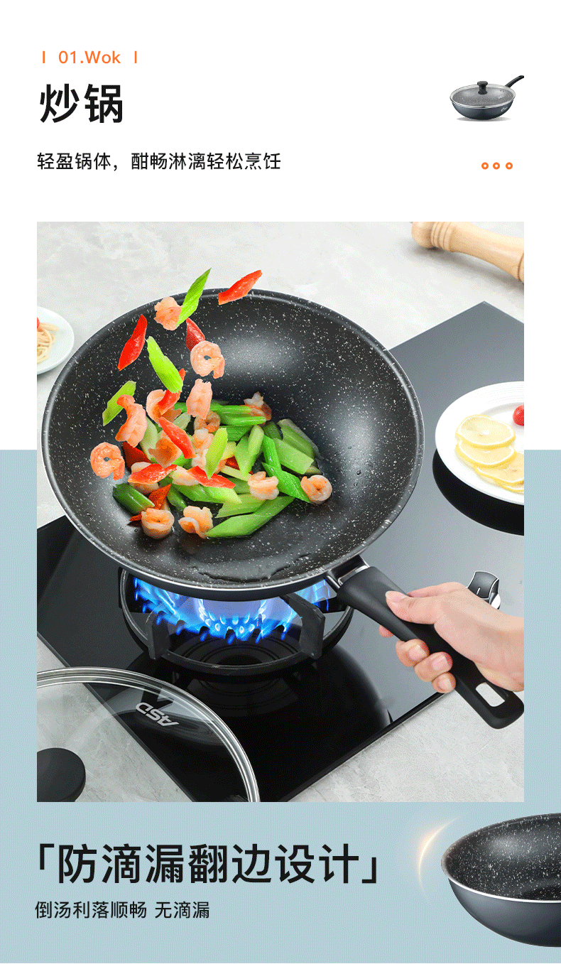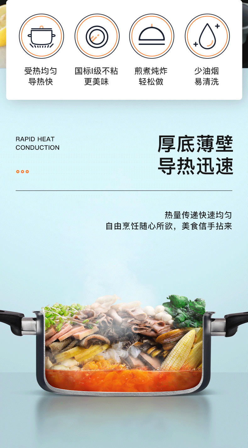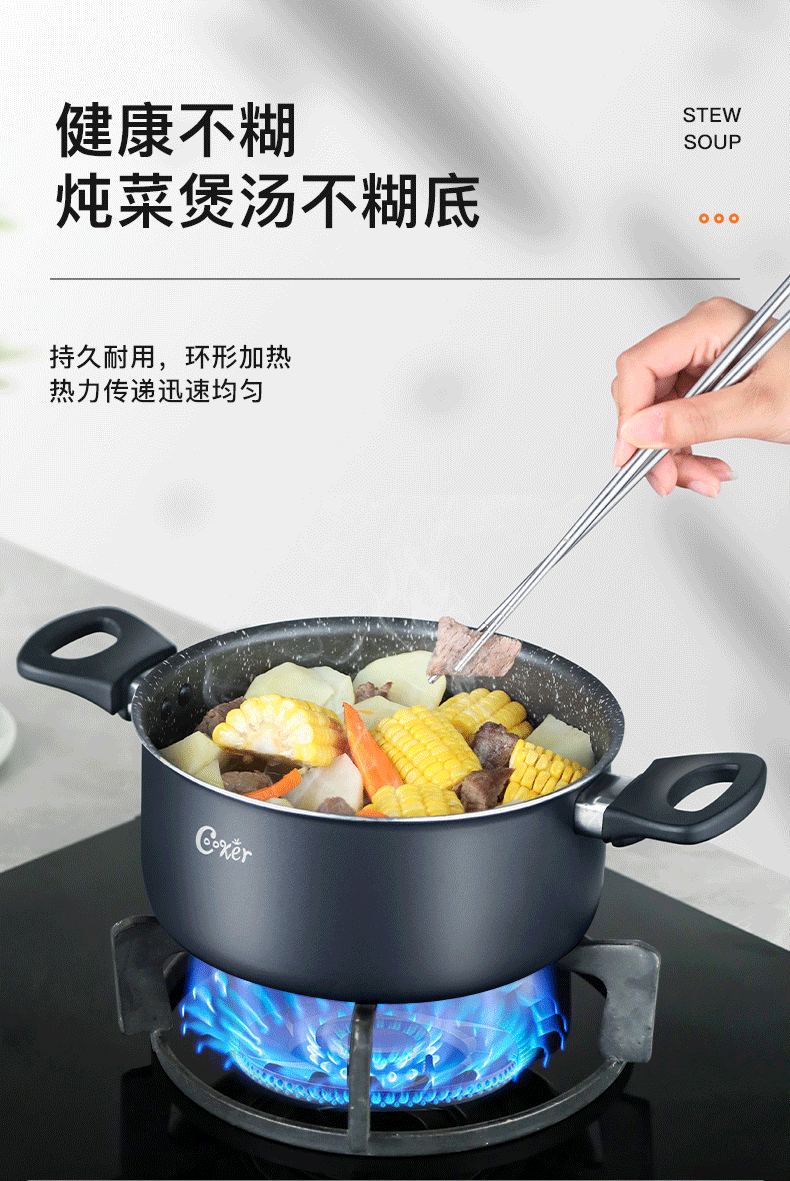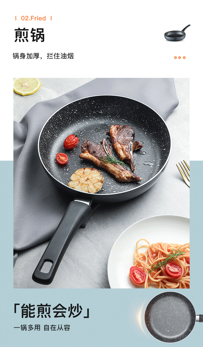 ASD (ASD) three-piece pot set, wok, frying pan, soup pot, milk pot combination pot, gas and natural gas open flame, gray blue non-stick 3-piece set