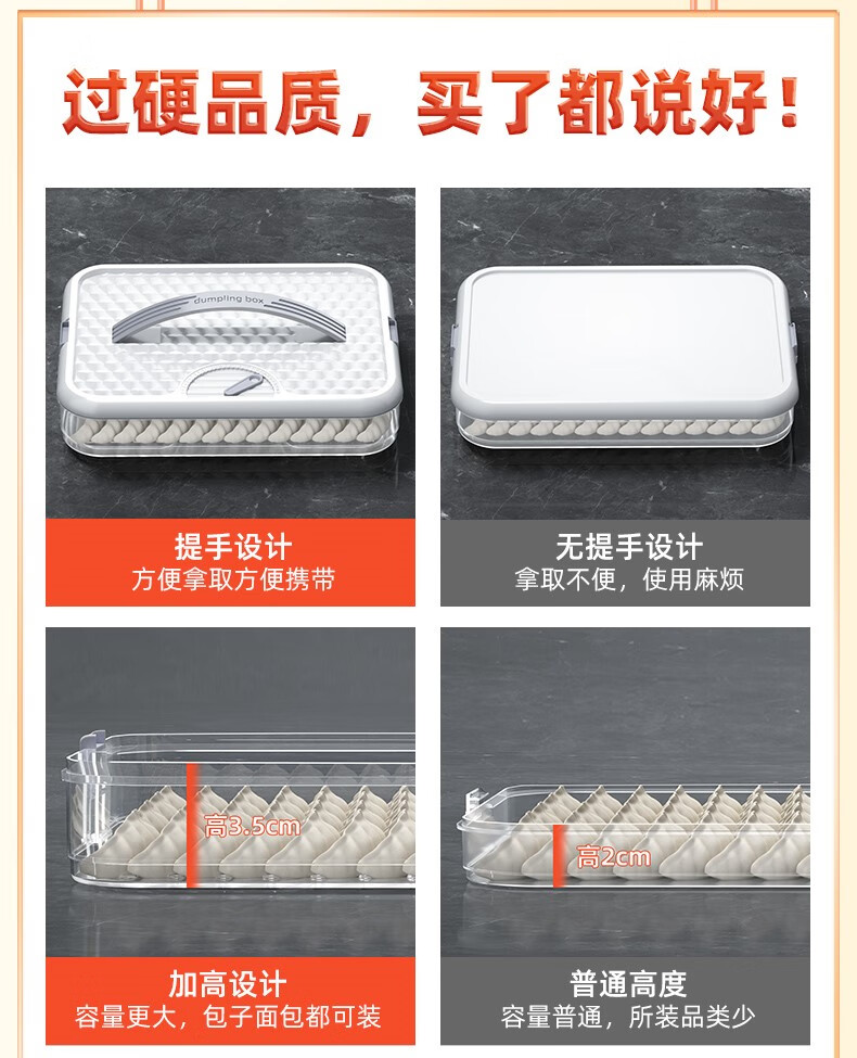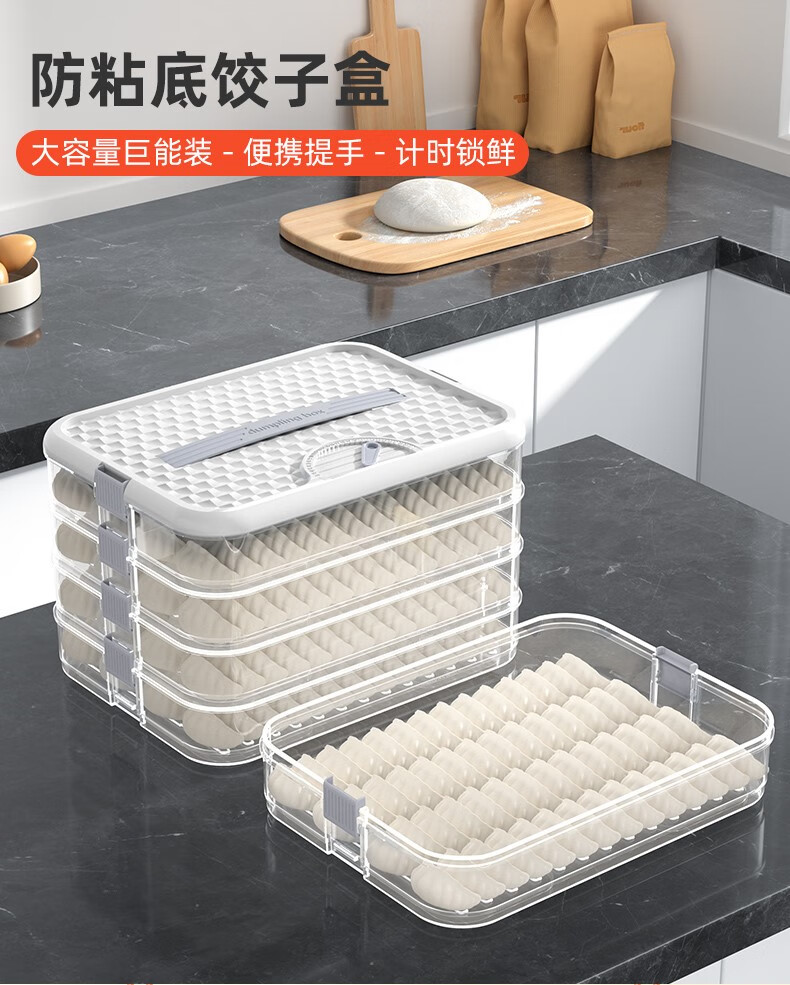 Du Zhunyu Dumpling Storage Box Dumpling Box Household Food Grade Kitchen Refrigerator Organizer Wonton Box Keeps Fresh and Quickly Freezes Cold One Layer and One Cover Can Hold 60 Dumplings/Can Be Portable/Anti-Stick Bottom (Quiet Blue