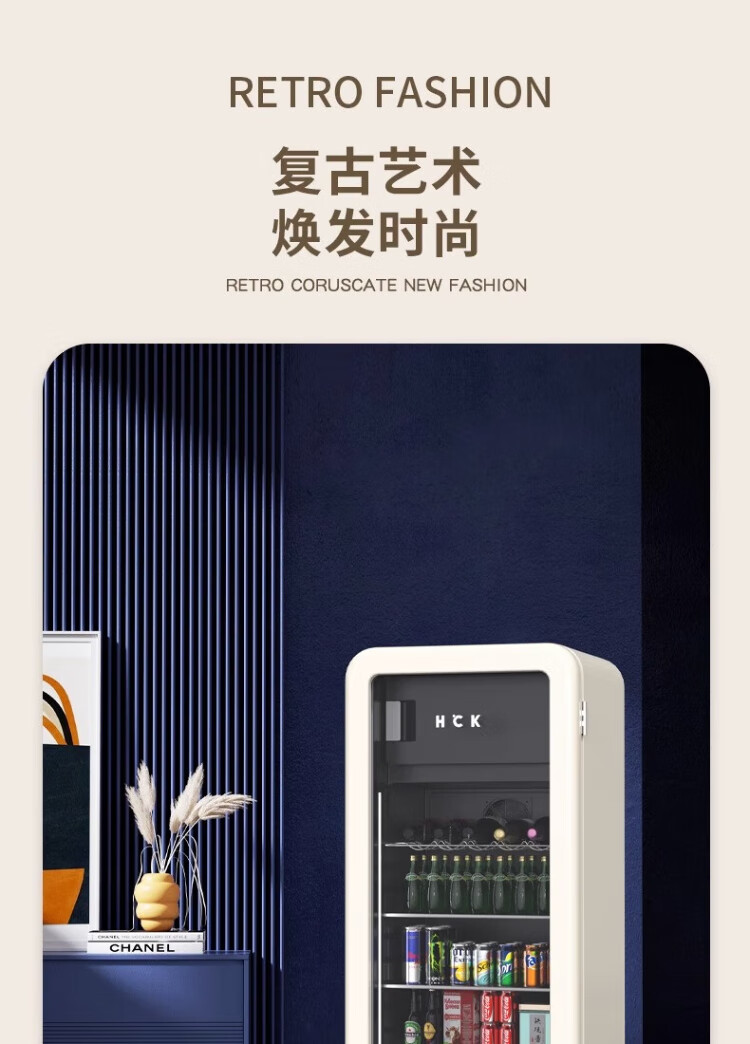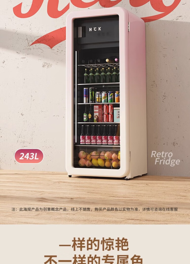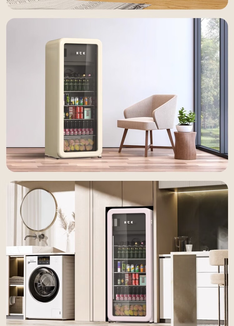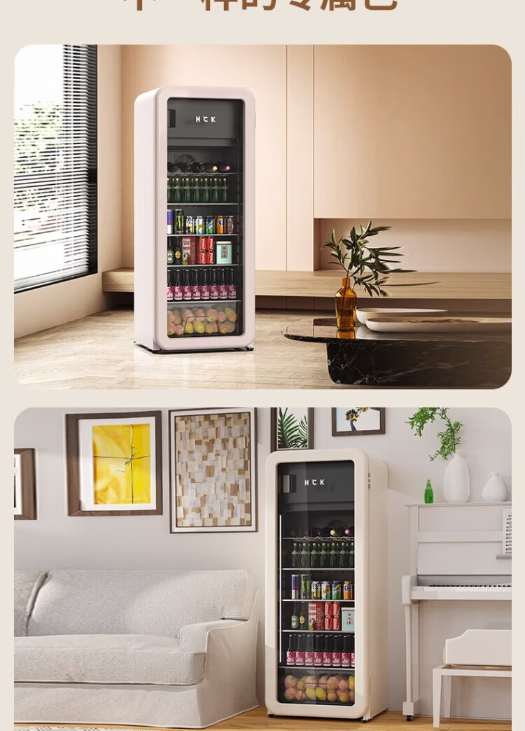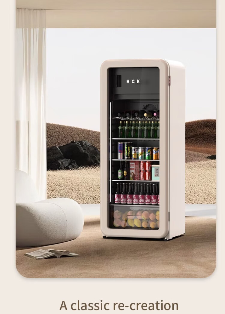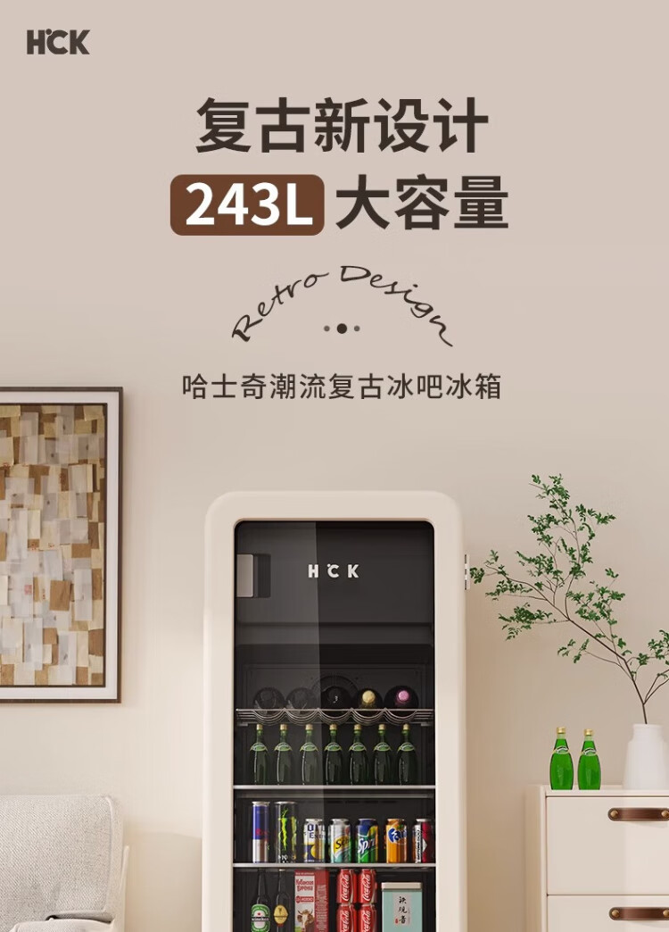 HCK Husky Ice Bar 243 liters Dundun Bar pro living room retro refrigerator household large-capacity refrigerated refrigerated storage cabinet wine cabinet slim ice bar large wine cabinet 330rd-s air-cooled defrost丨independent freezing丨243L milk tea color