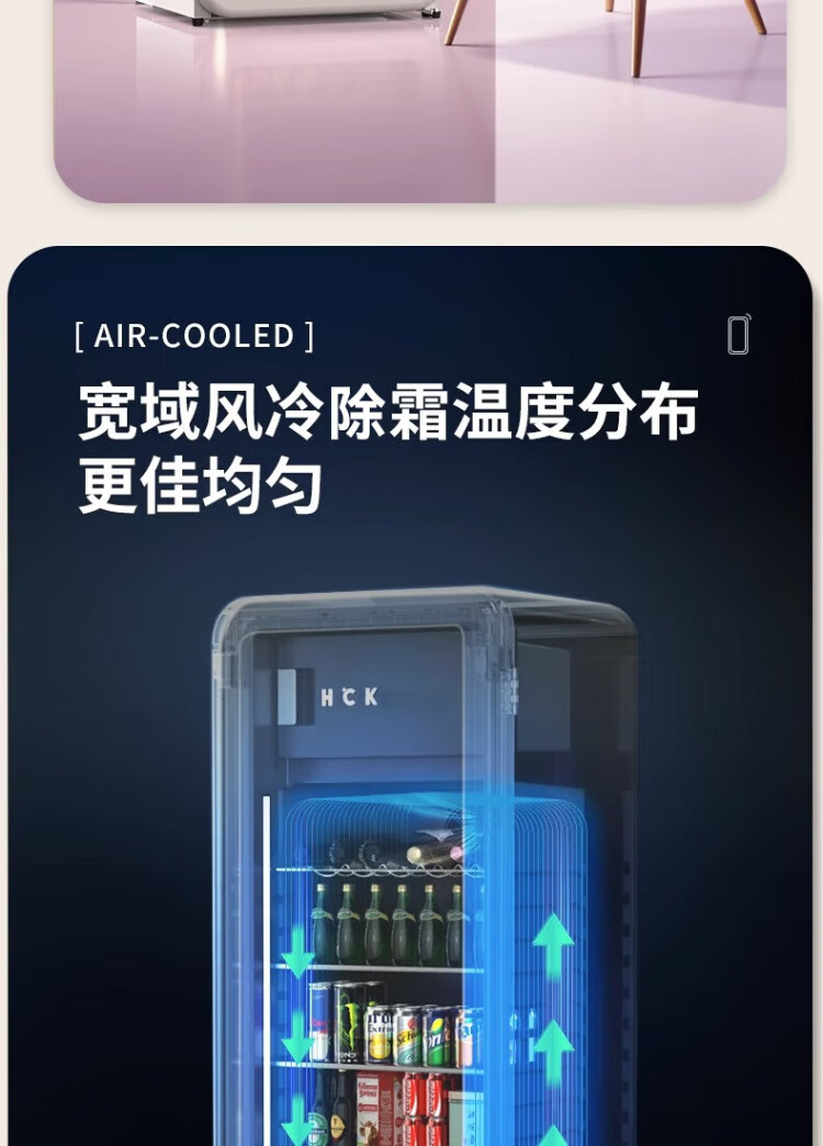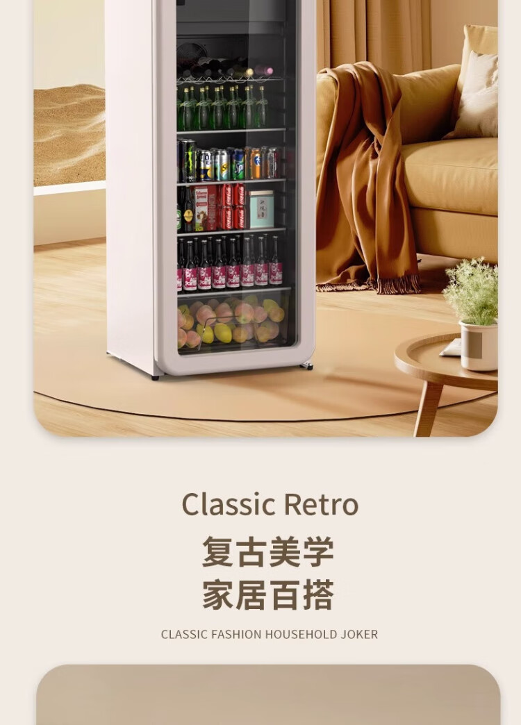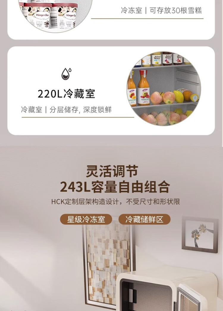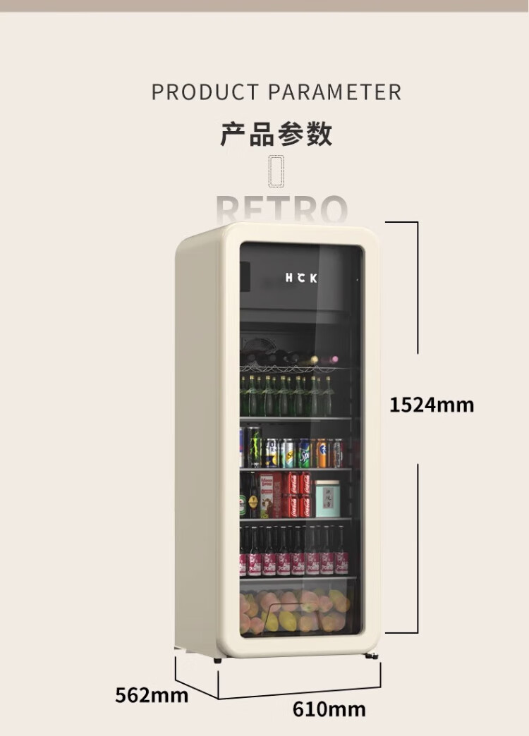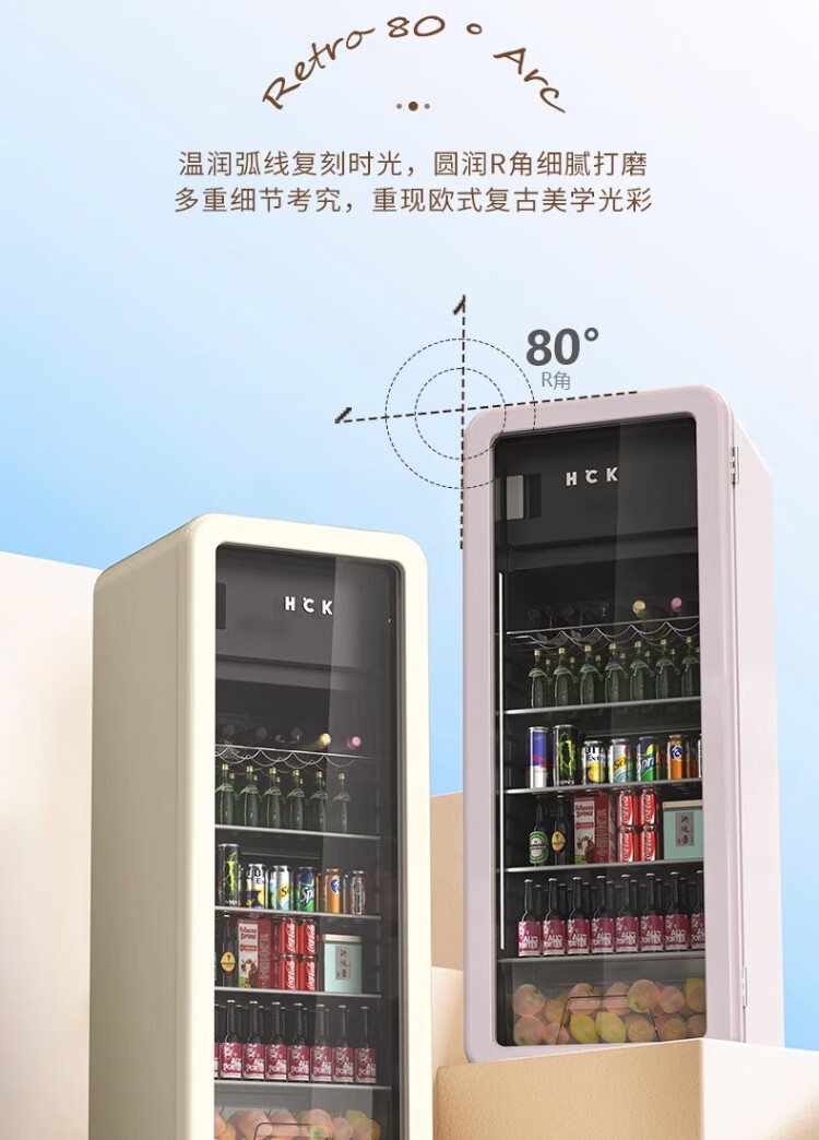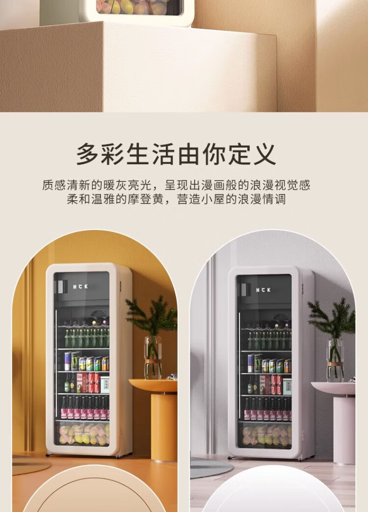 HCK Husky Ice Bar 243 liters Dundun Bar pro living room retro refrigerator household large-capacity refrigerated refrigerated storage cabinet wine cabinet slim ice bar large wine cabinet 330rd-s air-cooled defrost丨independent freezing丨243L milk tea color