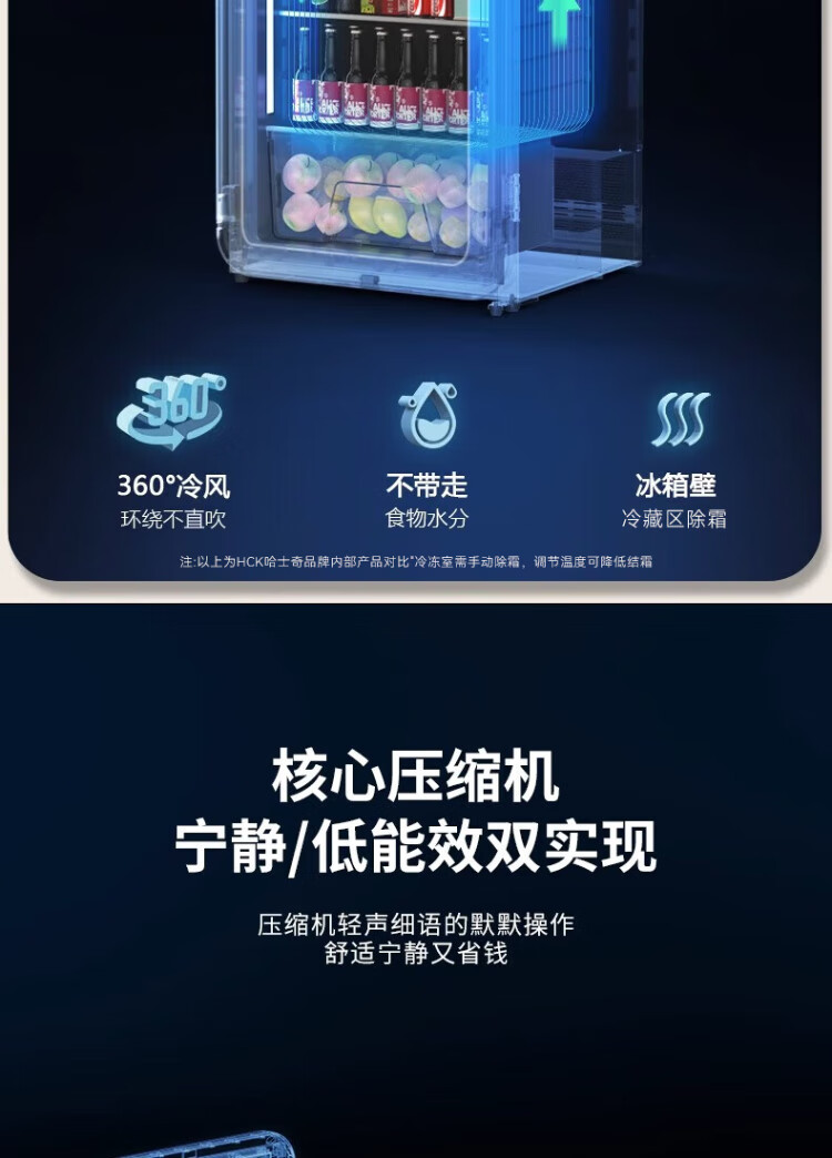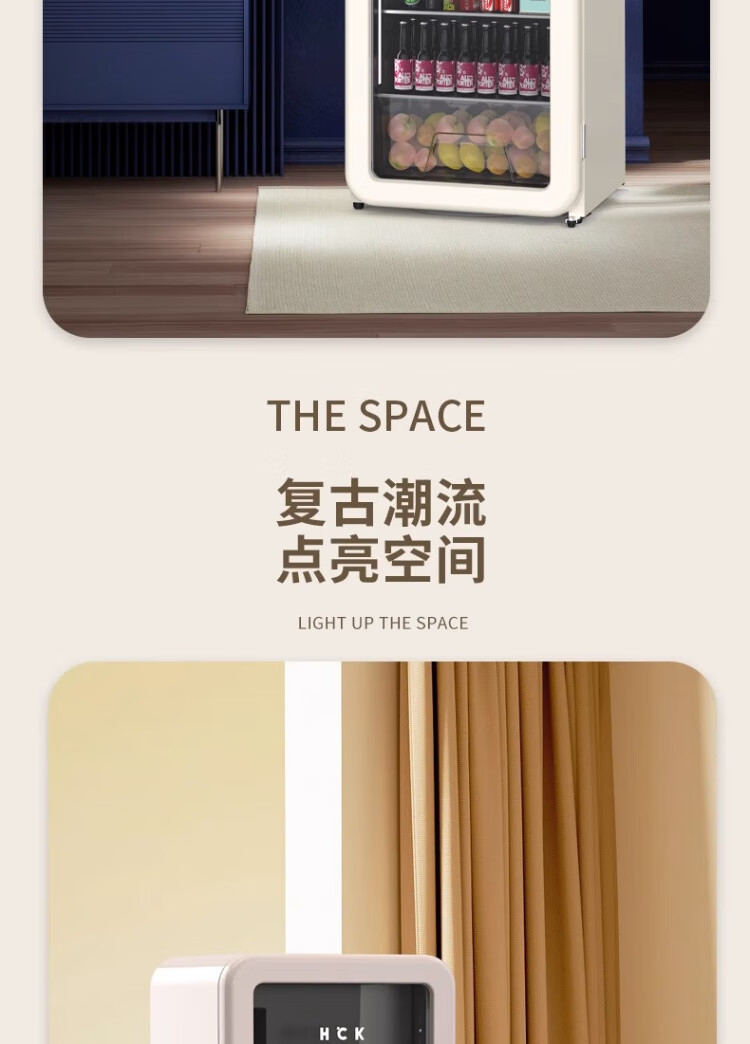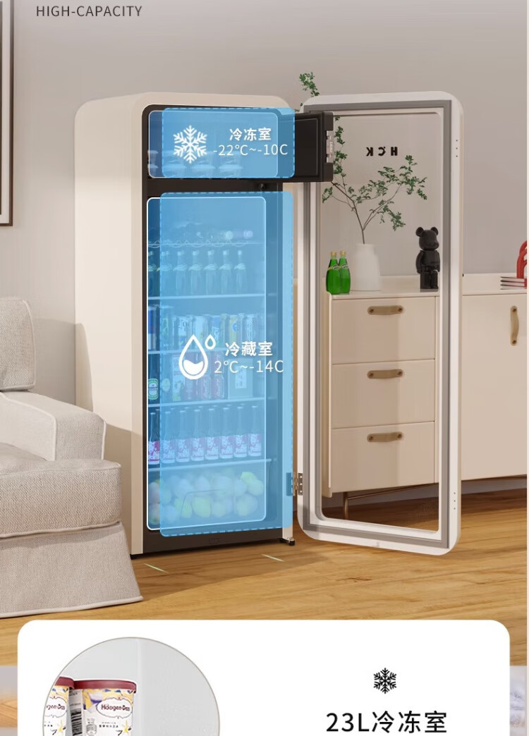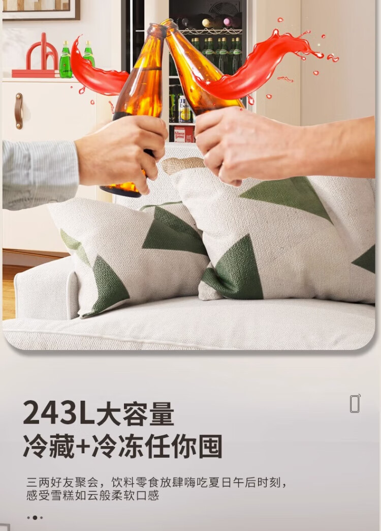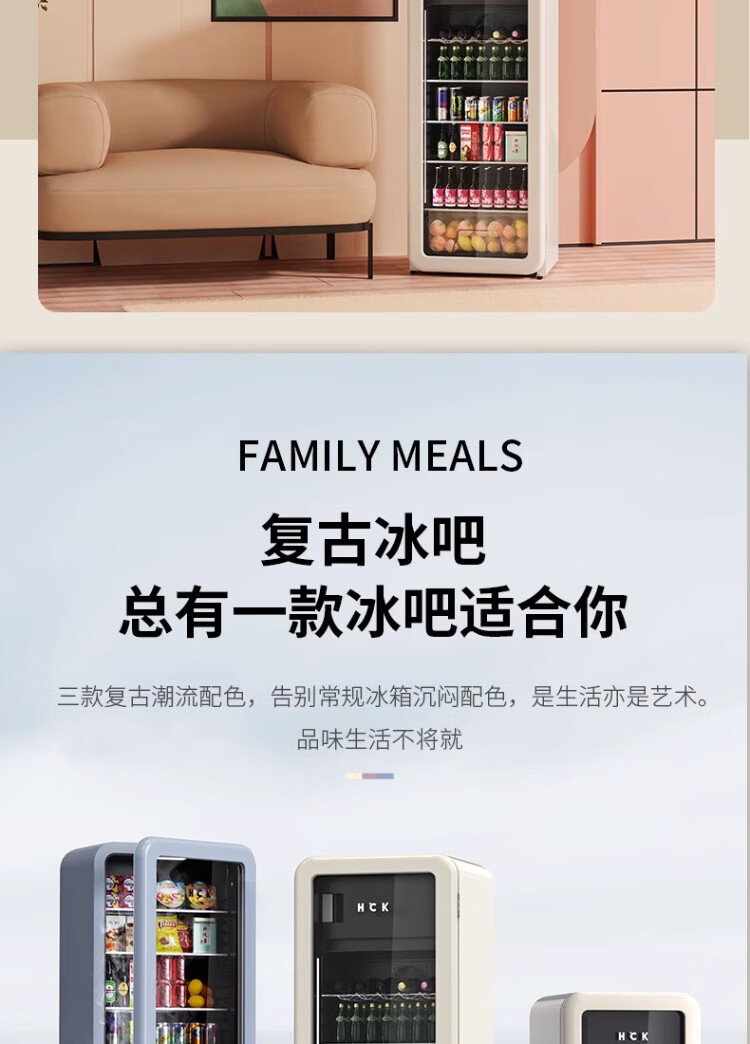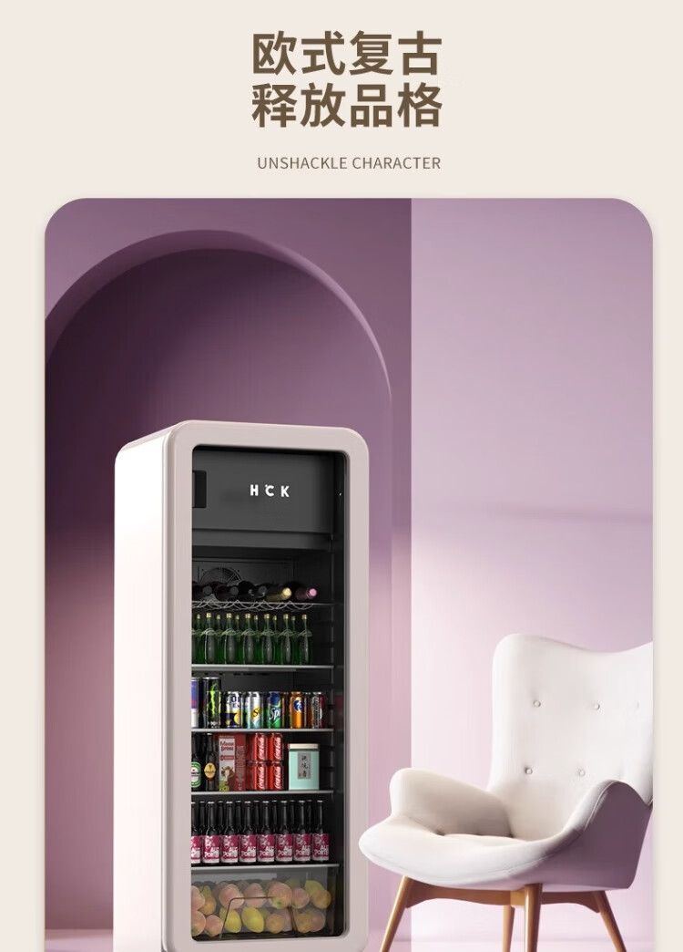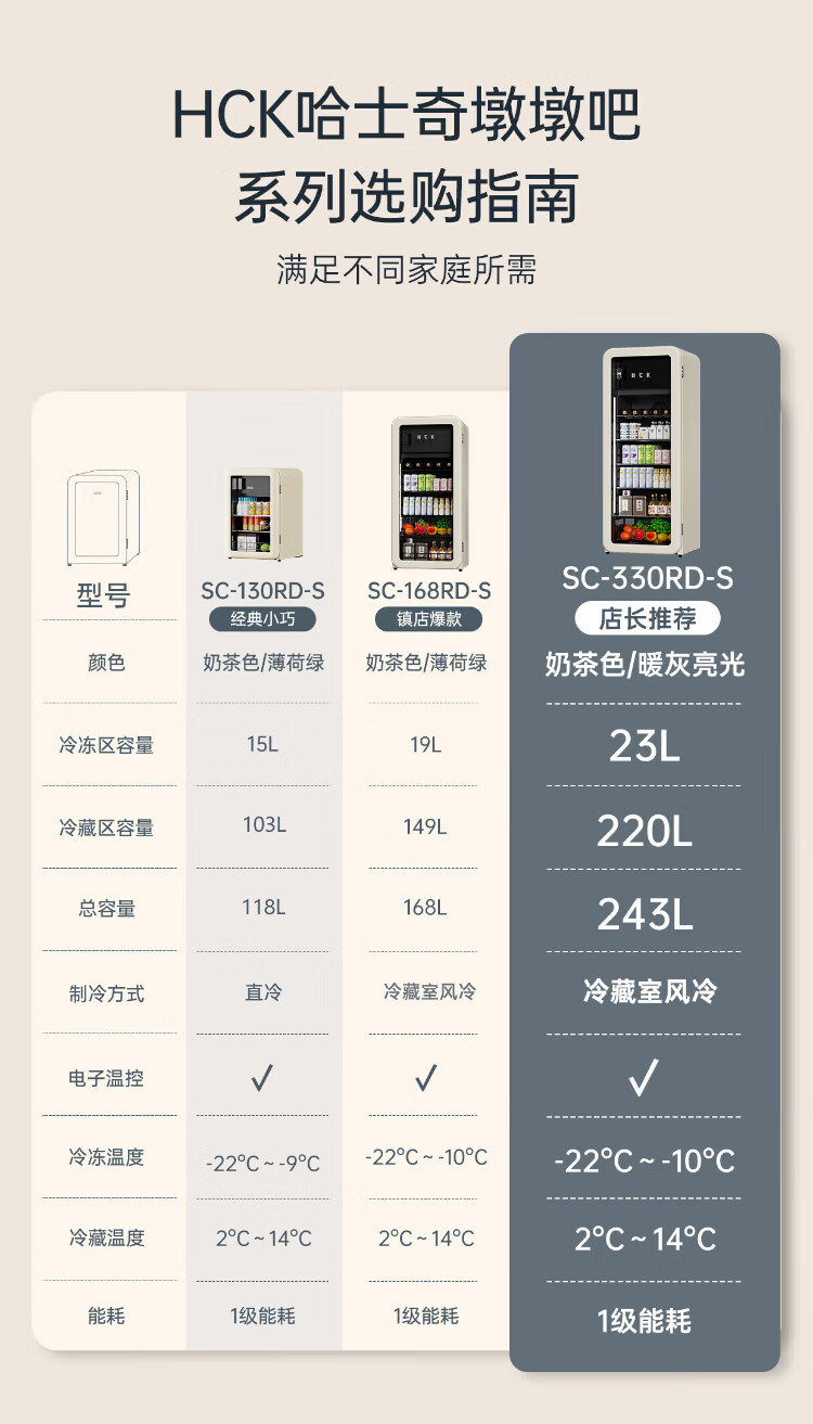 HCK Husky Ice Bar 243 liters Dundun Bar pro living room retro refrigerator household large-capacity refrigerated refrigerated storage cabinet wine cabinet slim ice bar large wine cabinet 330rd-s air-cooled defrost丨independent freezing丨243L milk tea color