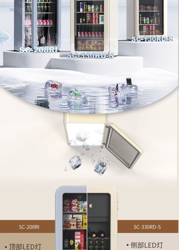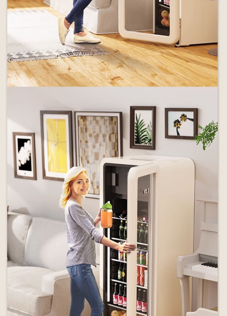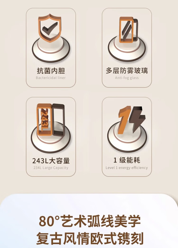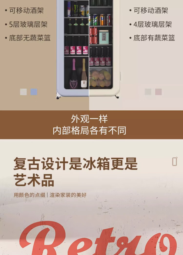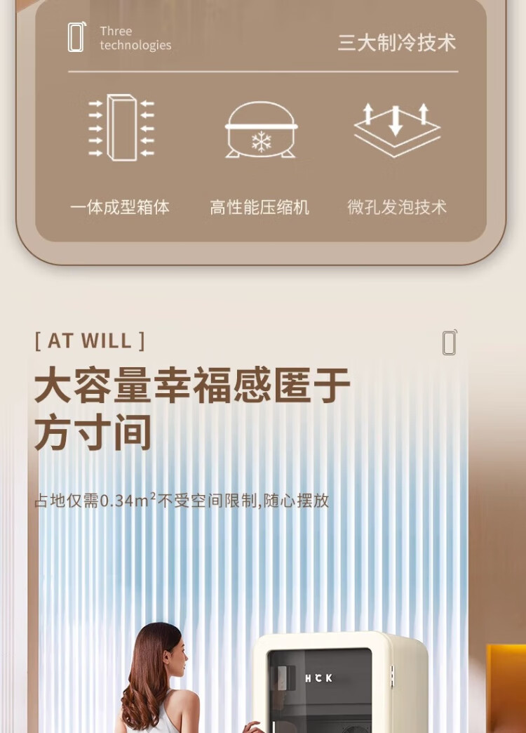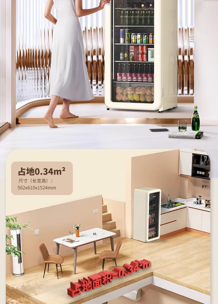 HCK Husky Ice Bar 243 liters Dundun Bar pro living room retro refrigerator household large-capacity refrigerated refrigerated storage cabinet wine cabinet slim ice bar large wine cabinet 330rd-s air-cooled defrost丨independent freezing丨243L milk tea color