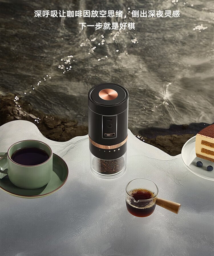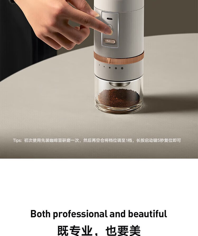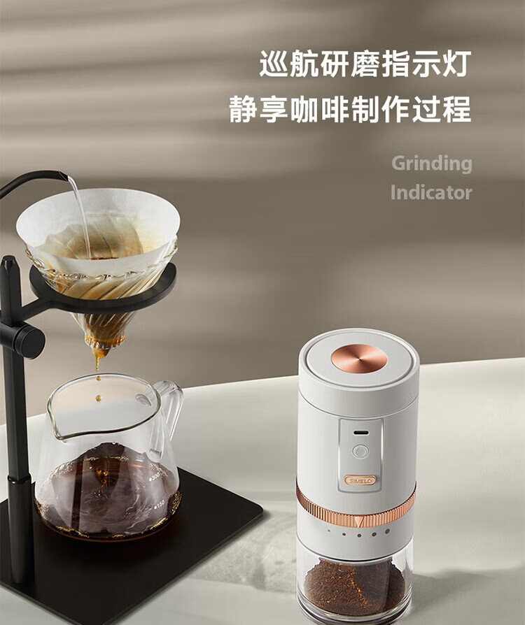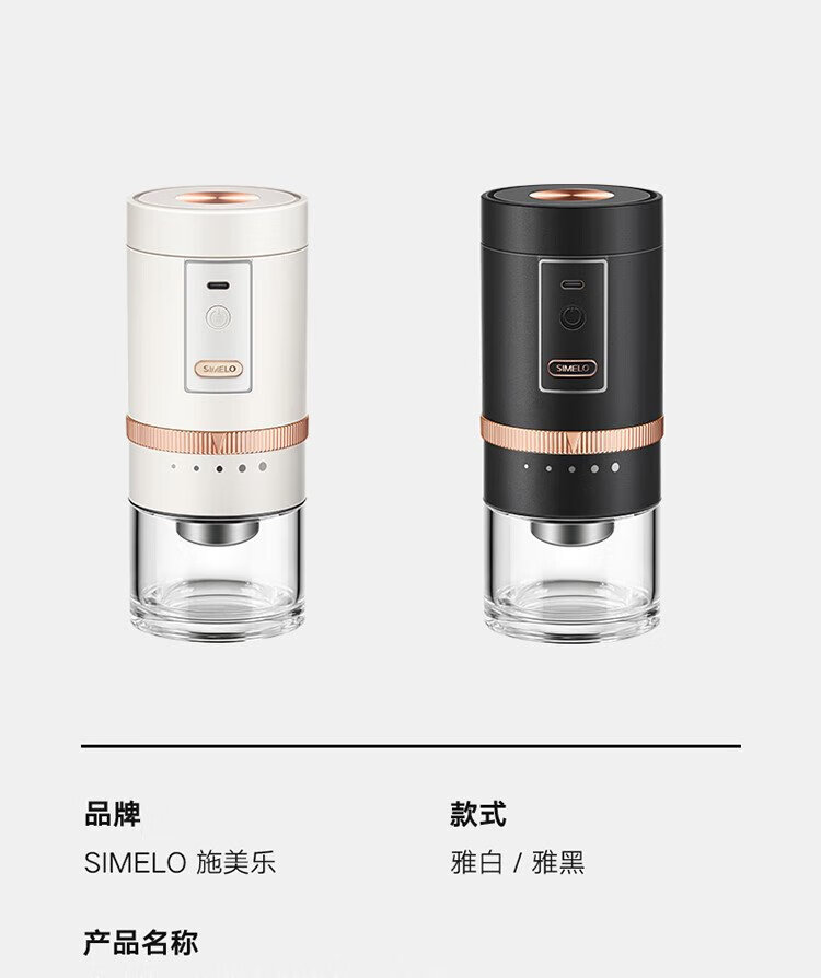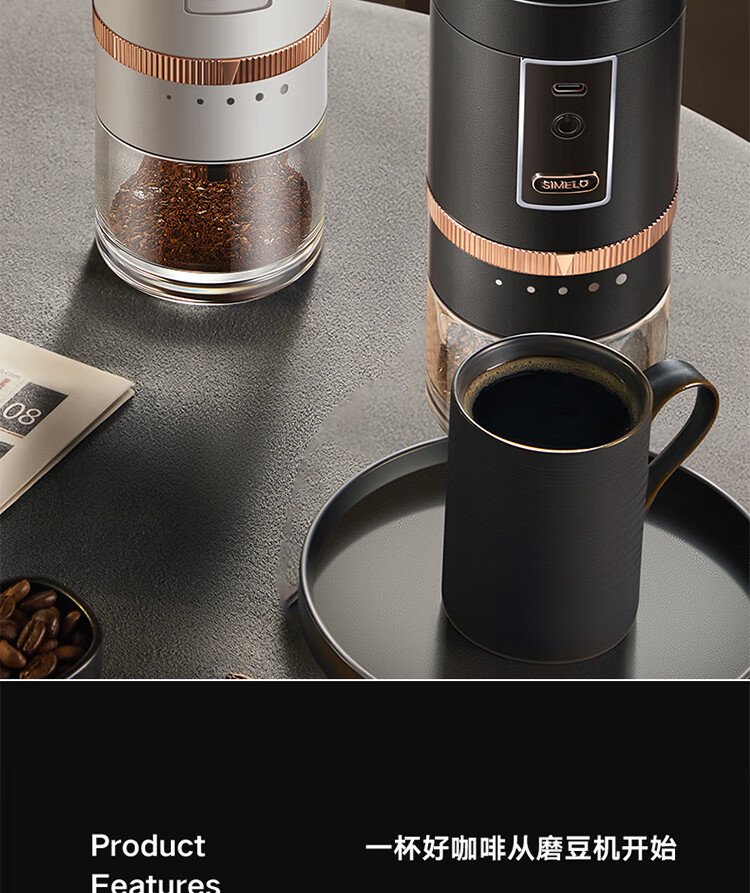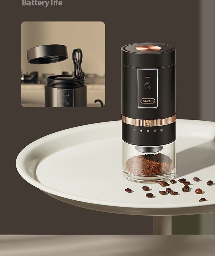 SIMELO Electric Bean Grinder Portable Coffee Bean Grinder Fully Automatic Grinding Coffee Powder Black Electric Grinder 4-piece Set (Upgraded Metal Grinding Chamber)