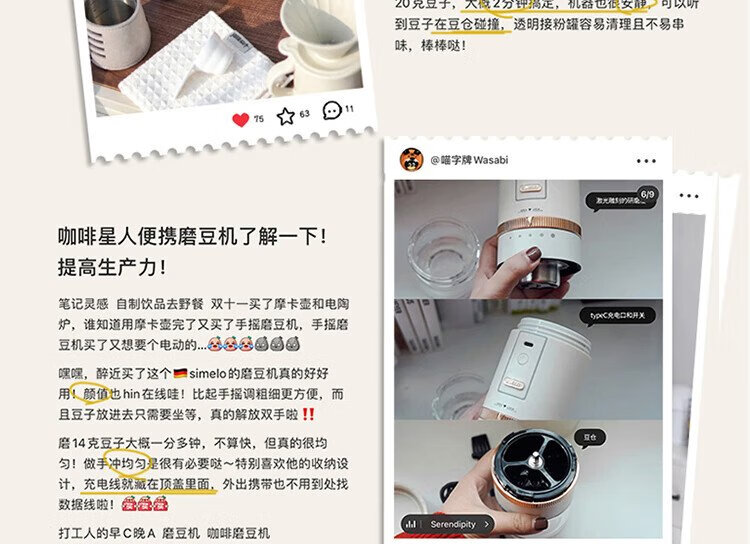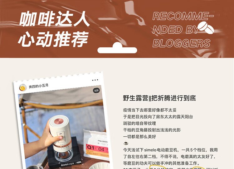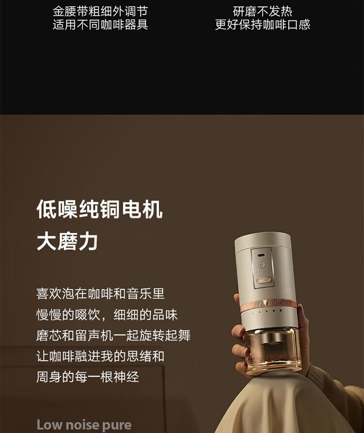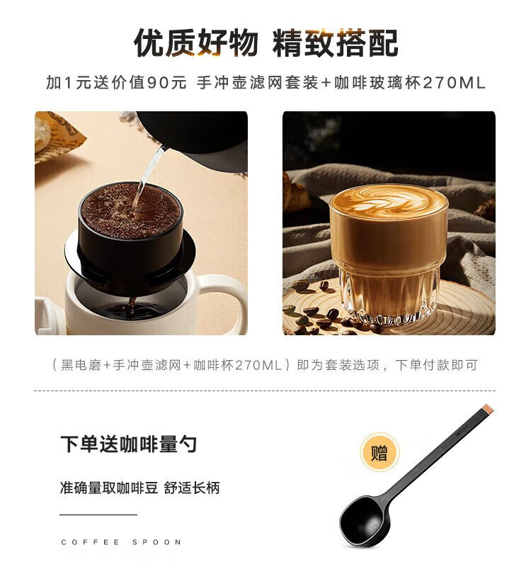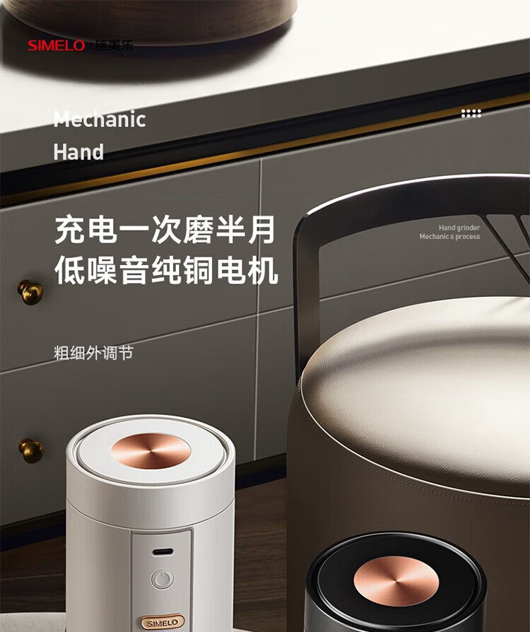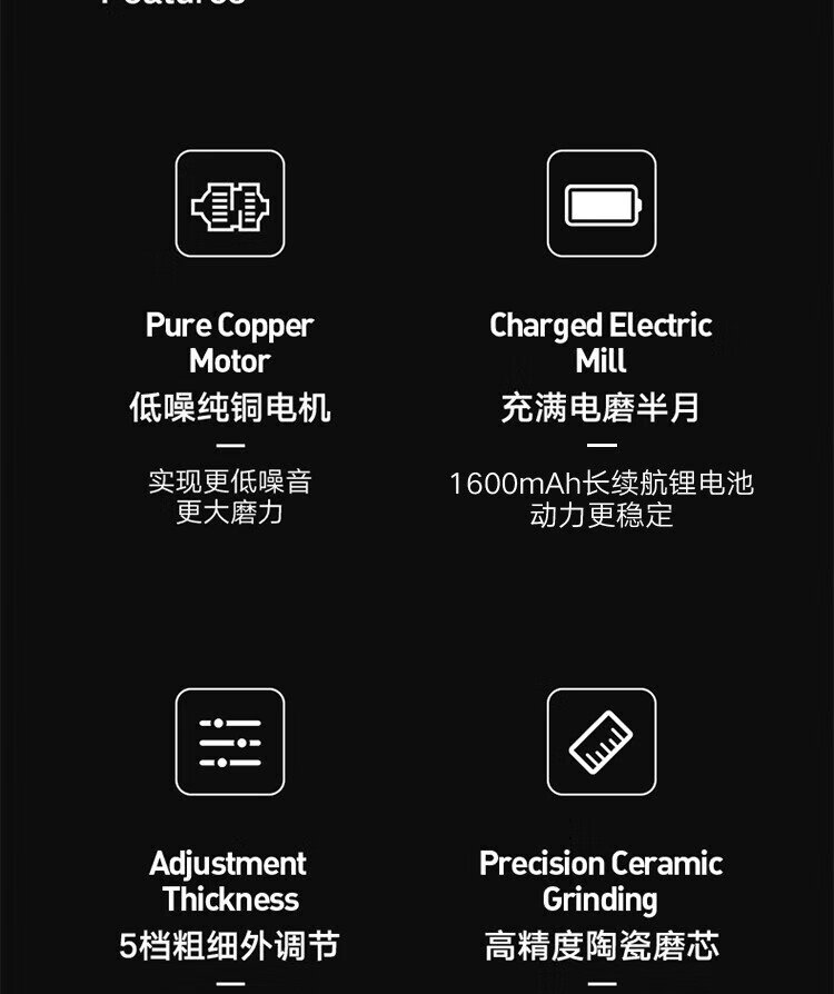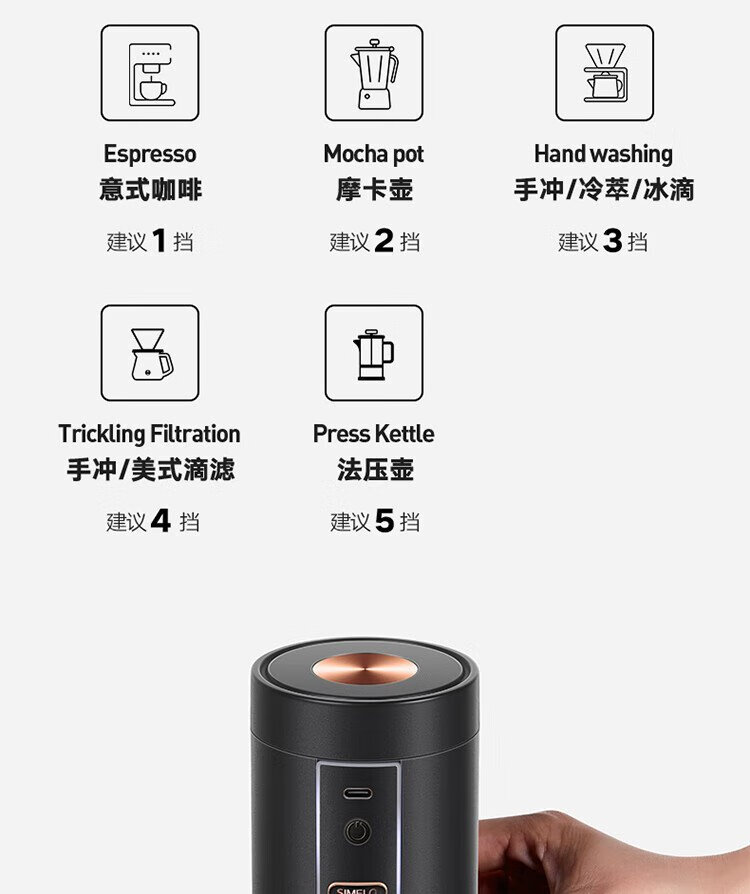 SIMELO Electric Bean Grinder Portable Coffee Bean Grinder Fully Automatic Grinding Coffee Powder Black Electric Grinder 4-piece Set (Upgraded Metal Grinding Chamber)