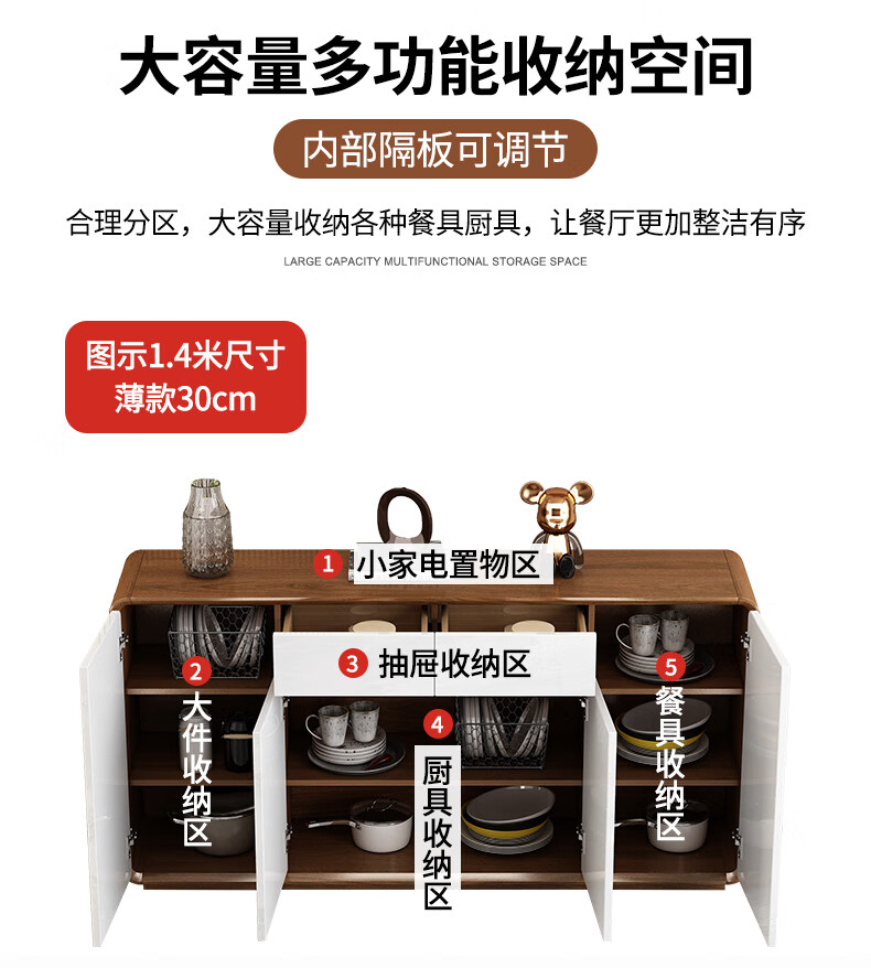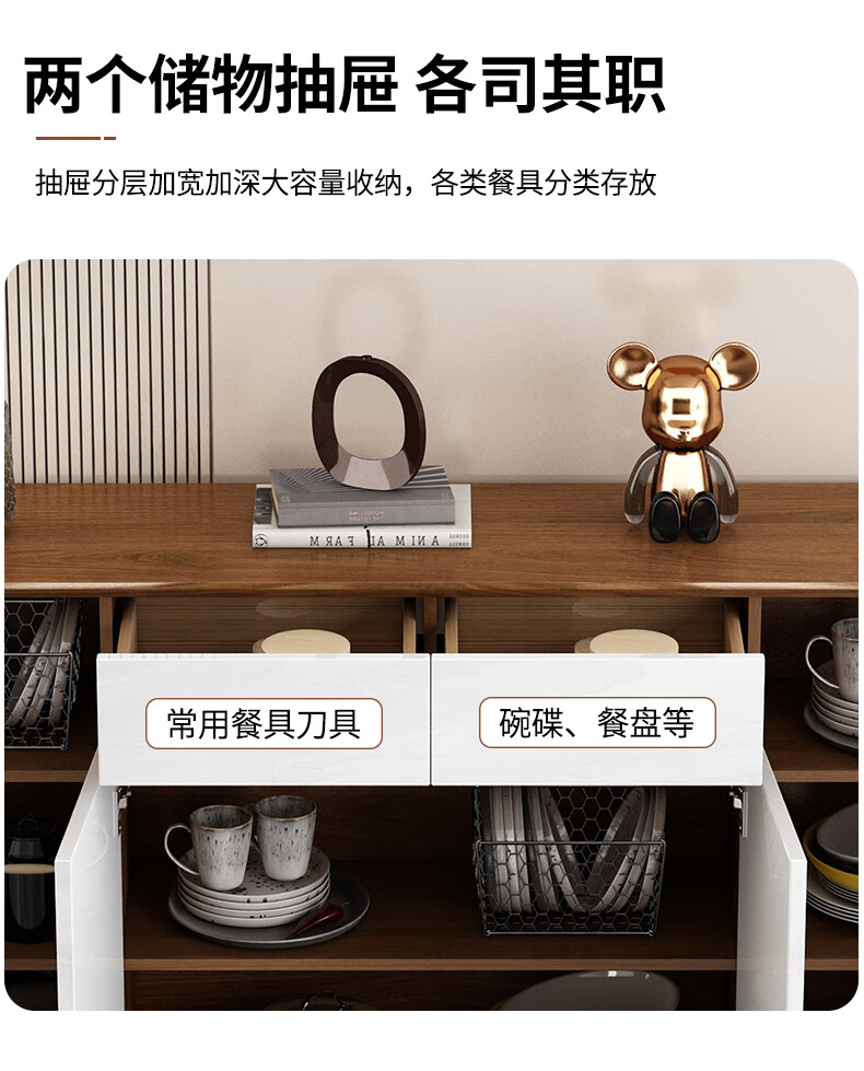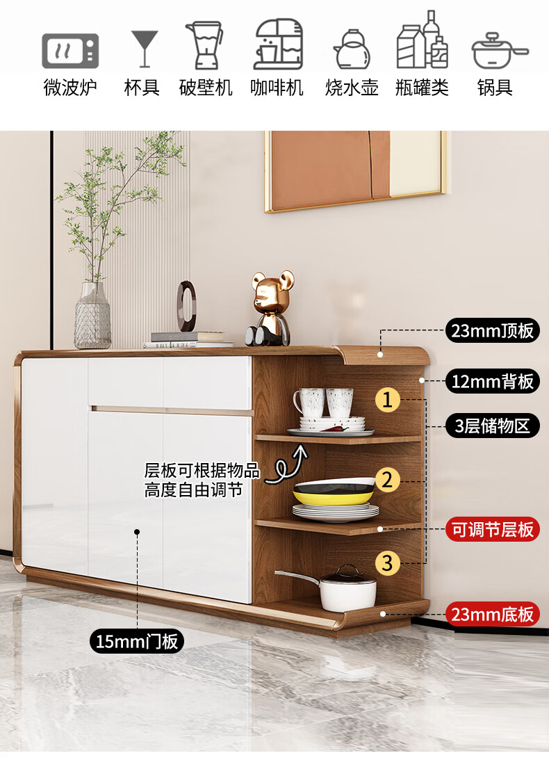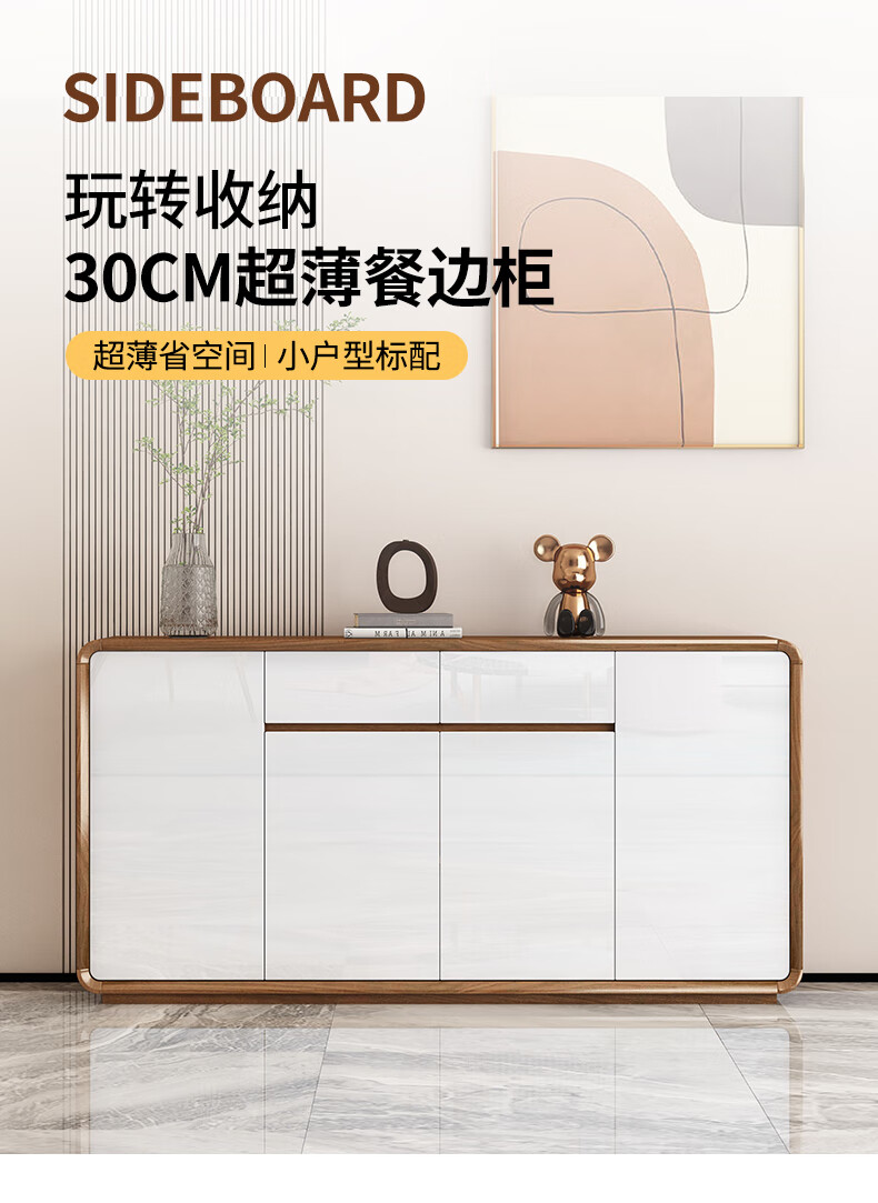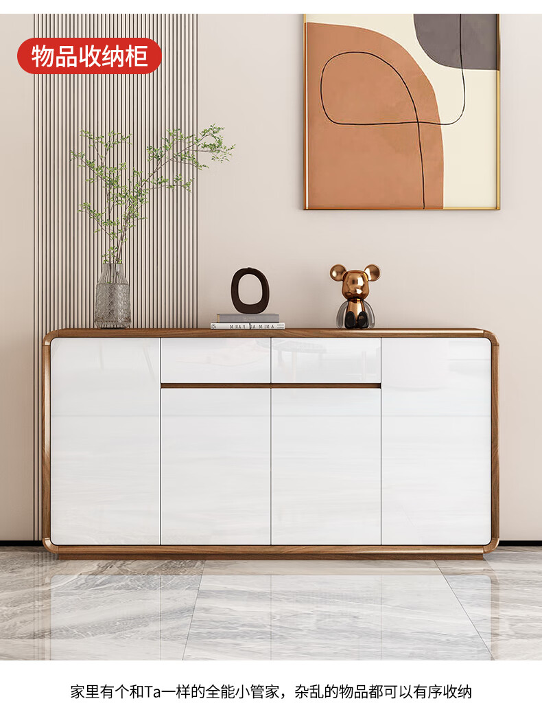 Gu Lejia fully equipped home modern simple sideboard kitchen multi-functional large capacity storage cabinet wine cabinet living room entrance hall walnut set white length * 106 width 30 height 80CM * low legs
