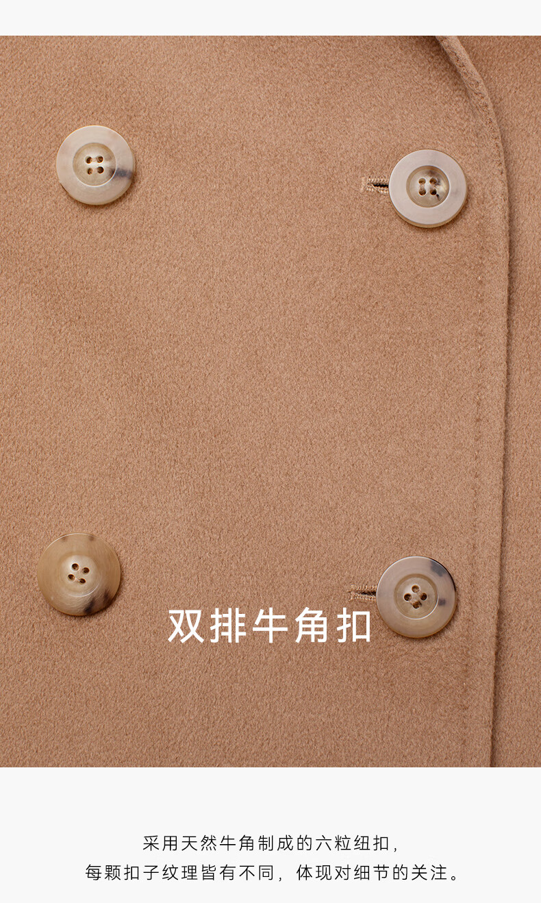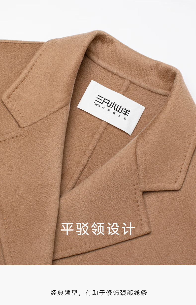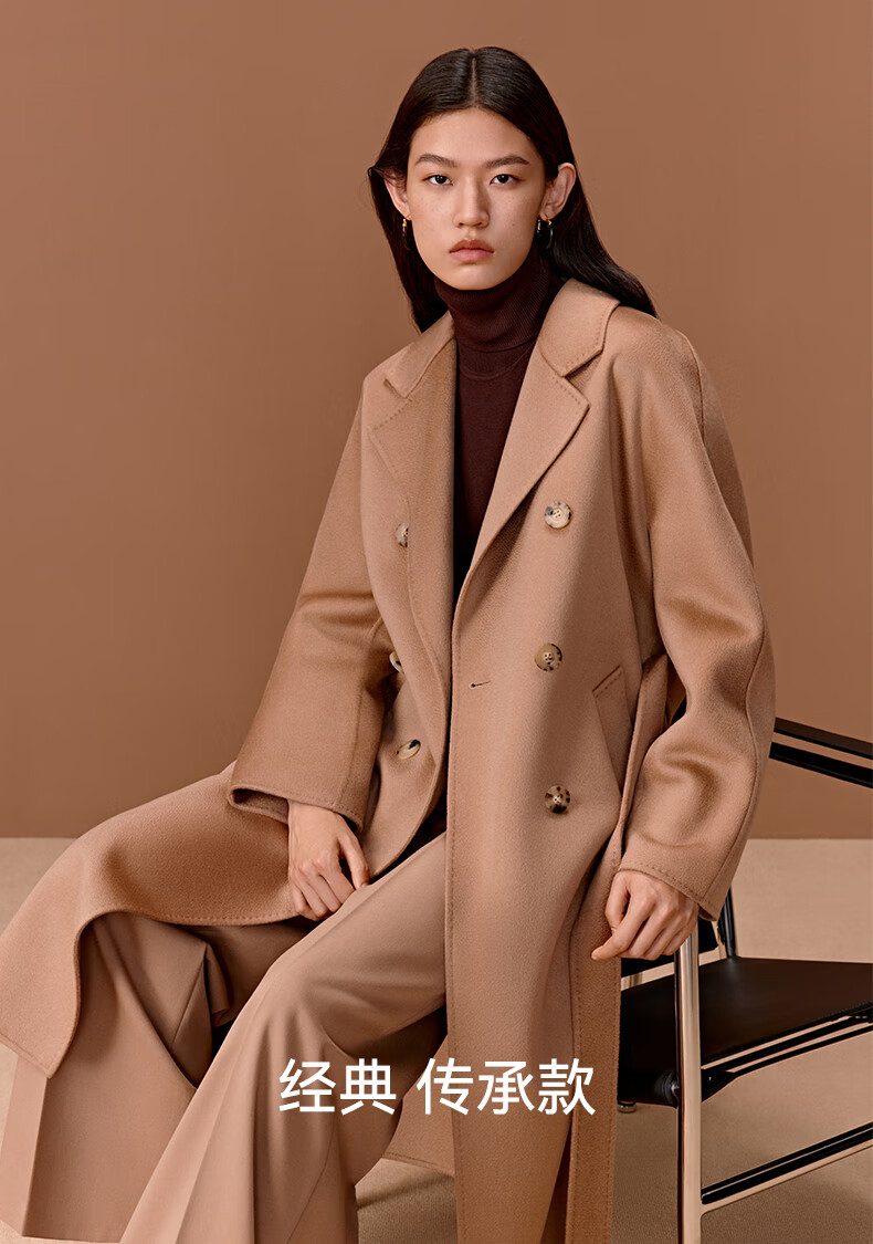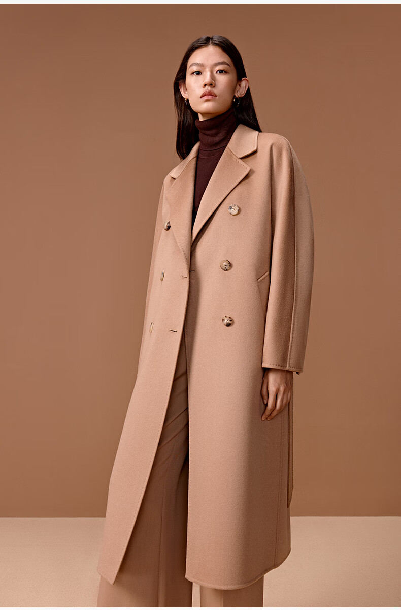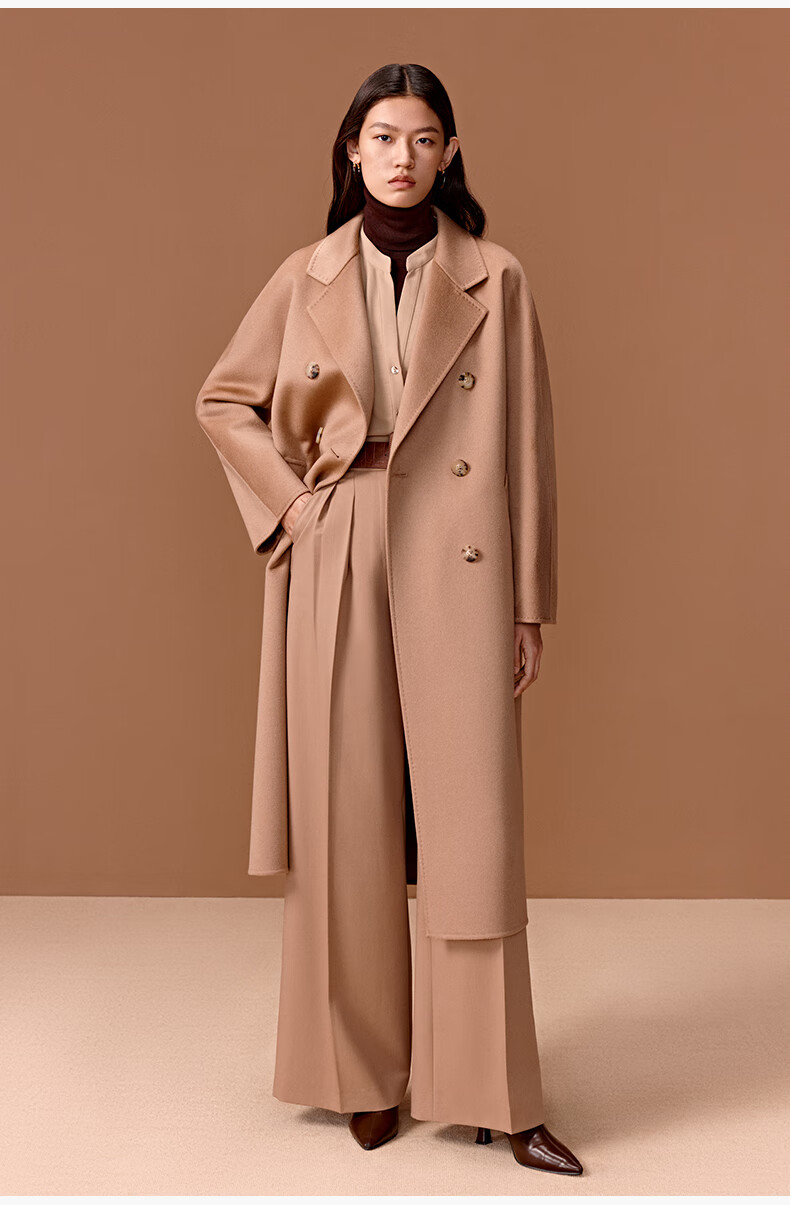Three Little Goats Classic Heritage Autumn and Winter Light Luxury High-Quality Double-sided Wool 100 Pure Cashmere Women's Coat Camel S