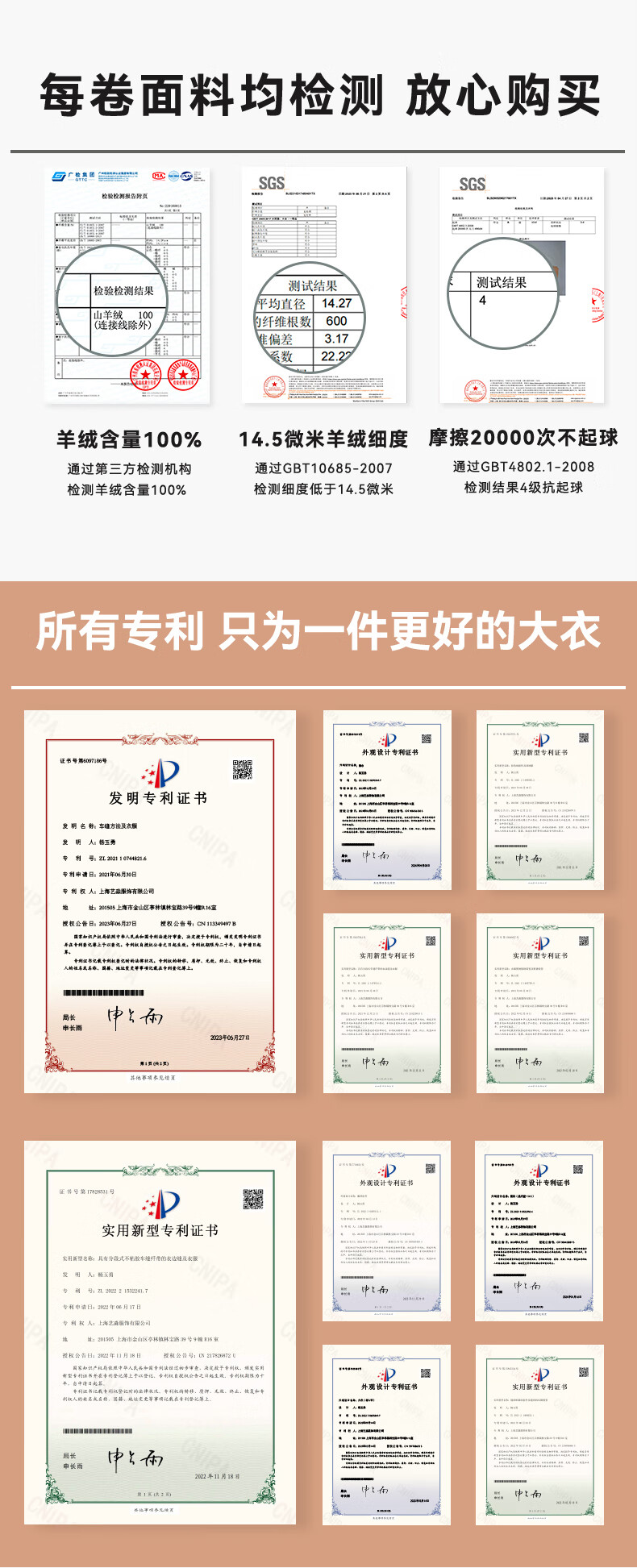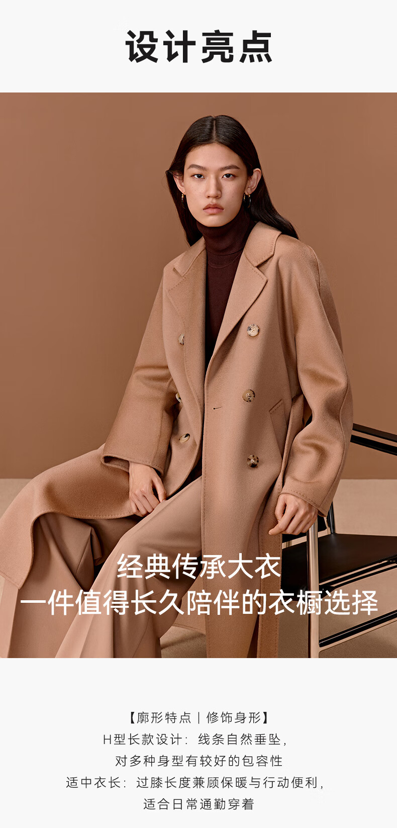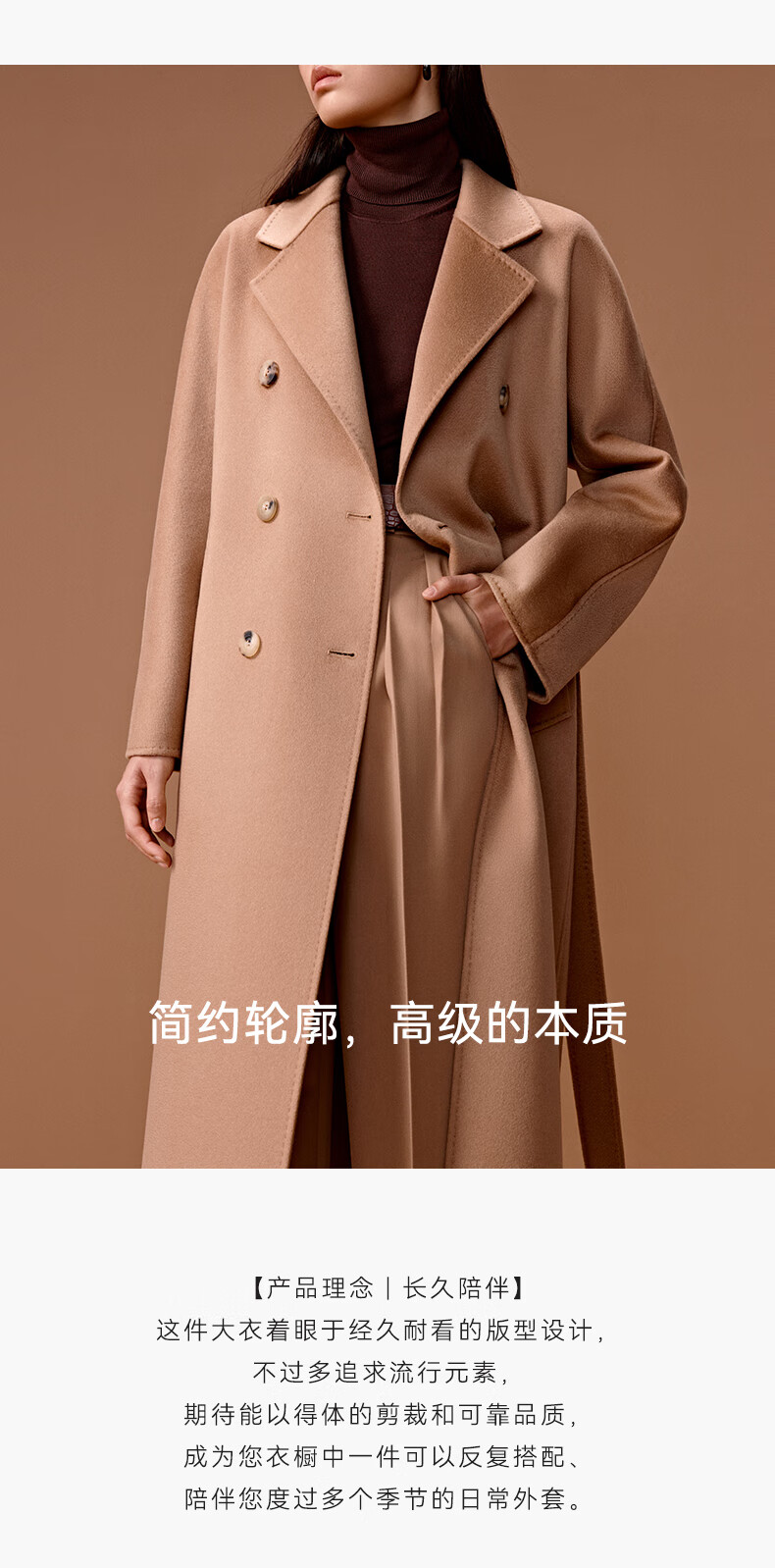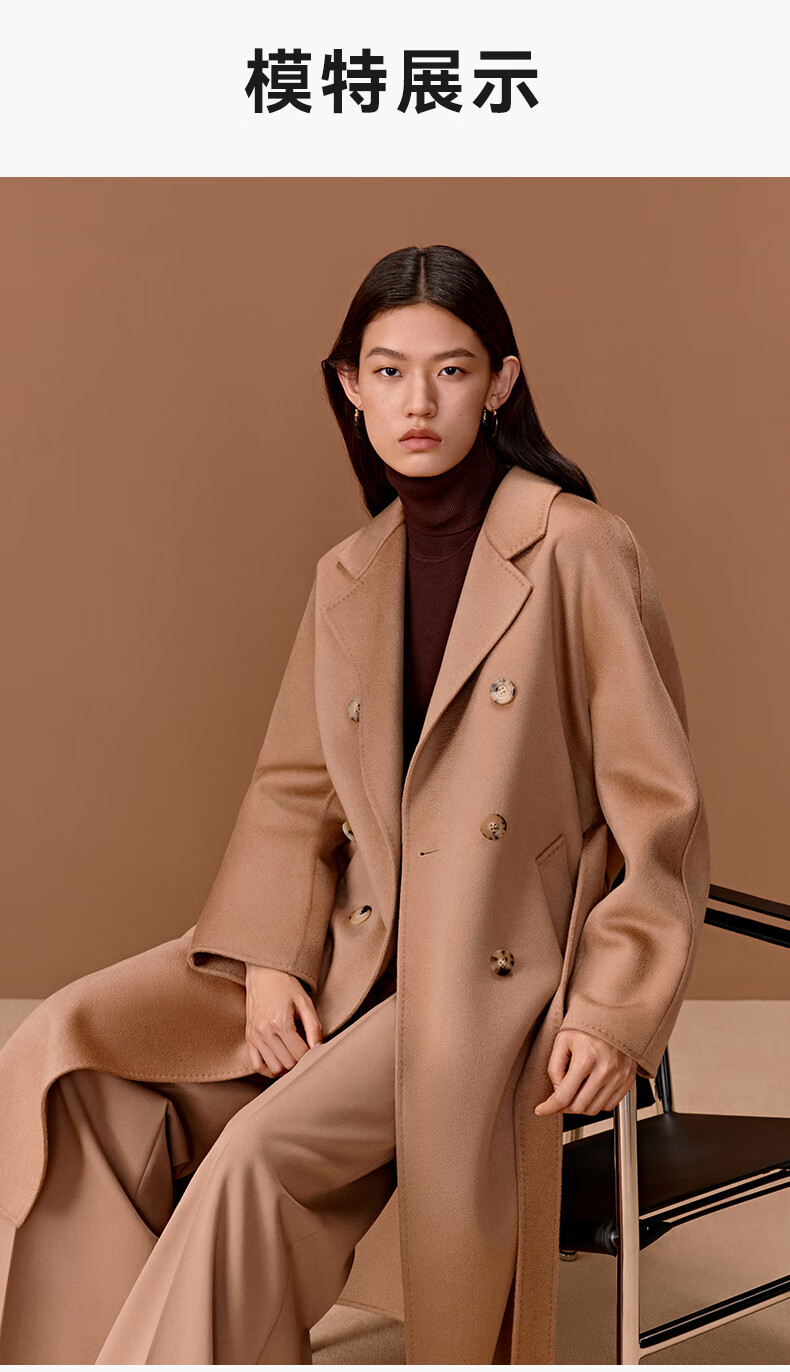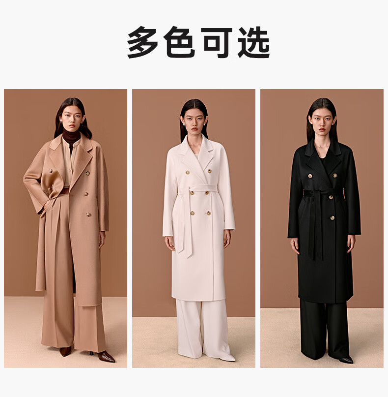 Three Little Goats Classic Heritage Autumn and Winter Light Luxury High-Quality Double-sided Wool 100 Pure Cashmere Women's Coat Camel S