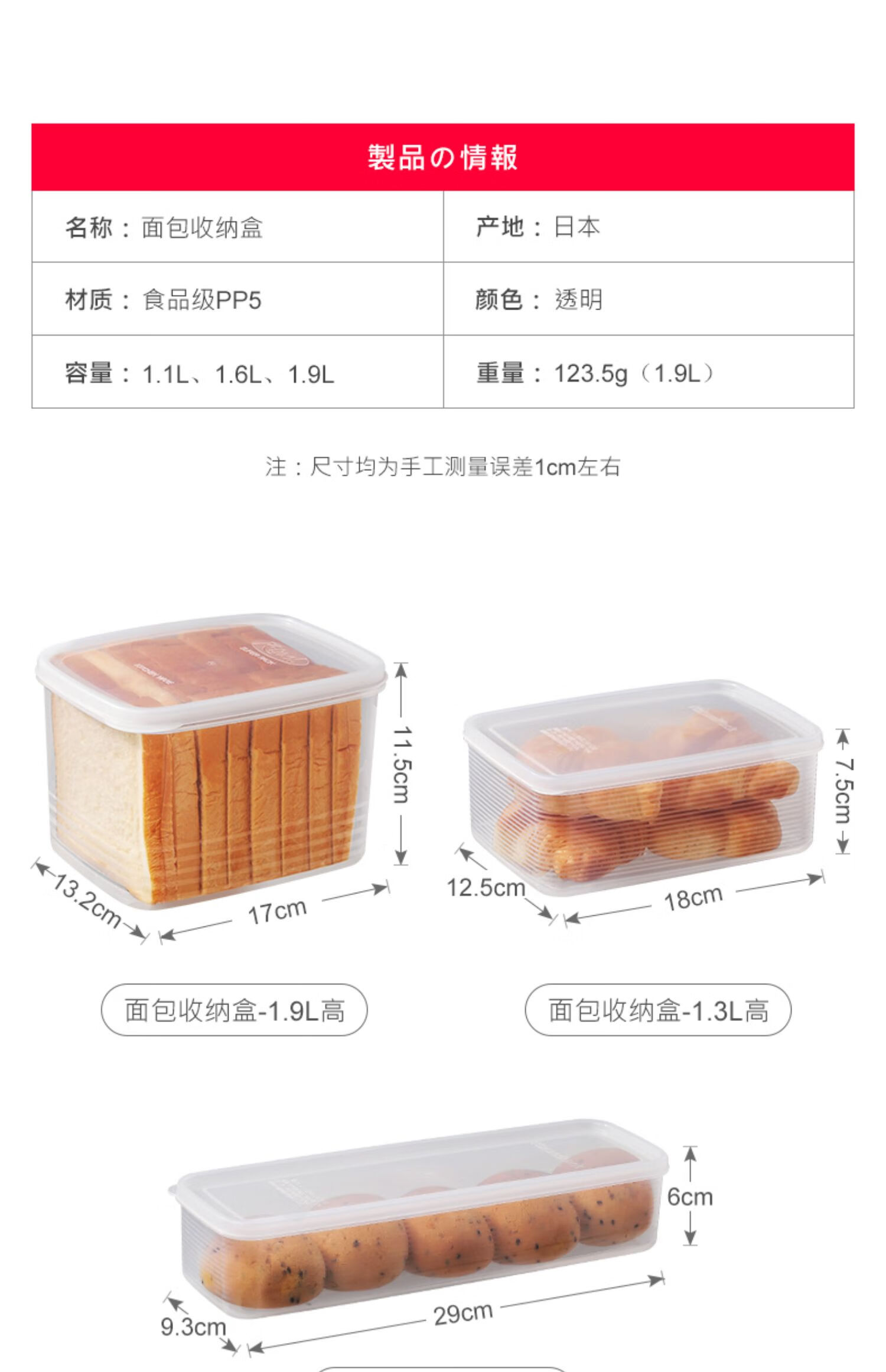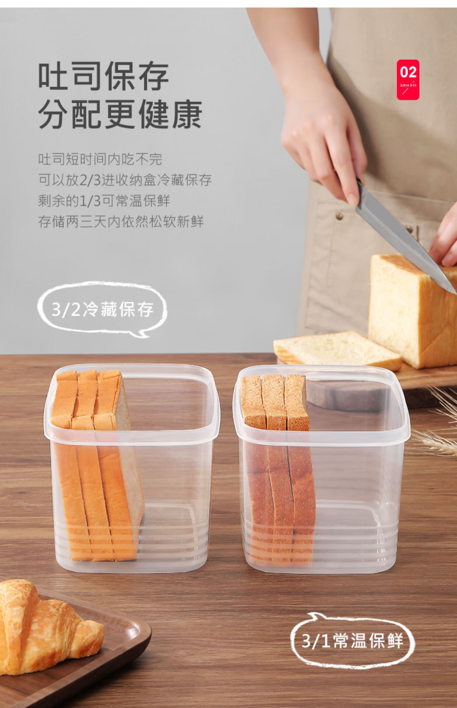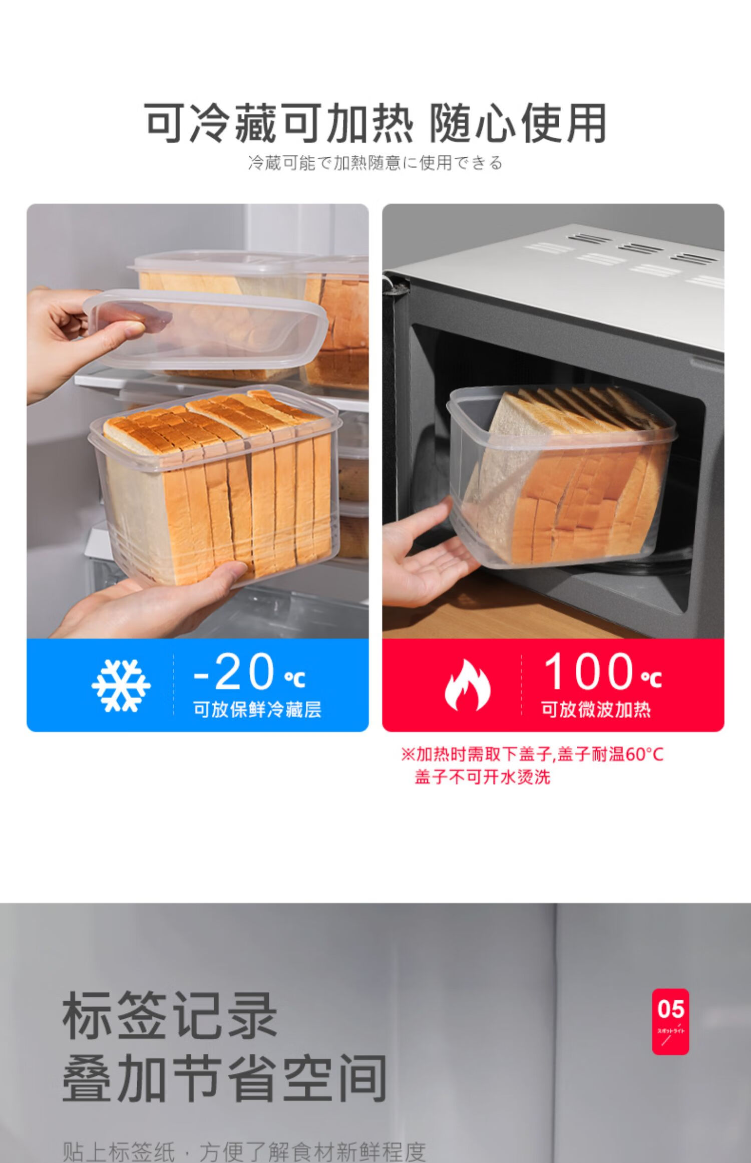 Sanada Seiko Japan imported toast storage box bread storage crisper refrigerator sealed refrigerated fruit food storage box 1.9L high food grade pp5/sealed style