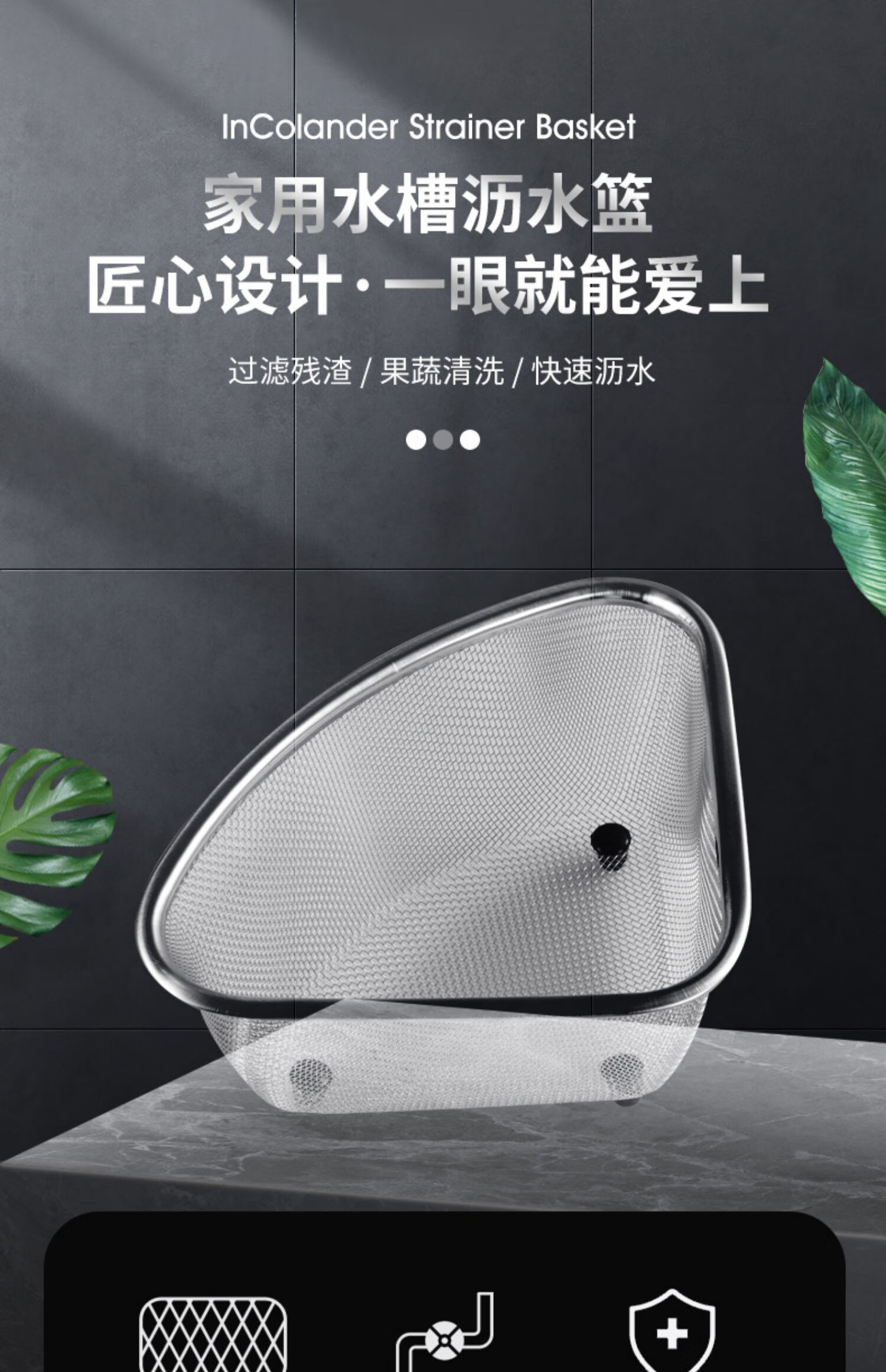 Stainless steel sink filter, kitchen sink garbage artifact, dish basin drainer, dishwasher drain, leftovers drain, mesh basket, kitchen safety stainless steel - small (food residue filter)