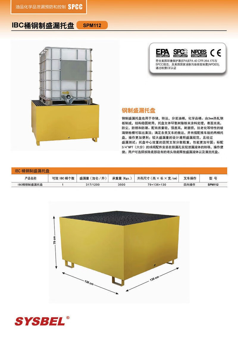 SYSBEL IBC barrel steel leakage pallet SPM112 steel four-barrel leakage pallet mobile steel two-barrel leakage pallet ton barrel pallet SPM112