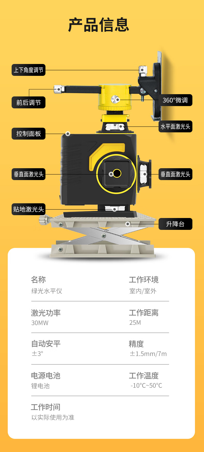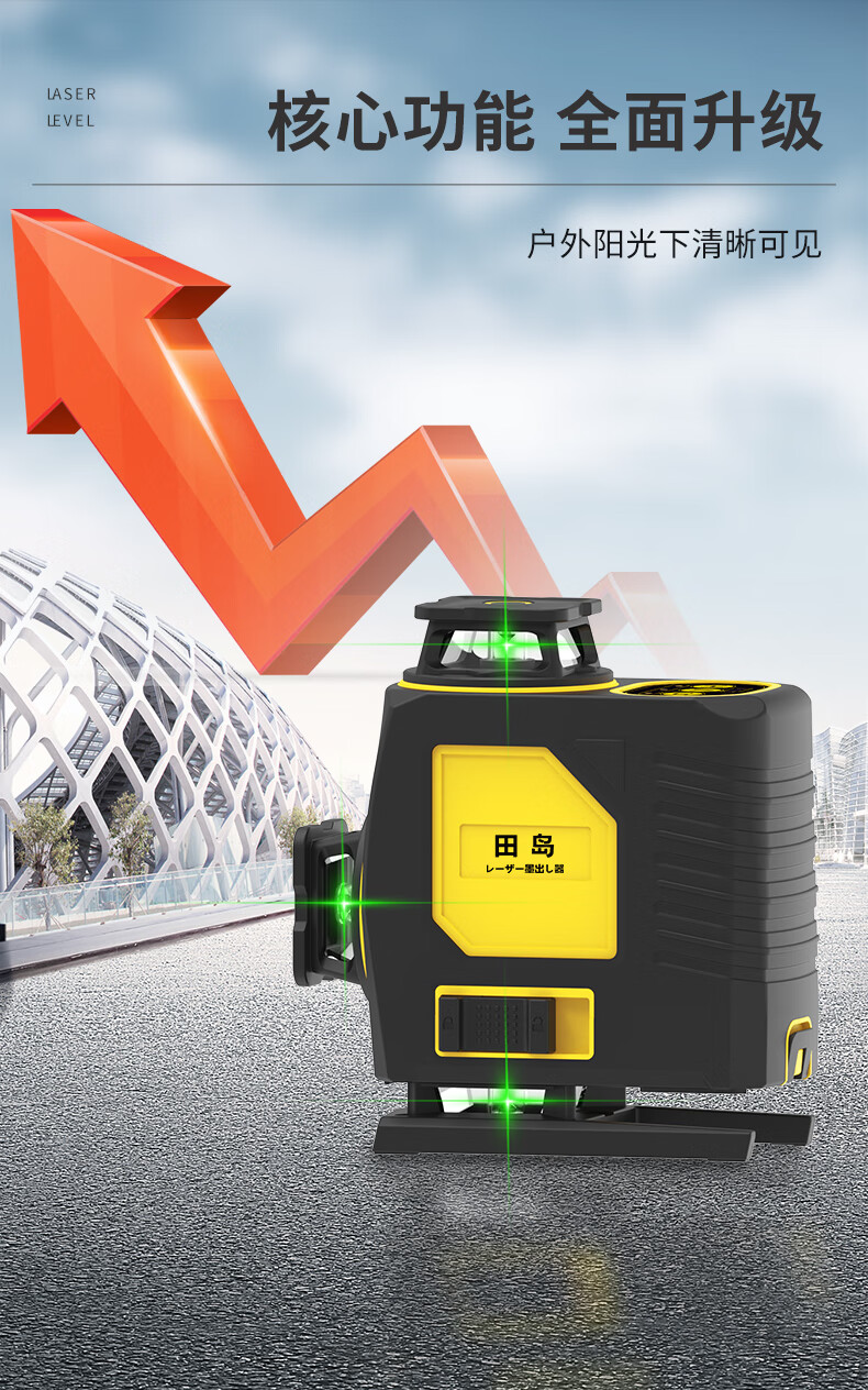 Tajima outdoor strong light level meter green light high-precision thin line 12 lines wall-mounted floor meter laser infrared level meter green light 12 lines