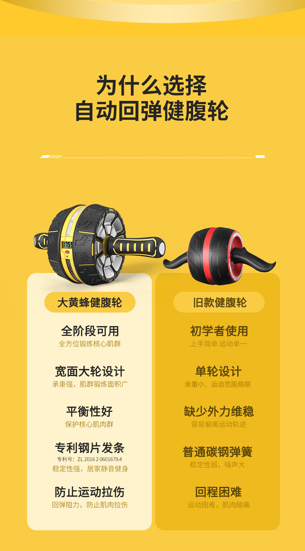 SiNuoDe Abdominal Wheel Automatic Rebound Silent Giant Wheel Abdominal Wheel Fitness Equipment S520 Smart Wasp