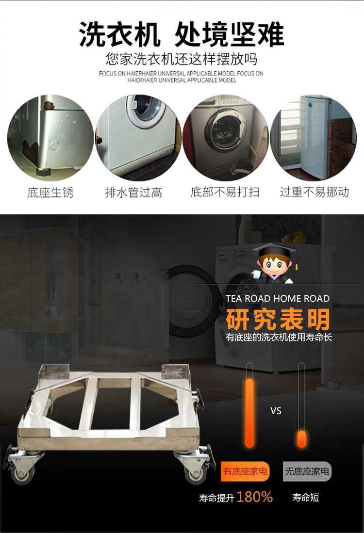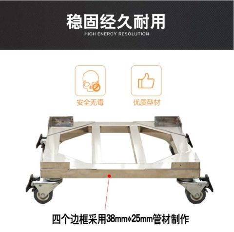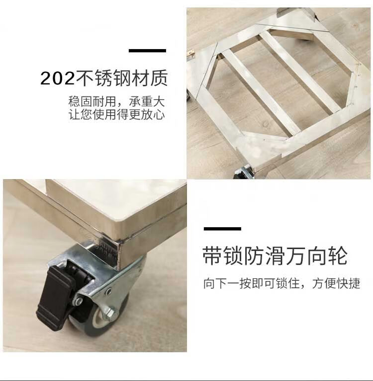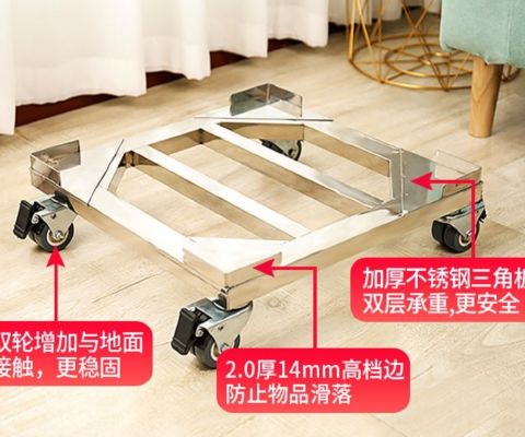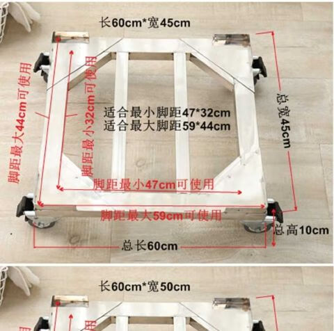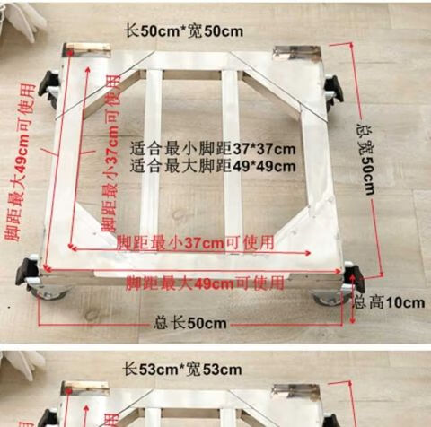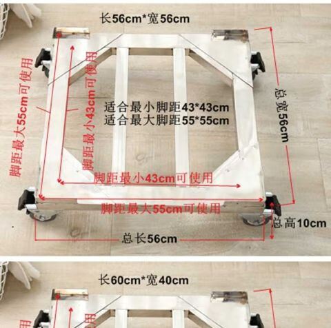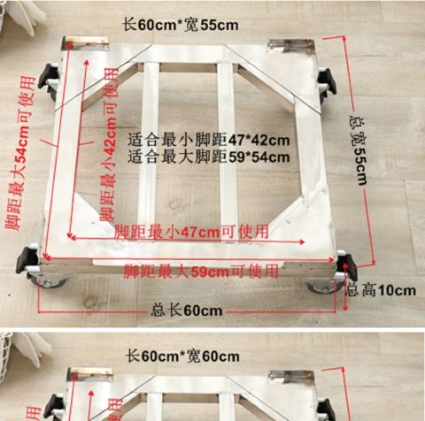 Stainless steel removable refrigerator base washing machine steel plate tripod universal wheel universal bracket storage rack length 45*width 45*conventional double wheels load bearing 440 catties