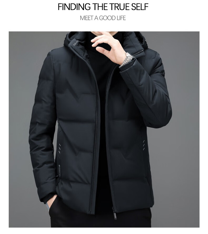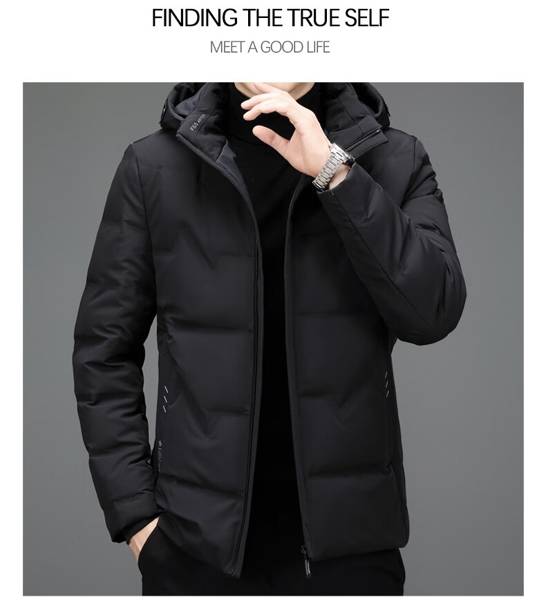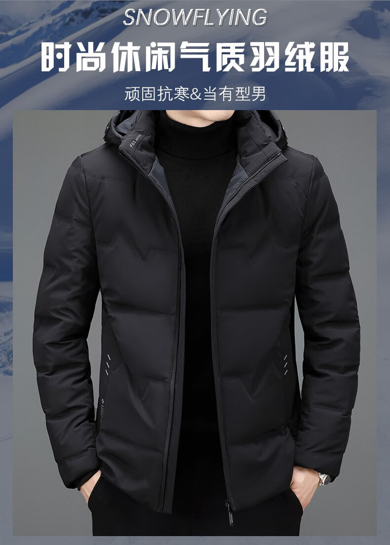 Woodpecker brand down jacket men's thickened warm jacket men's winter 2025 new style young and middle-aged men's winter short clothes black 2XL recommended 135-155 catties