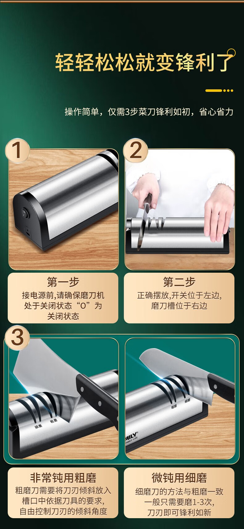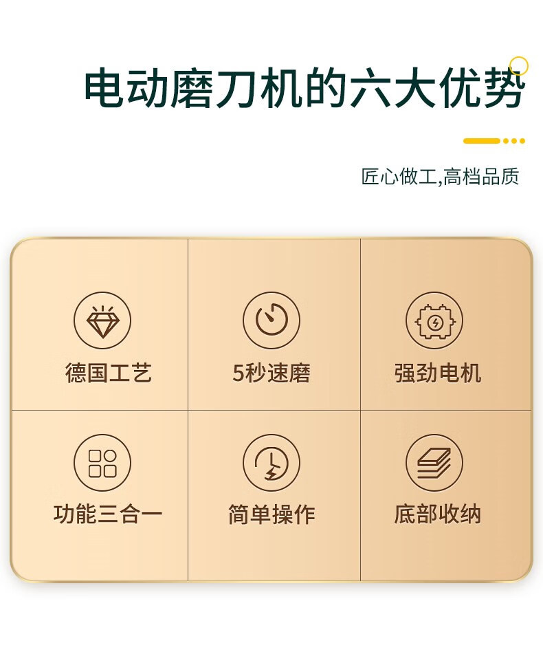 German imported quality German electric knife sharpener, fully automatic household quick sharpening artifact, stainless steel whetstone, scissors and kitchen knives, stainless steel model, electric knife sharpener + 3 grinding wheels (two for knife and scissors, two for charging and inserting)