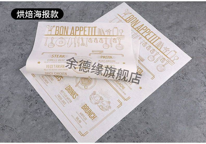 Disposable tablecloth, small size, placemat paper, oil-absorbent take-out meal paper pad, dining table disposable paper, Japanese dinner plate pad paper, Western food tray paper, 100 sheets of kraft paper