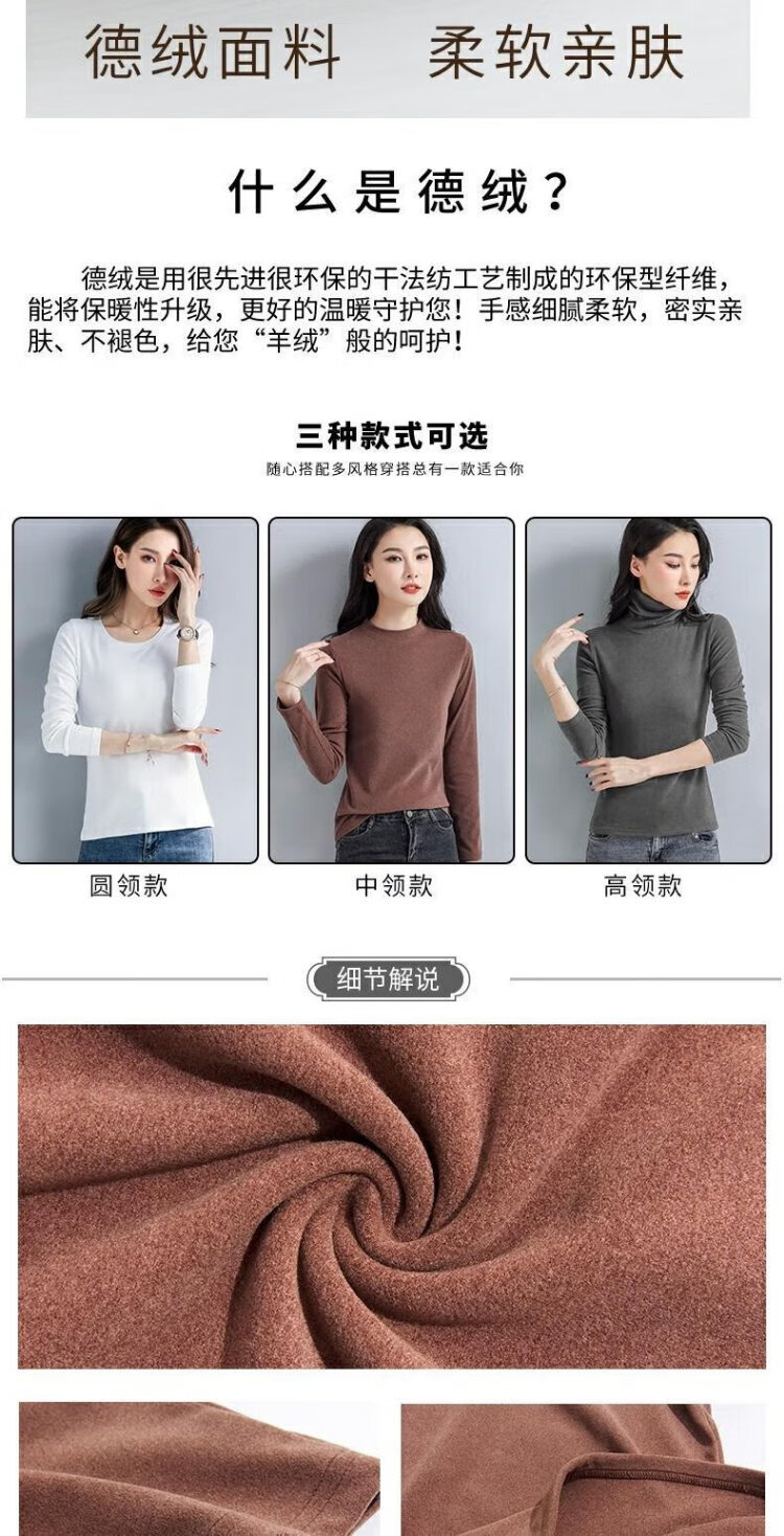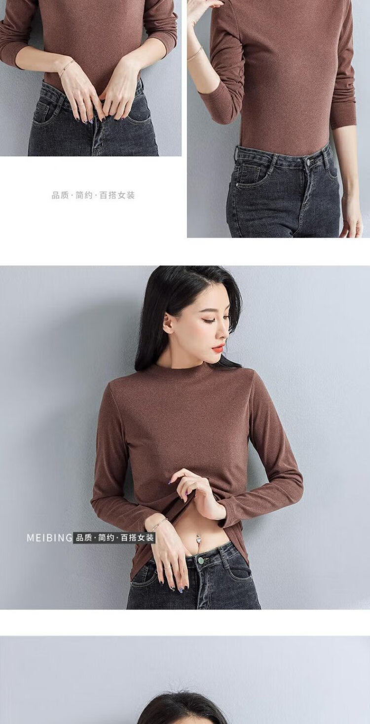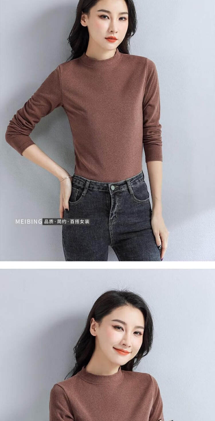 Qiji DeRong half turtleneck bottoming shirt for women in autumn and winter, western style plus velvet thickened warm top with long-sleeved autumn coat, brown L, recommended (100-110 catties)