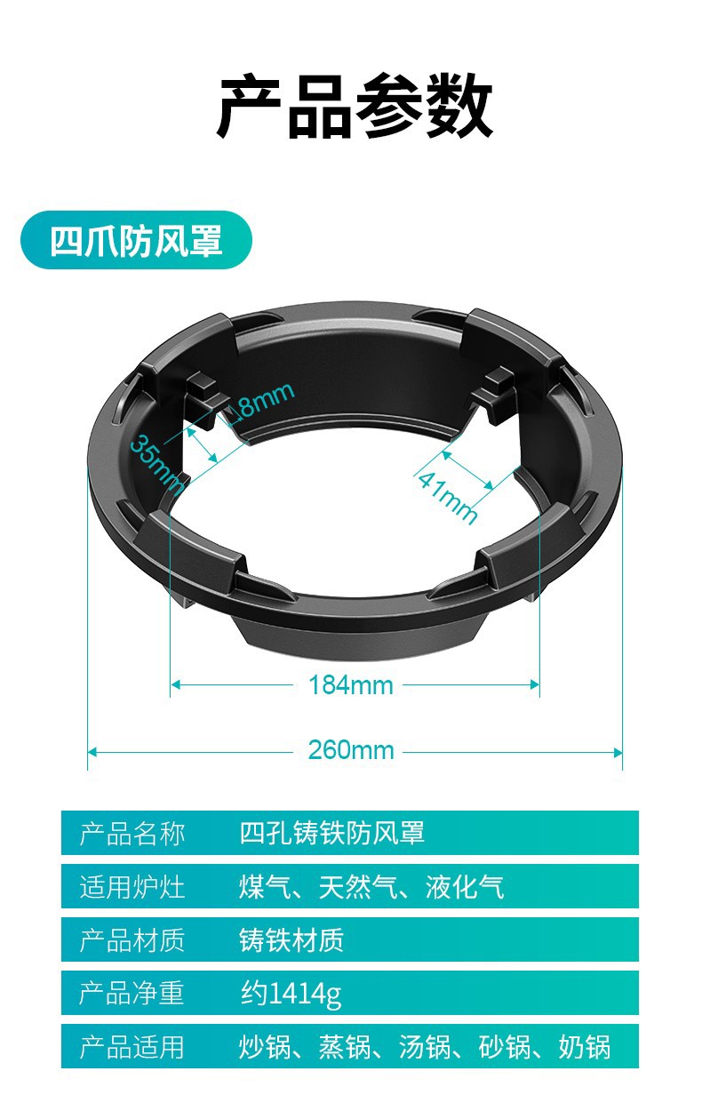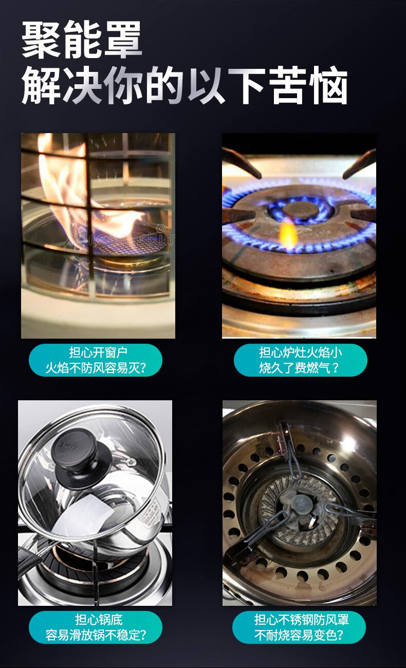 New upgraded cast iron poly-fire hood gas stove windproof cover household kitchen energy-saving cover four-claw five-claw stove anti-slip bracket natural stove gas stove thickened upgraded insulation four-claw universal with milk pot bracket/windproof anti-slip