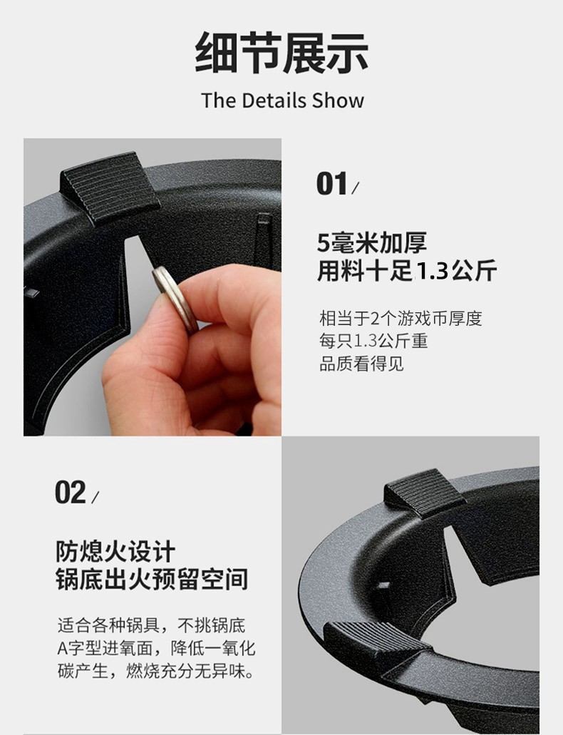 Cast iron gas stove fire cover gas stove windproof cover energy-saving cover household four-claw five-claw universal natural gas anti-slip bracket stove stove shelf energy-concentrating plate heat insulation block 5-claw model original stove rack 5-claw available, stable and non-slip