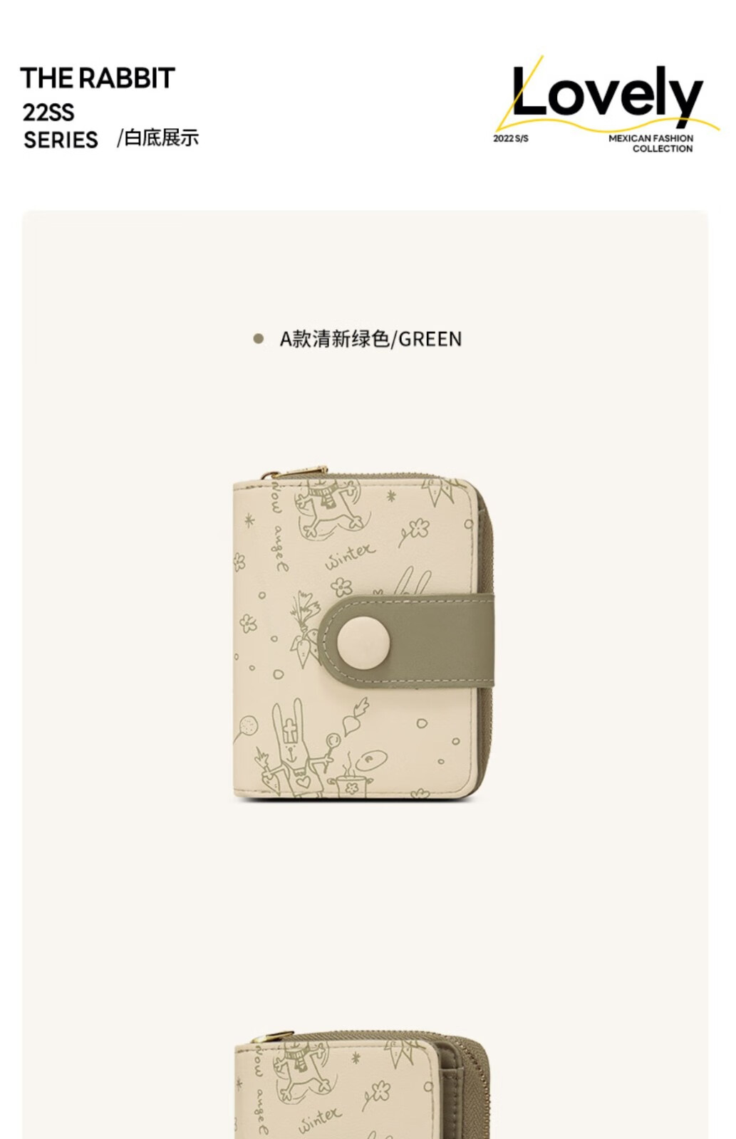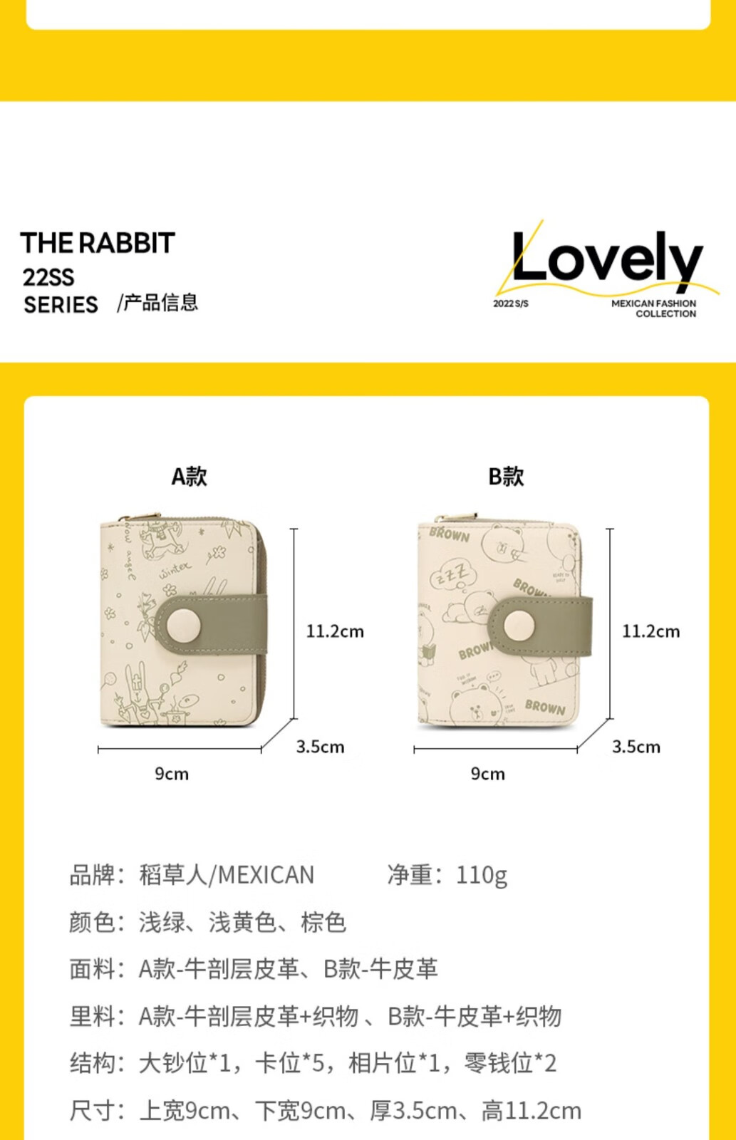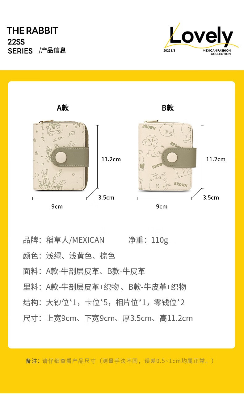 Scarecrow 2024 New Wallet Women's Fashion Creative Design Girls' Wallet Cute Genuine Leather Coin Purse Card Holder Light Green