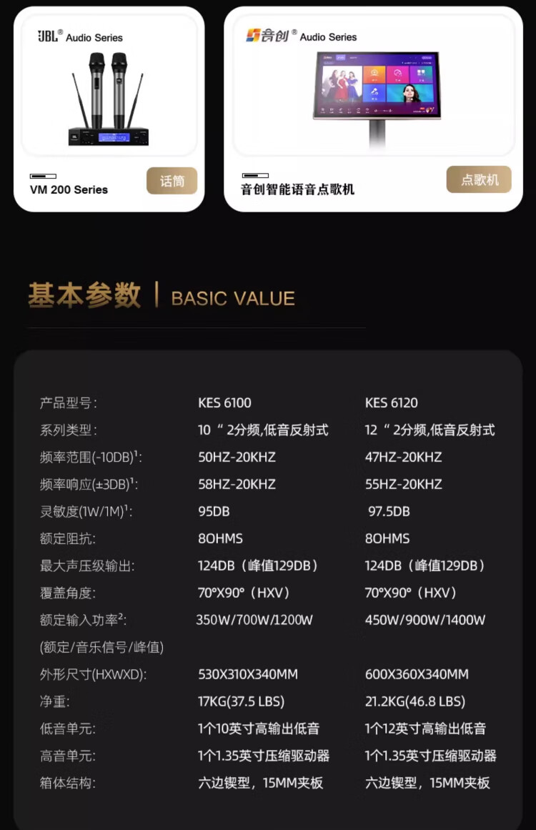 JBL folk tavern KES6120 home ktv audio set, complete set of singing equipment, amplifier, karaoke machine, all-in-one machine, stage bar, villa charm ktv same speaker, 2 speakers, 12 inches, singing version + JBL 12-inch subwoofer