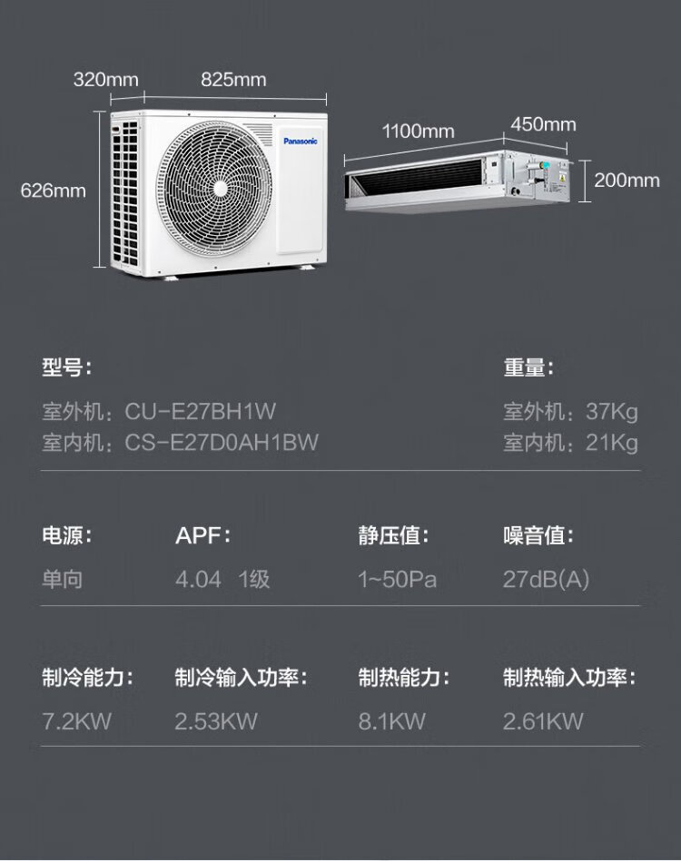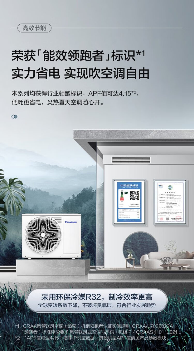 Panasonic full DC variable frequency 3 HP air duct machine H series first-level energy efficiency Panasonic Nanoyi