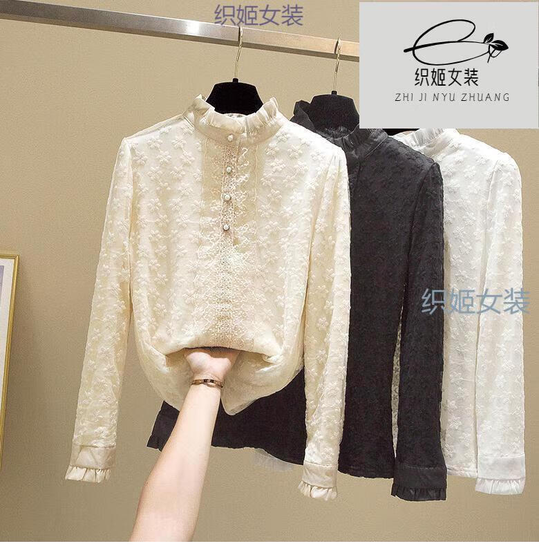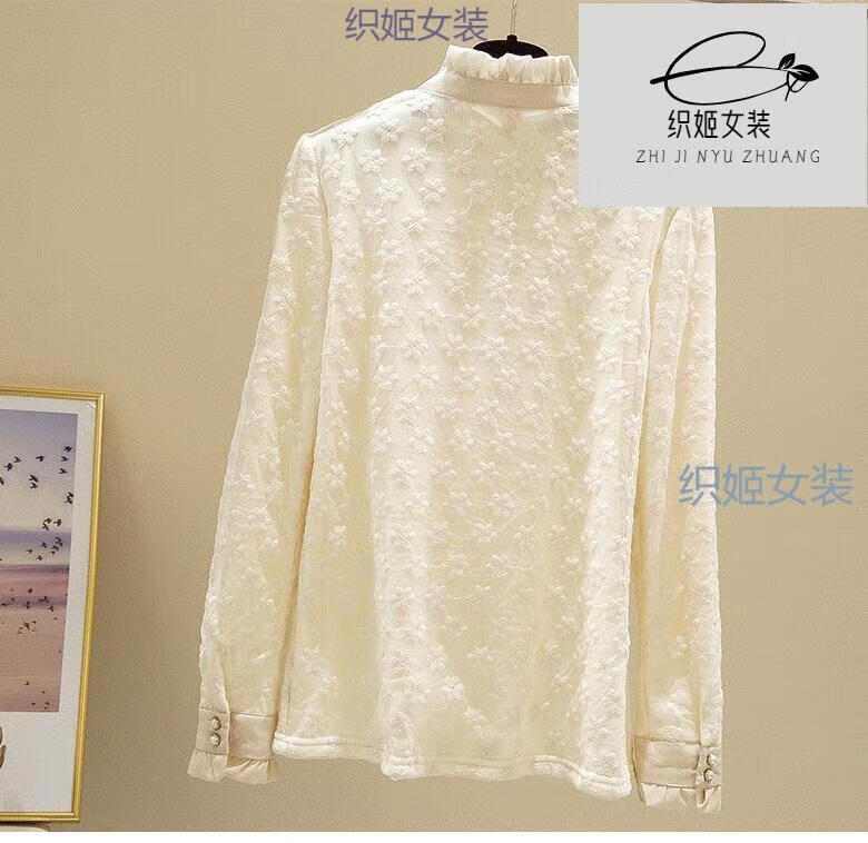 Orihime Half Turtle Collar Lace Bottoming Shirt for Women 2025 Spring and Autumn New Style Bottoming Shirt for Women with Western Style Long Sleeves and Thickened Velvet. Apricot Color and Thickened Velvet. Girlfriend Outfit Beauty Fashion Simple Commuting Women Super Popular