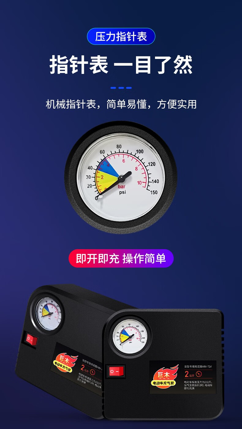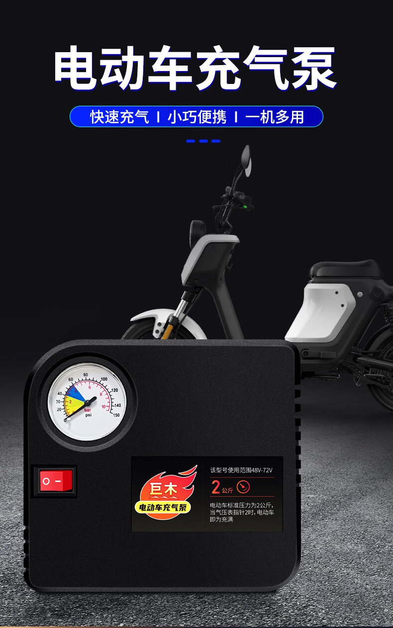 Jumu battery car electric car air pump 48V60V72 tricycle home portable car vacuum tire air pump 48-72v battery car universal air pump