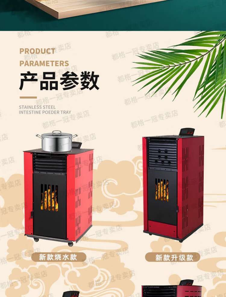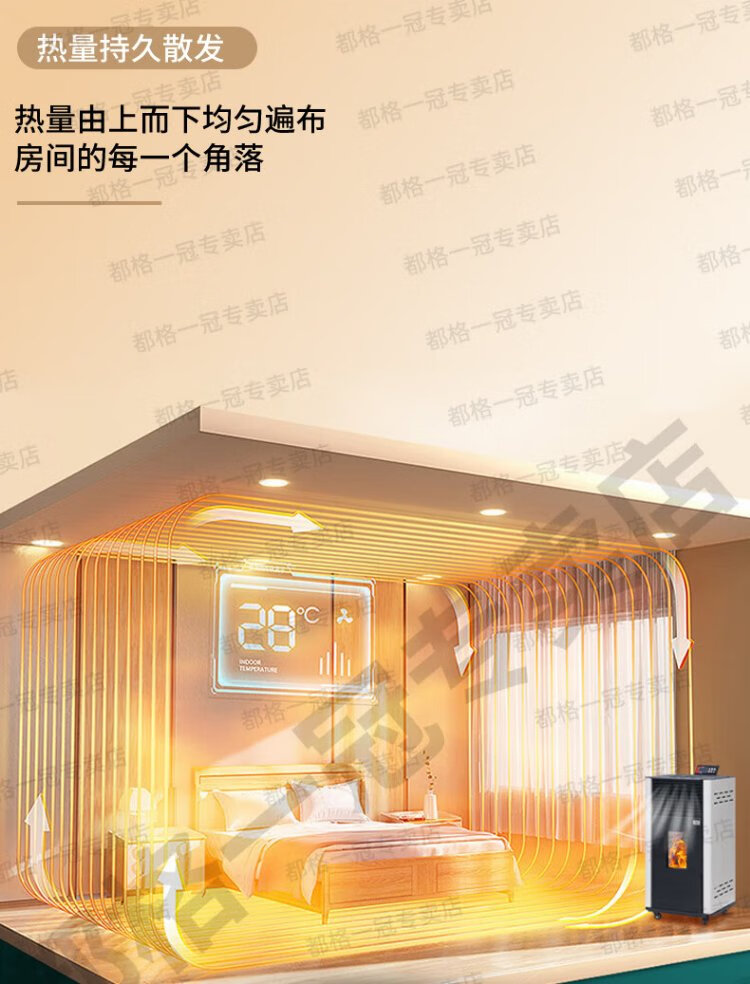 Duge pellet heating stove indoor household intelligent biomass pellet stove air heating rural pellet burner energy-saving stove double-auger red 80 type for 60~80 square meters