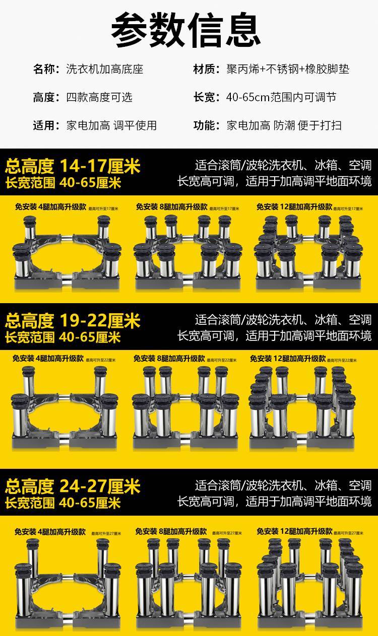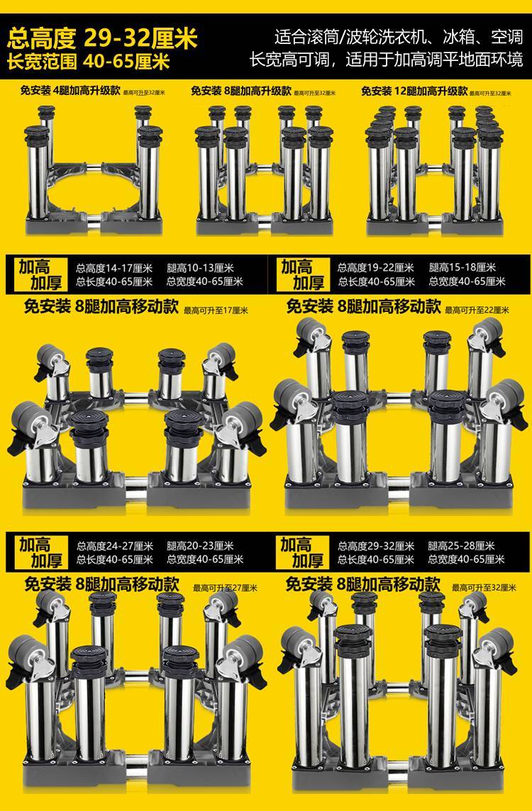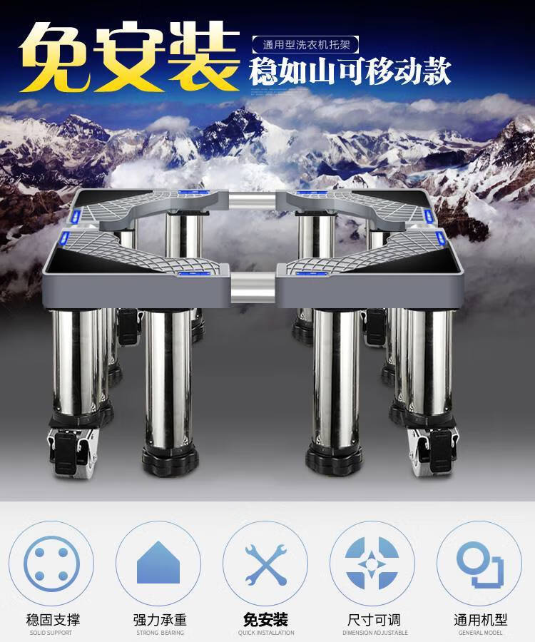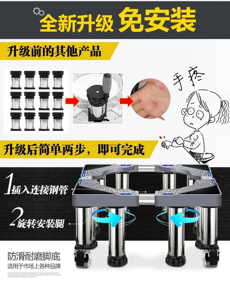 Benhan Washing Machine Base Heightened Pulsator Drum Ultra-High Mobile Stainless Steel Fully Automatic Bracket Tripod Universal Bracket 4 Stainless Steel Legs 14-17cm
