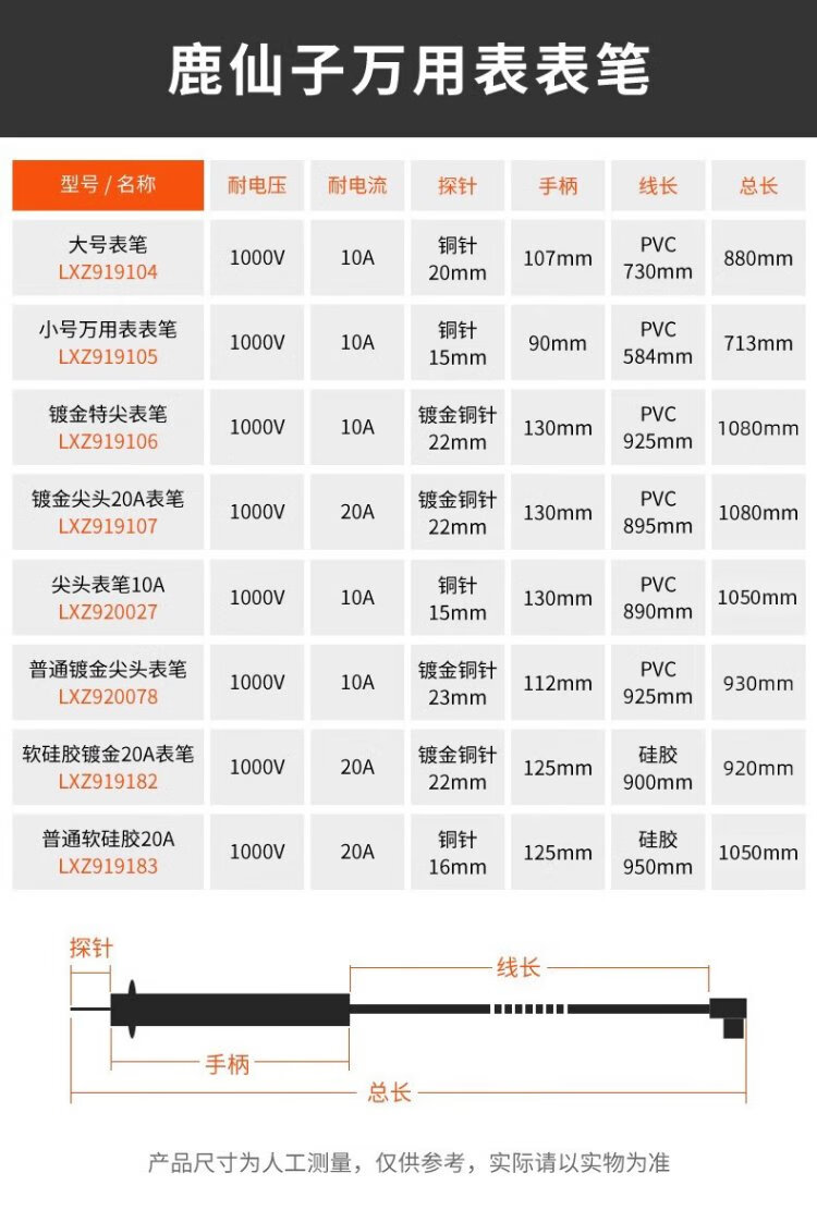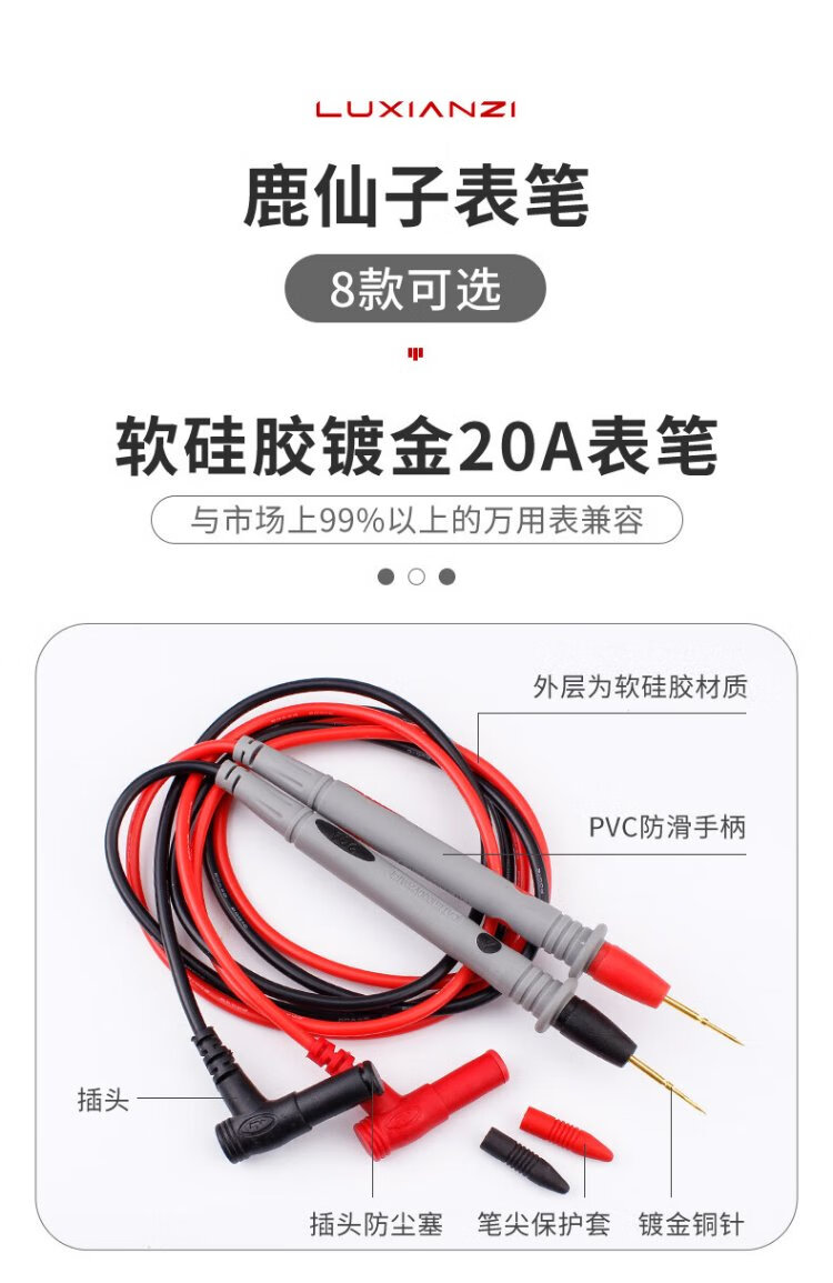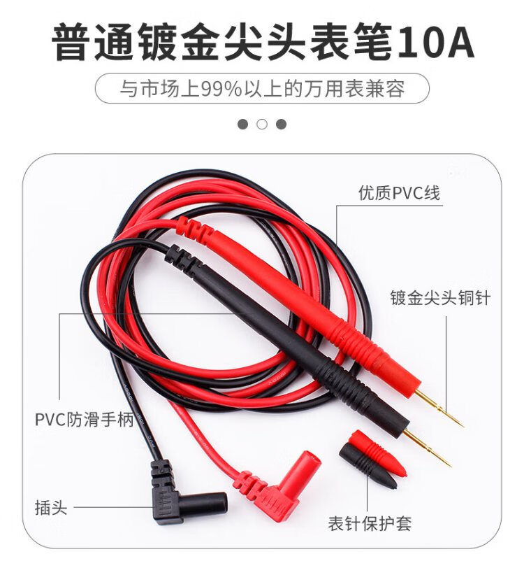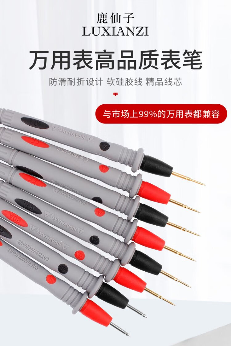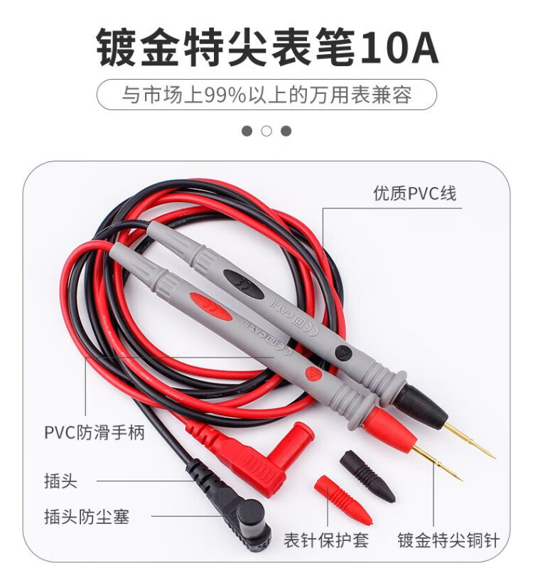 Deer Fairy Multimeter Multimeter Universal Test Pen Special Point Copper Needle Test Wire Meter Stick Digital Multimeter Pen Line Anti-Freeze Burning Silicone Wire 10A Tip-Gold Plated Model
