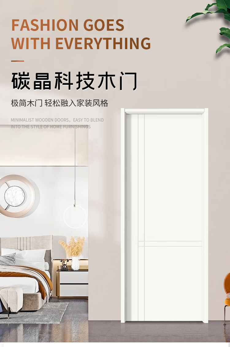 Srock Bedroom Door Ecological Door Paint-Free Door Study Door Living Room Door Interior Door Set Door Solid Wood Composite Spot Customized Modern Simple Cream Wind Saint White Carbon Crystal Door Flat Door Two Horizontal and Two Vertical Styles Honeycomb Filling + Ordinary Lock