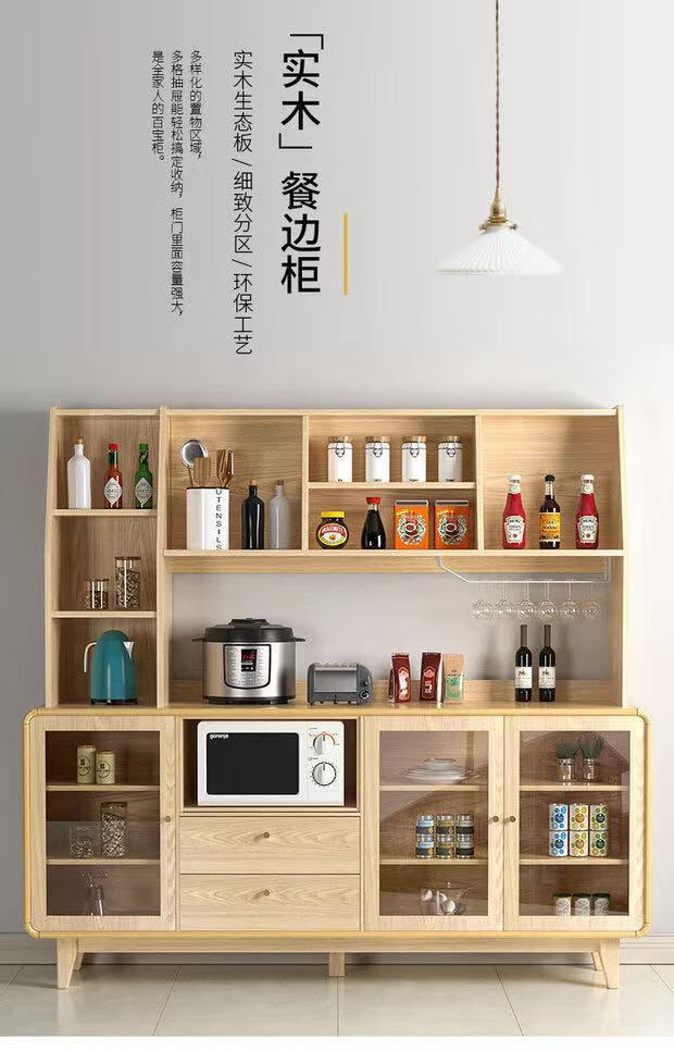 Laiyasen solid wood sideboard modern minimalist tea cabinet home kitchen cupboard wine cabinet one-in-one multi-functional wall combination cabinet 80 long two doors including upstairs installation