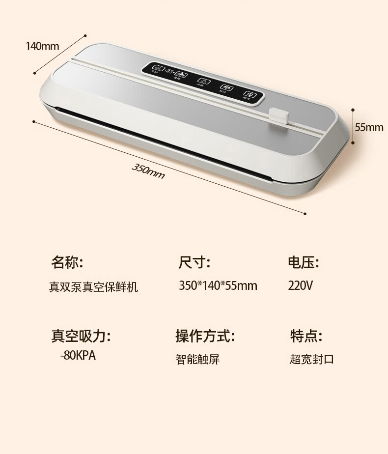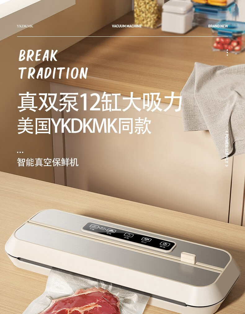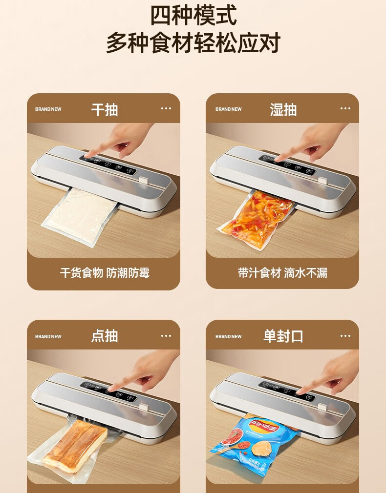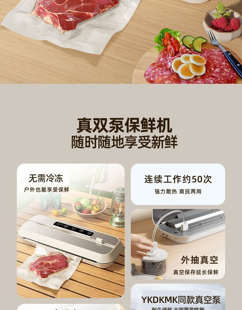 Baihaojia Vacuum Sealing Machine Fully Automatic Vacuum Packaging Machine Household Commercial Deli Food Preservation Machine Food Dry Goods Plastic Sealing Machine Wet and Dry Vacuum Machine Sealing Compression Packing Machine Touch Control Dual Motor 32CM Extended and Widened Sealing Machine