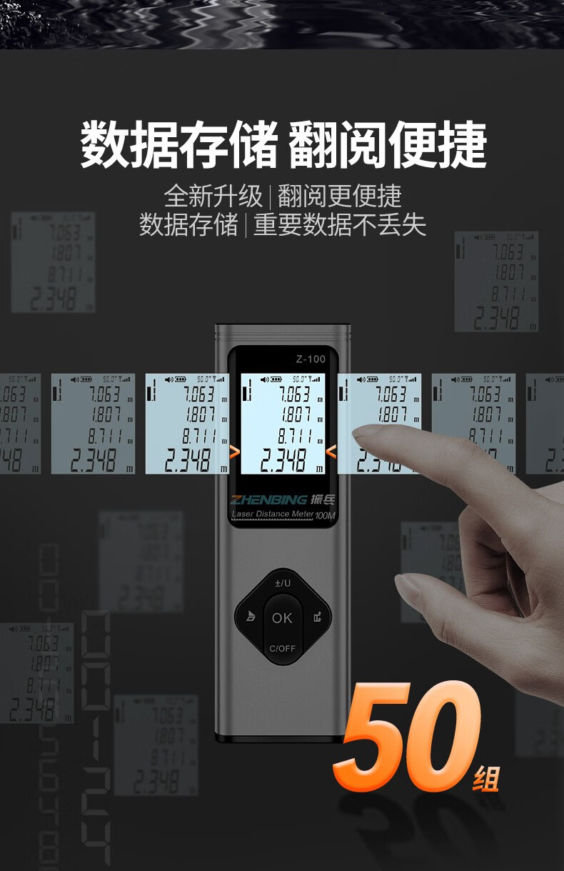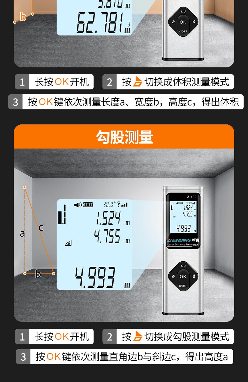 Zhenbing laser range finder handheld infrared measuring ruler electronic ruler three-in-one high-precision measuring room laser ruler 40M + laser cross + electronic level