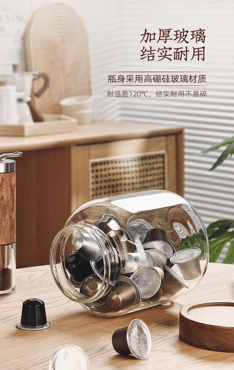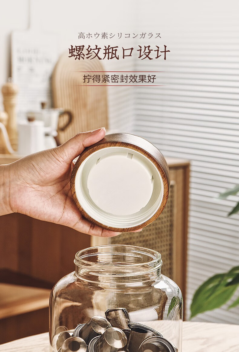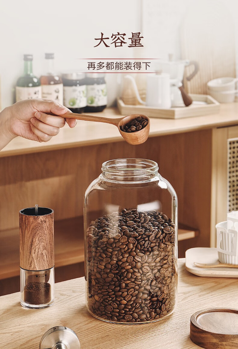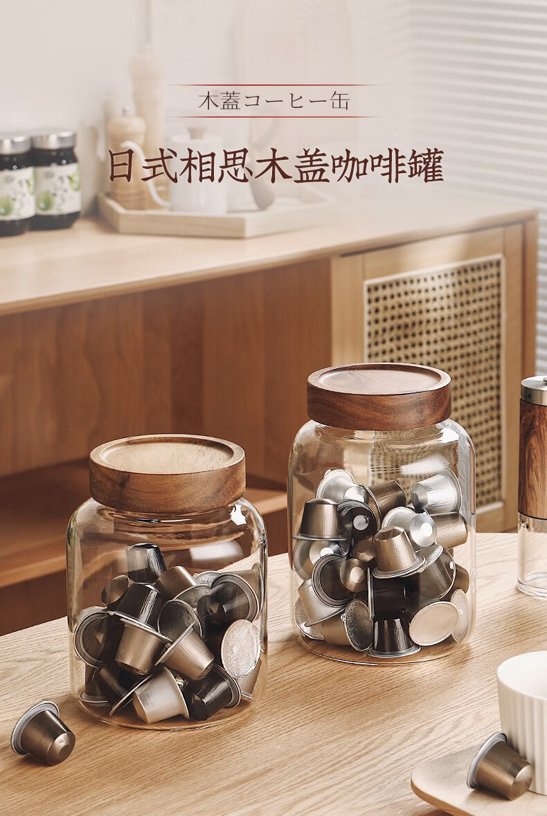 Genasi transparent glass sealed jar food-grade coffee bean storage jar capsule storage box storage jar large acacia wood cover coffee jar 1.2L