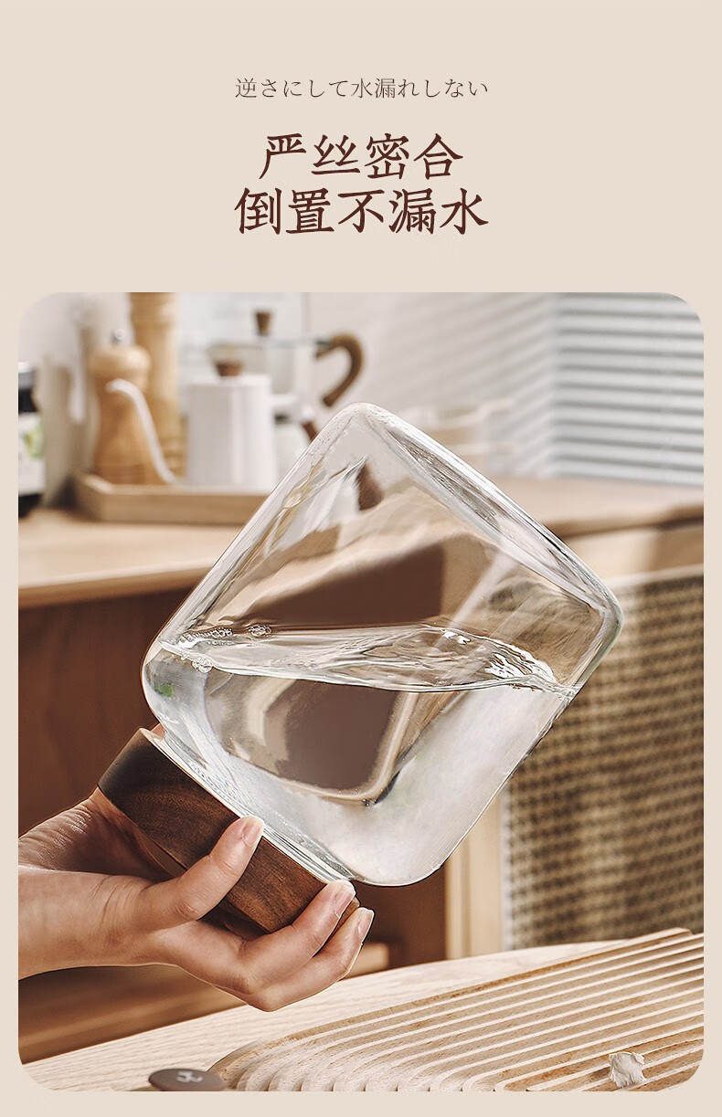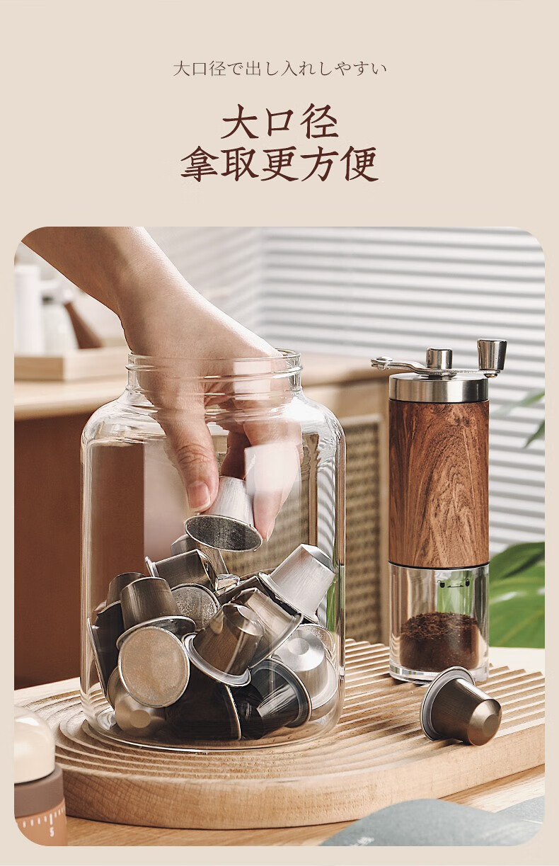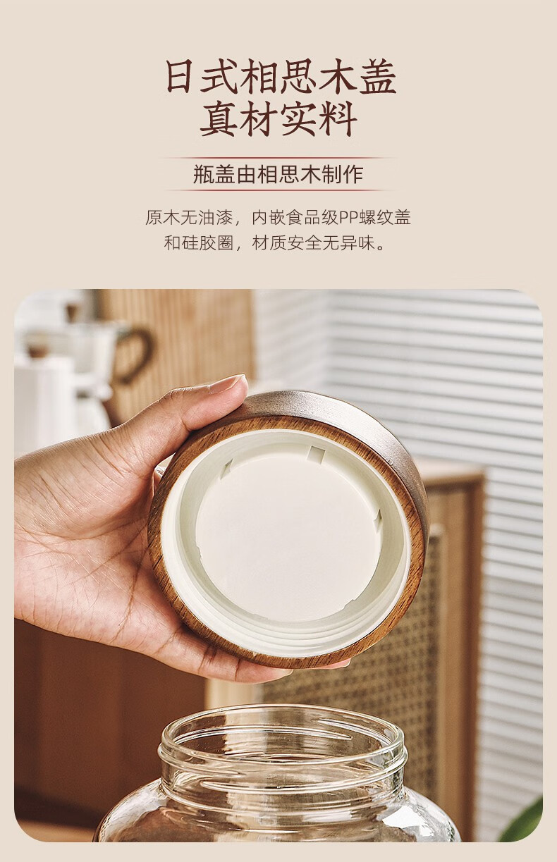 Genasi transparent glass sealed jar food-grade coffee bean storage jar capsule storage box storage jar large acacia wood cover coffee jar 1.2L