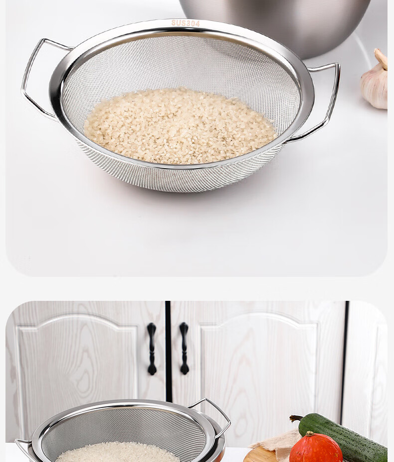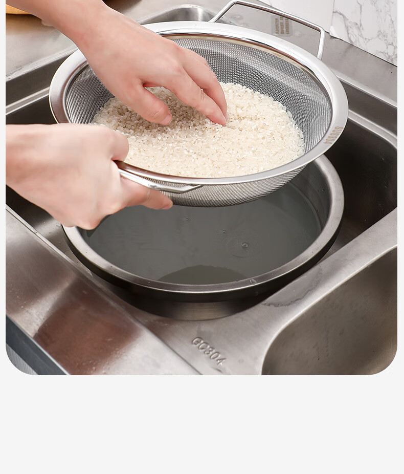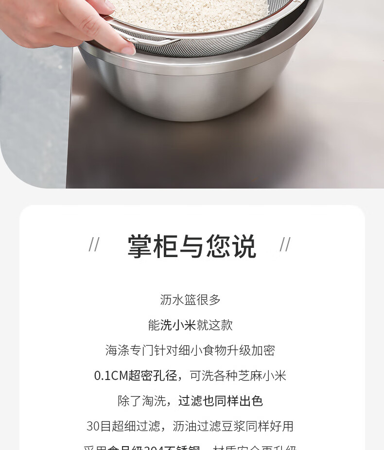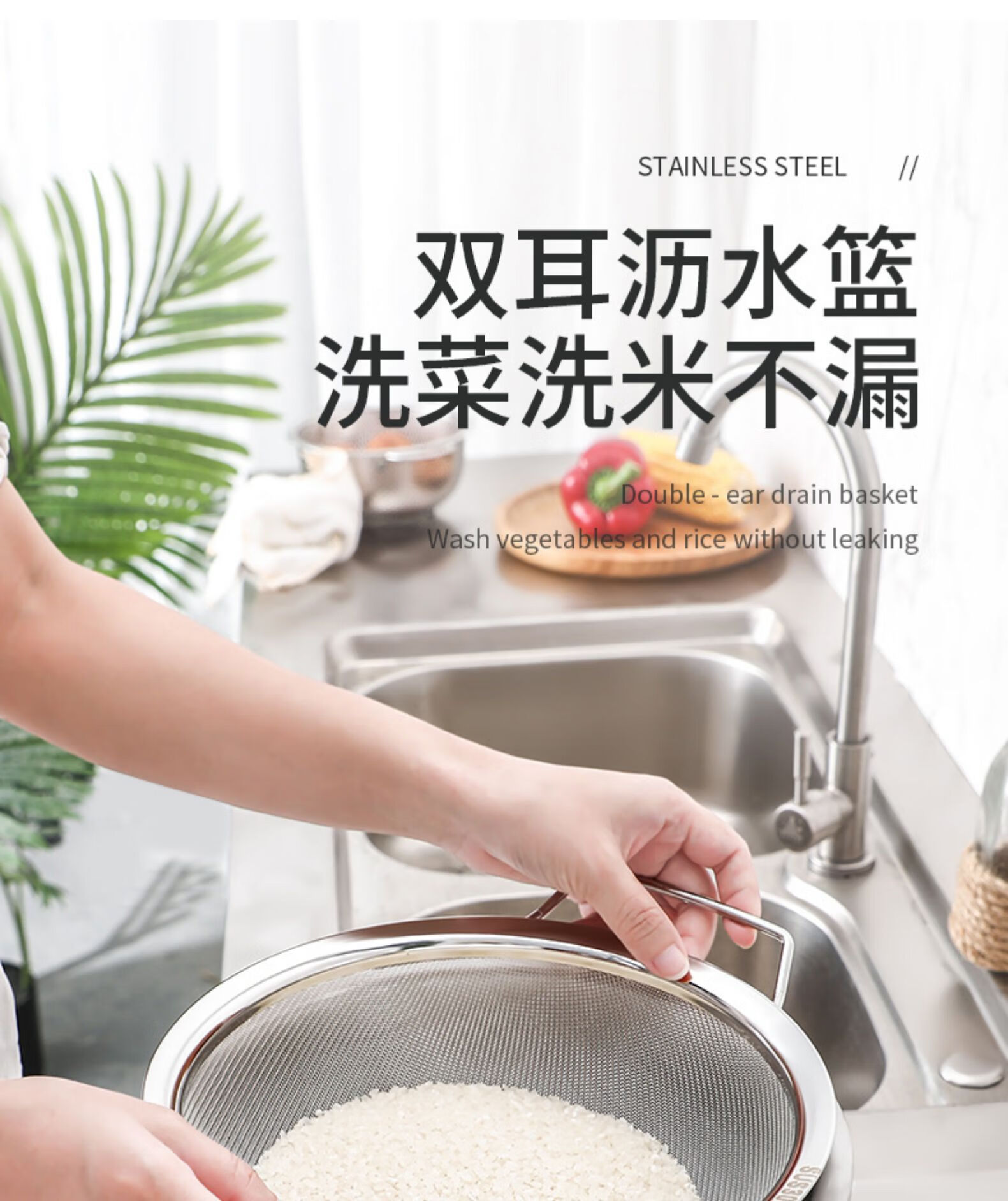 HAIDI 304 stainless steel sesame washing artifact rice basket fine hole rice washing sieve drain basket drain basin drain rice sieve household large 304 double ear rice basket no specifications